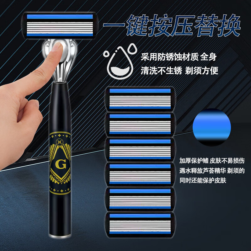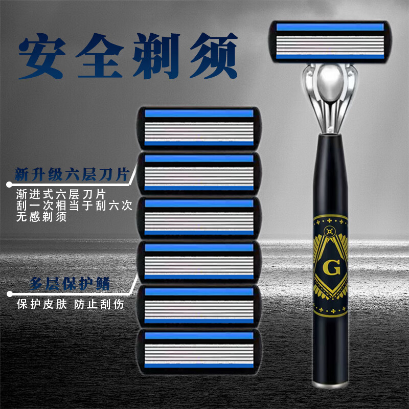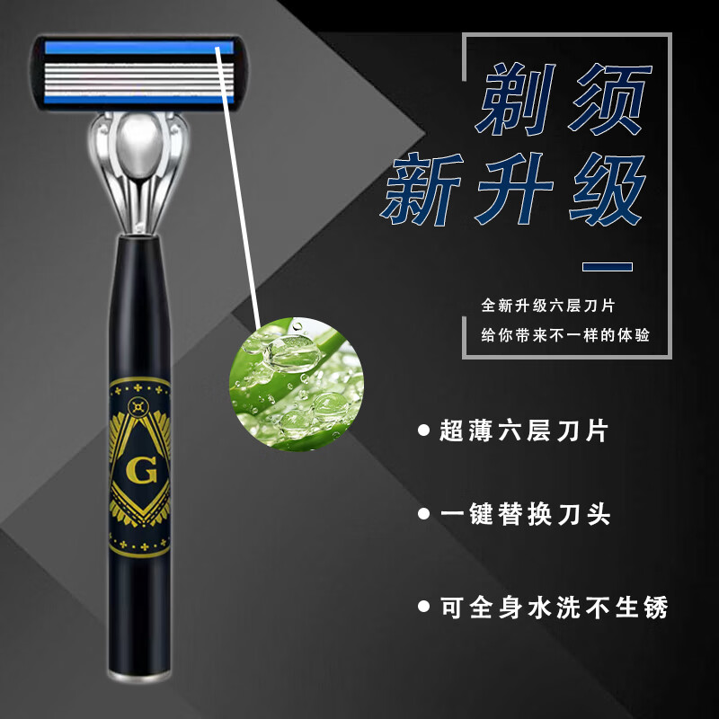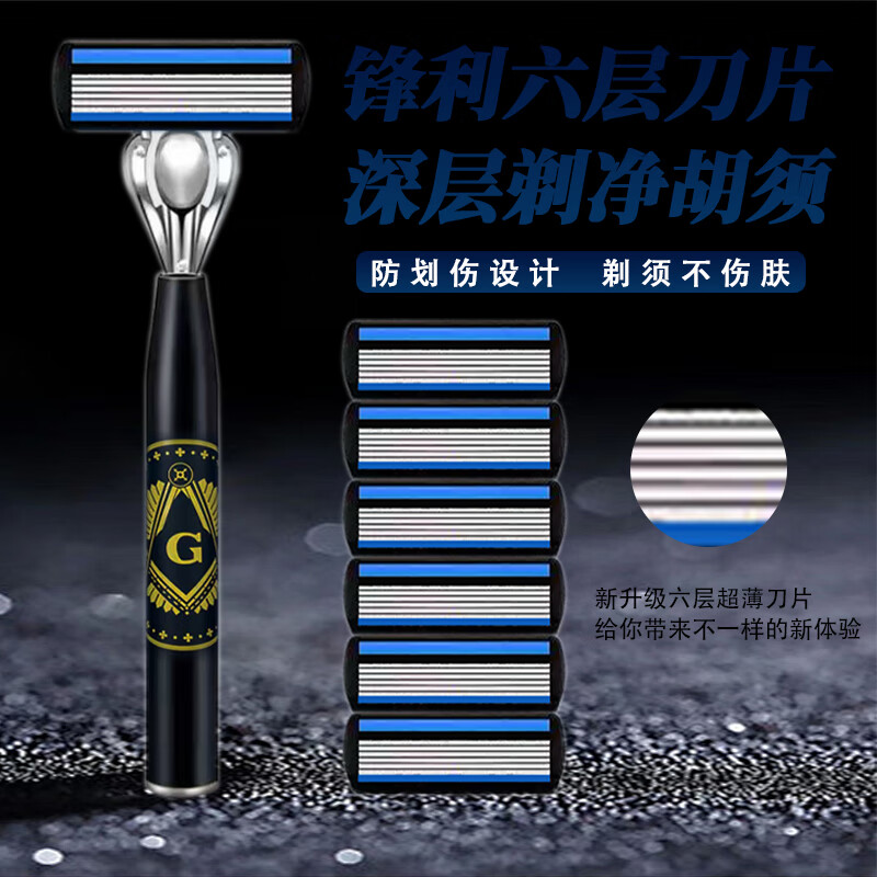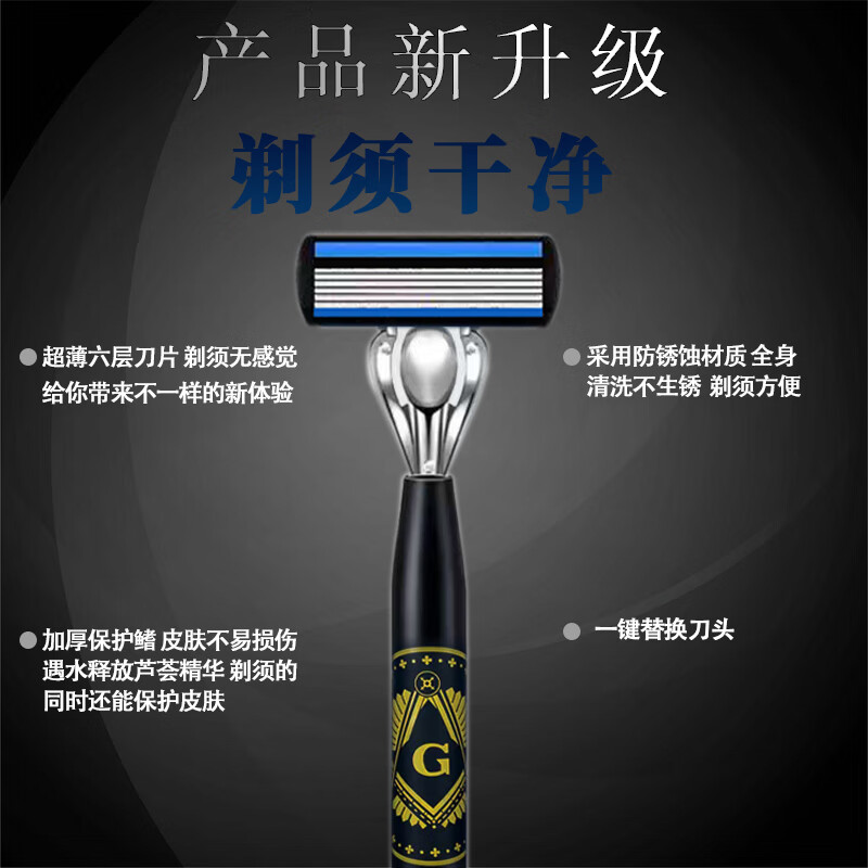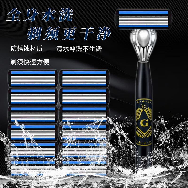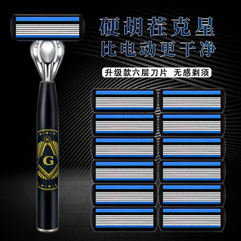 吉耏利德国进口手动剃须刀片适配吉利刀架六层刀片新款刀架男士刮胡剃胡刀 大G刀柄+12刀头送收纳盒+剃须膏