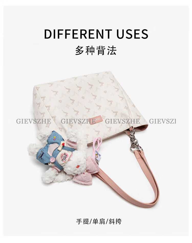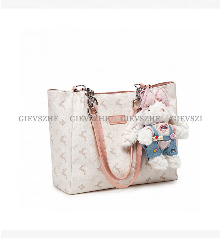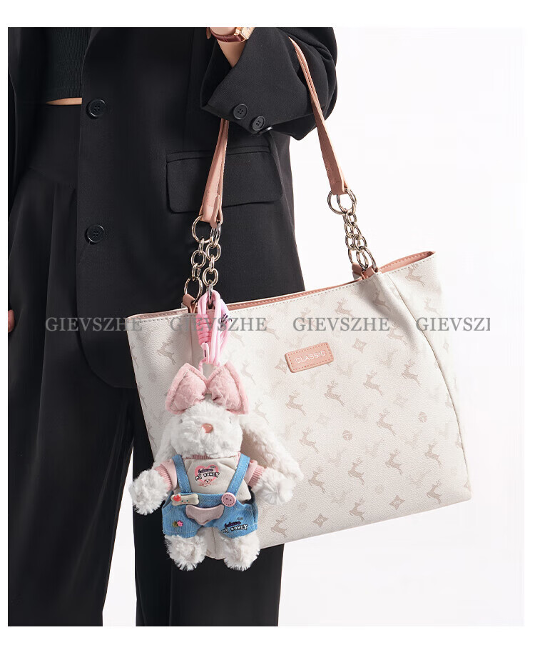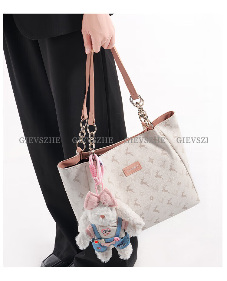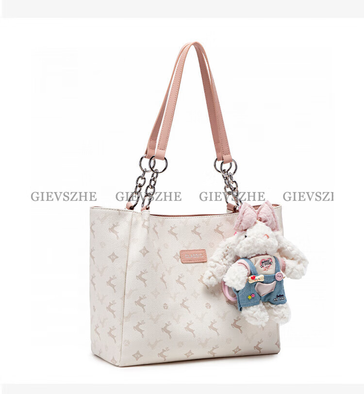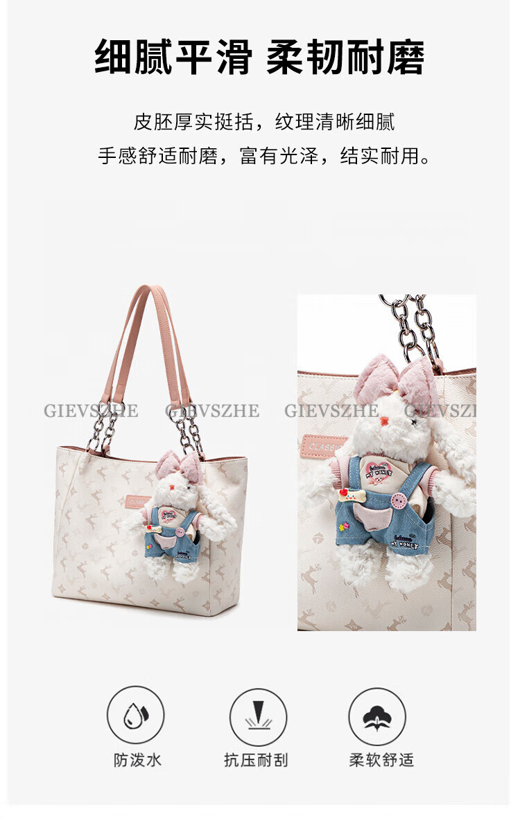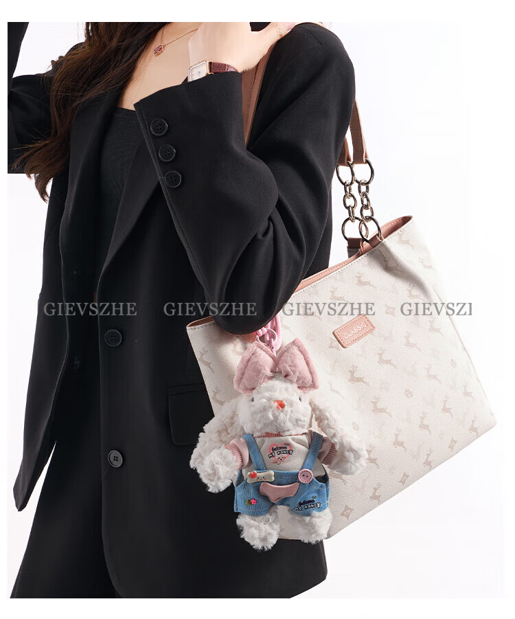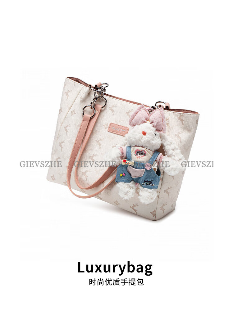 纪诗哲(GIEVSZHE)包包女包2025新款轻奢侈女士大容量托特包情人节新年礼物送女友 米白拼粉【2025年新款/垂耳兔挂饰】 礼盒装