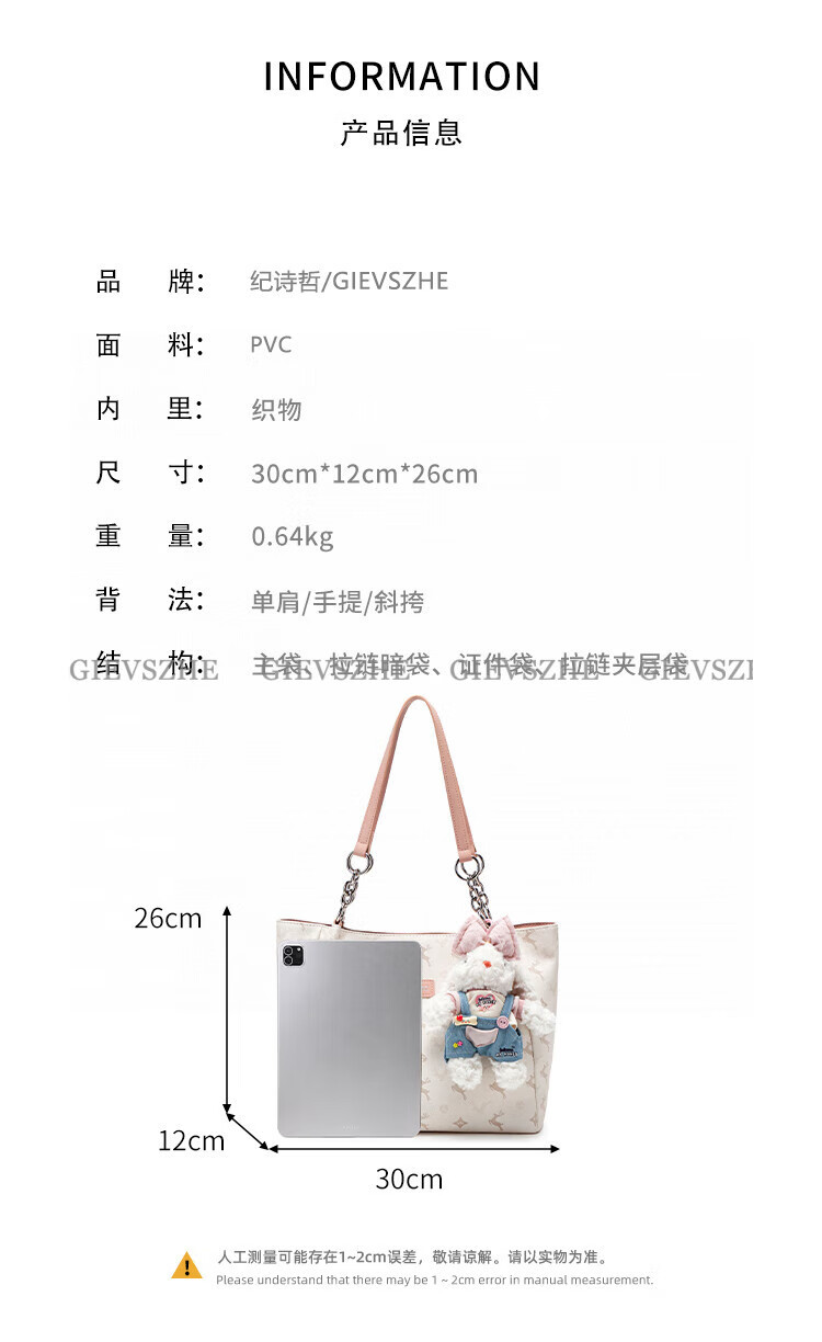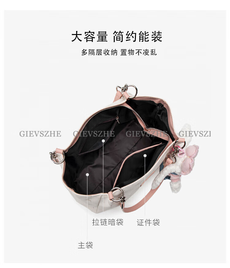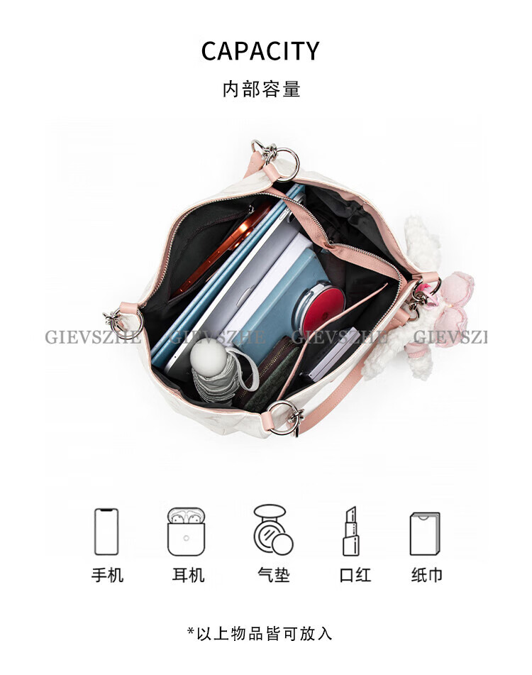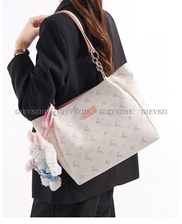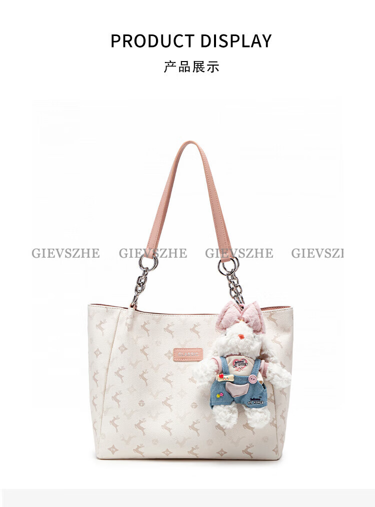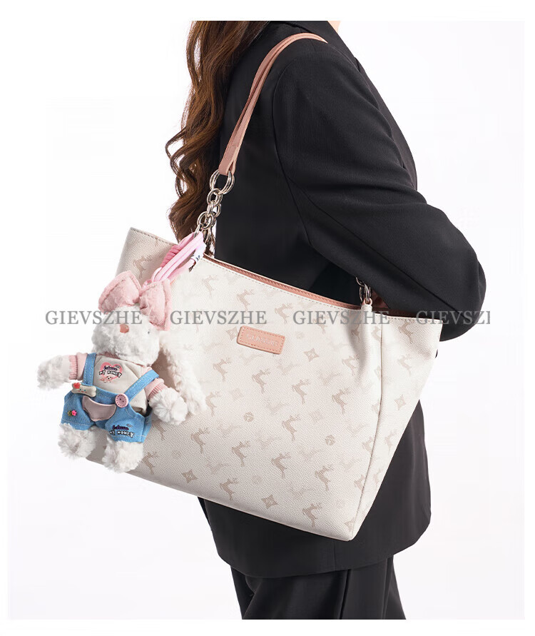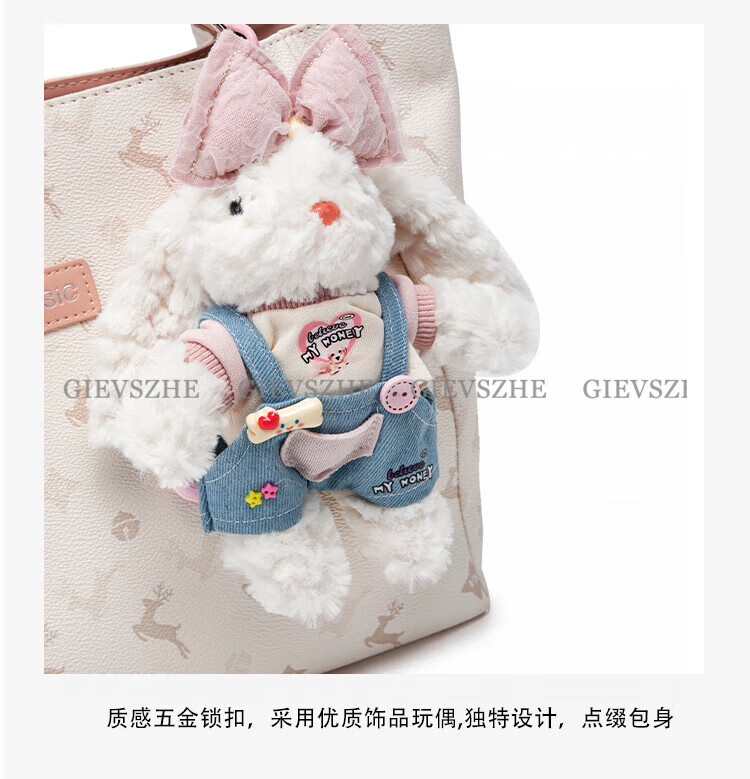 纪诗哲(GIEVSZHE)包包女包2025新款轻奢侈女士大容量托特包情人节新年礼物送女友 米白拼粉【2025年新款/垂耳兔挂饰】 礼盒装