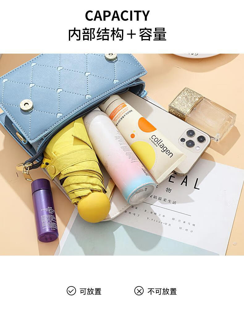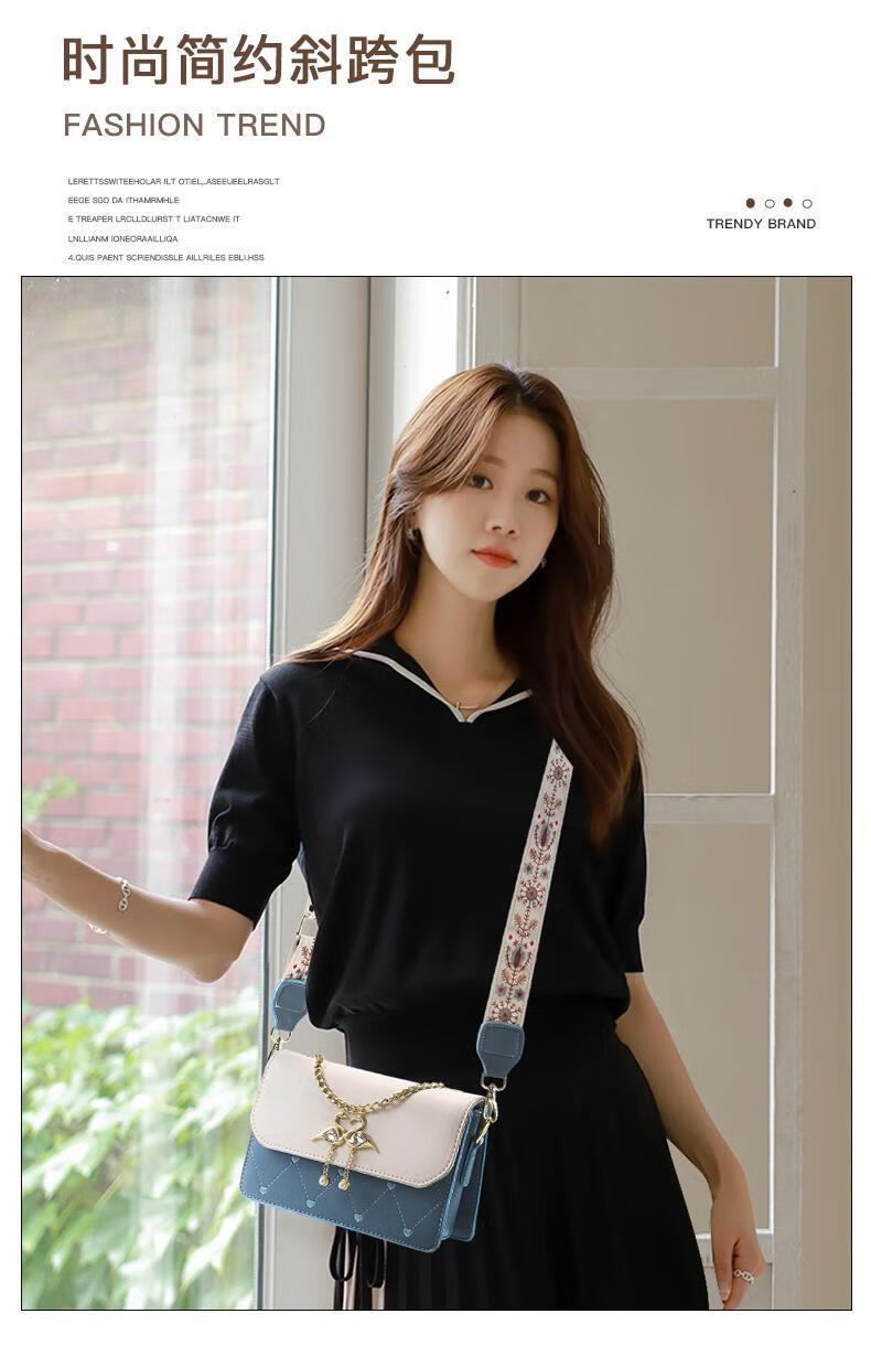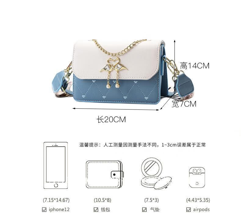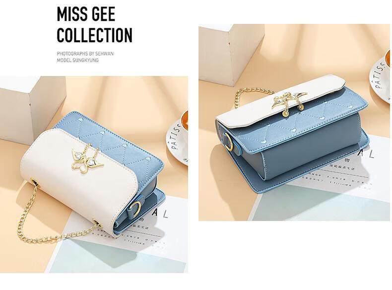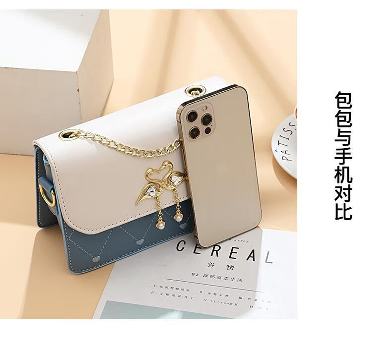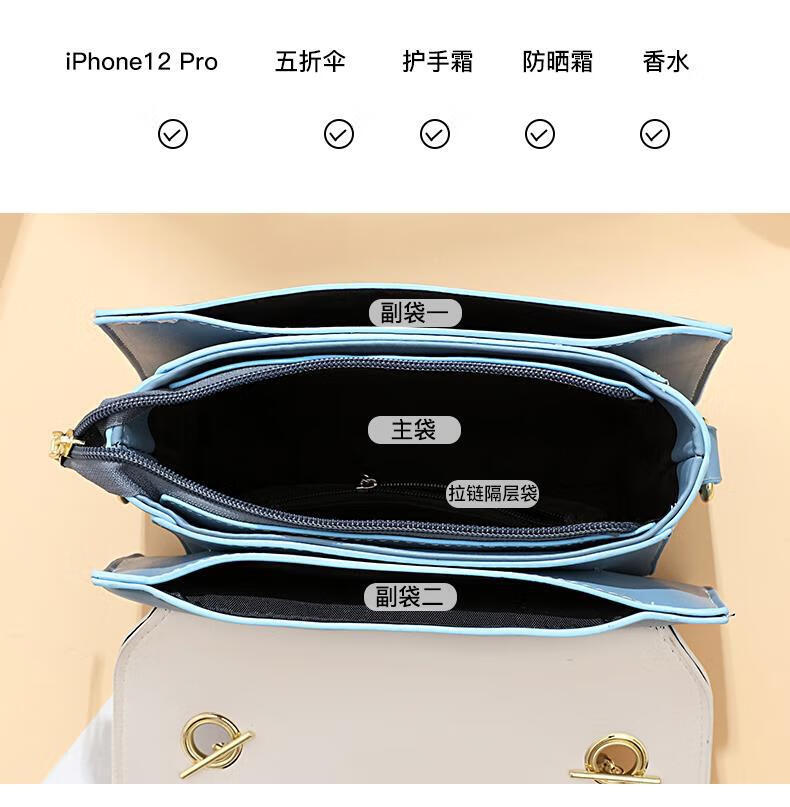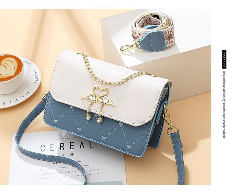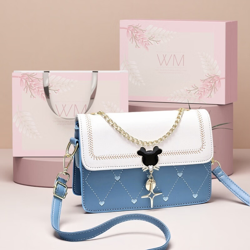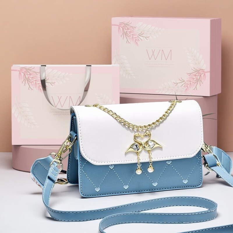 游子吟生日礼物送女友老婆包包女包2026新款小包包洋气单肩斜挎女包 蓝拼白-代写贺卡 轻奢品质女包
