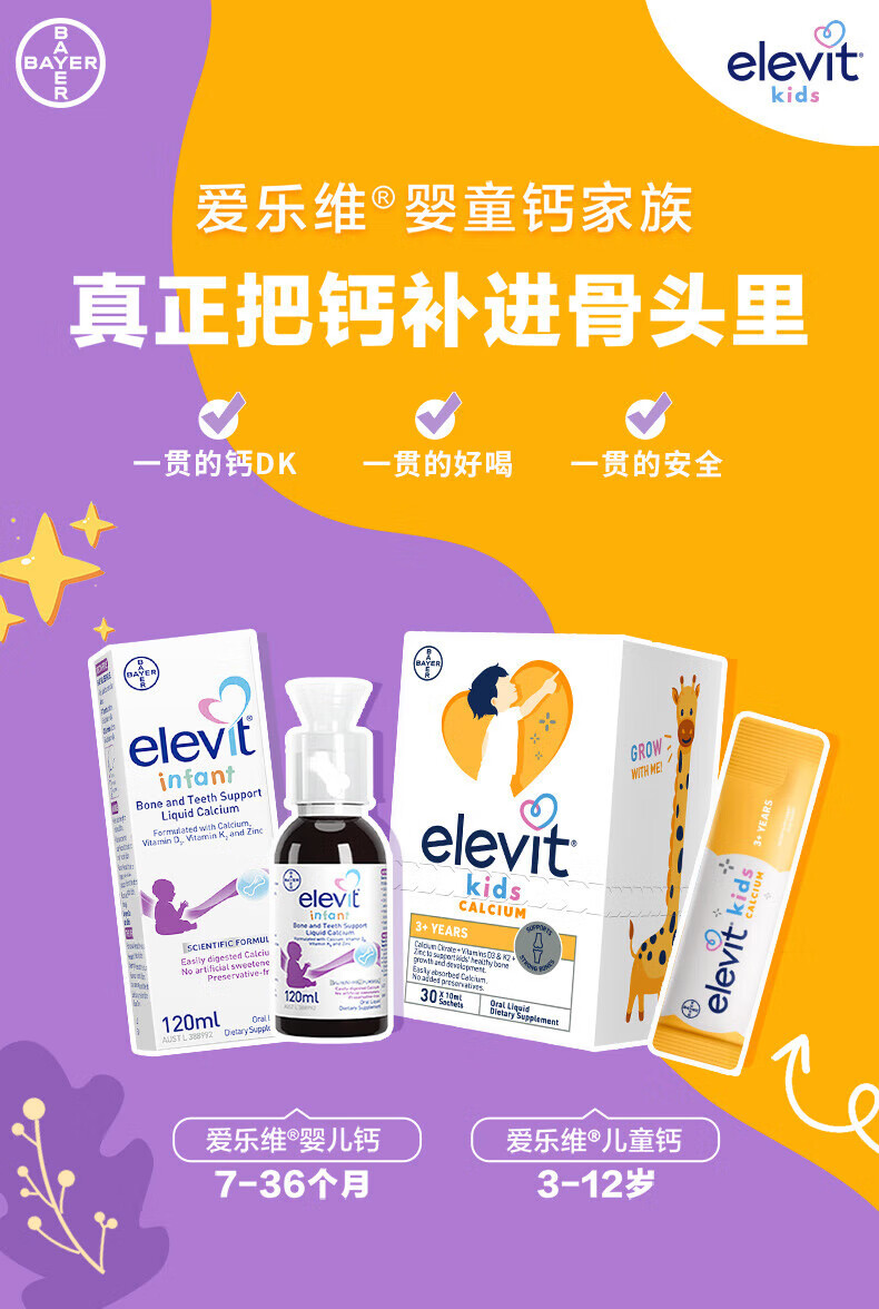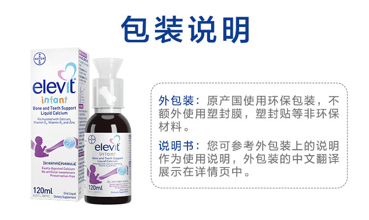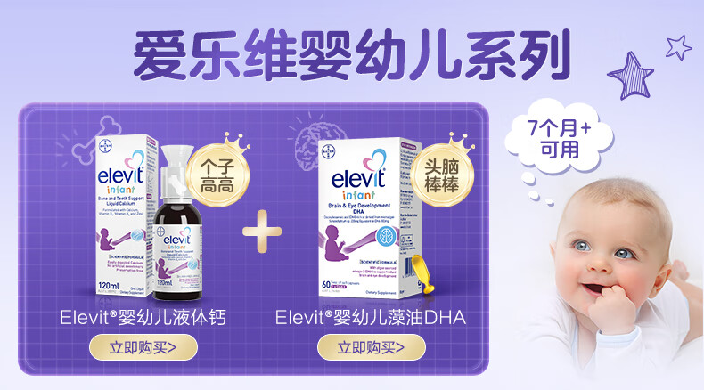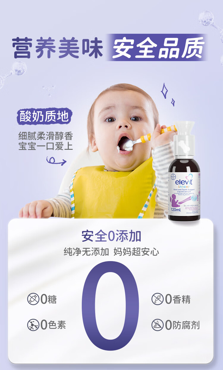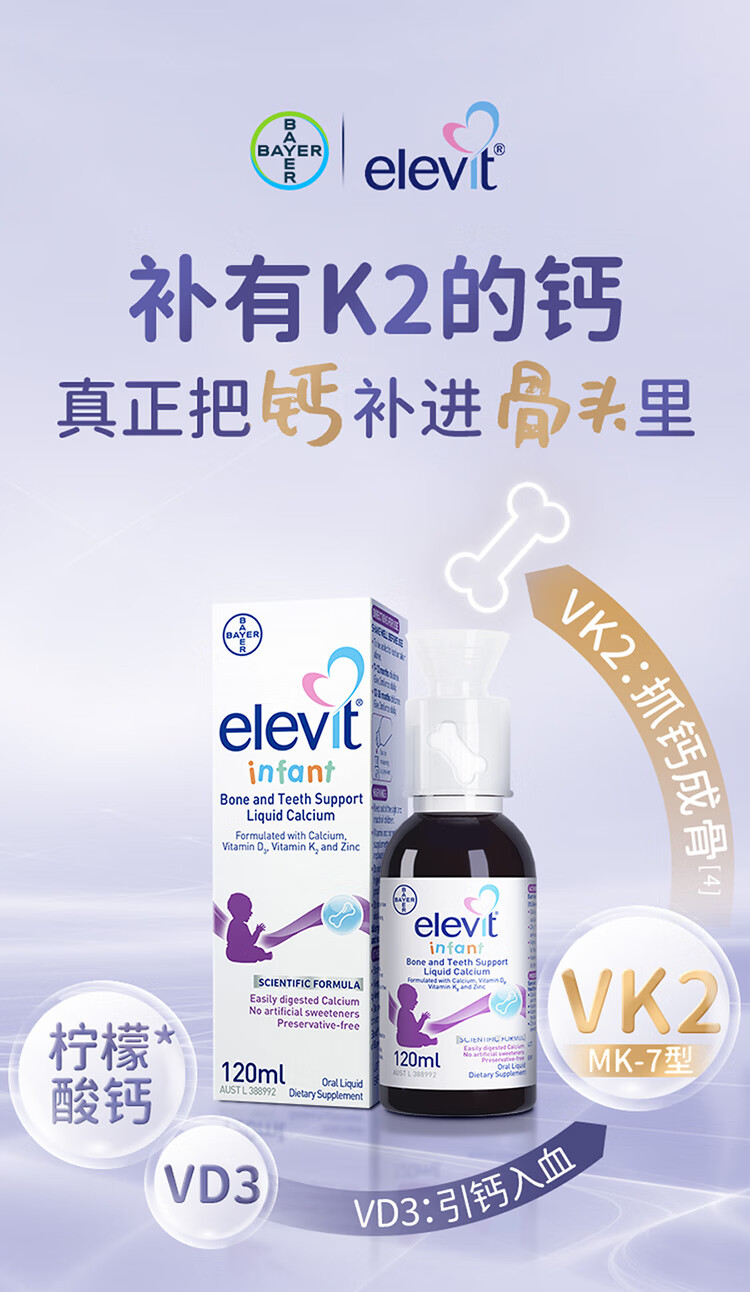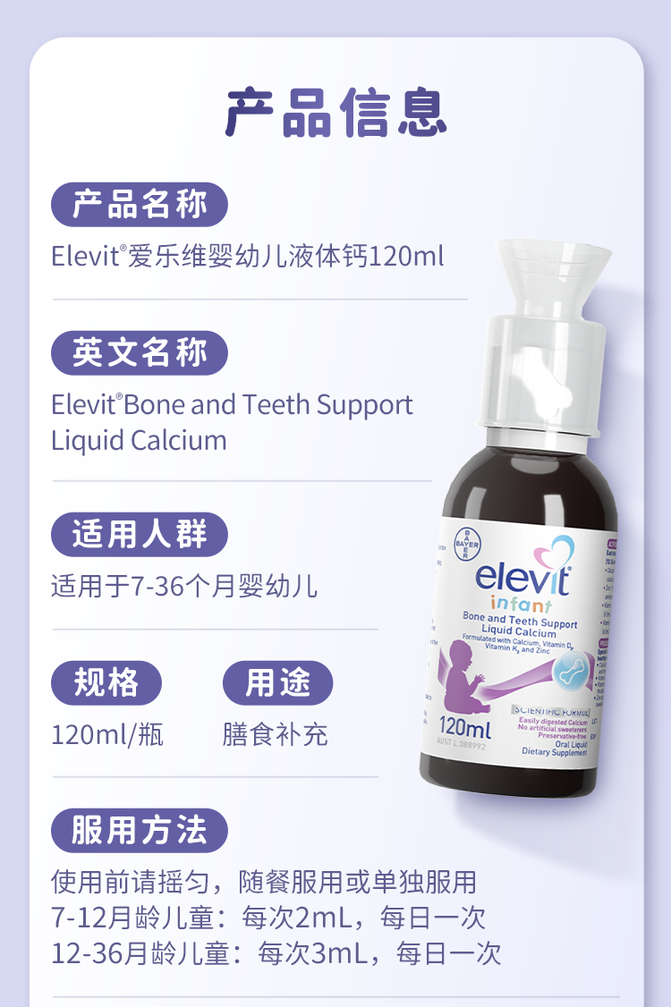 Elevit爱乐维婴儿液体钙 非钙铁锌0糖d3k2液体钙0糖配方7-36个月120ml*1