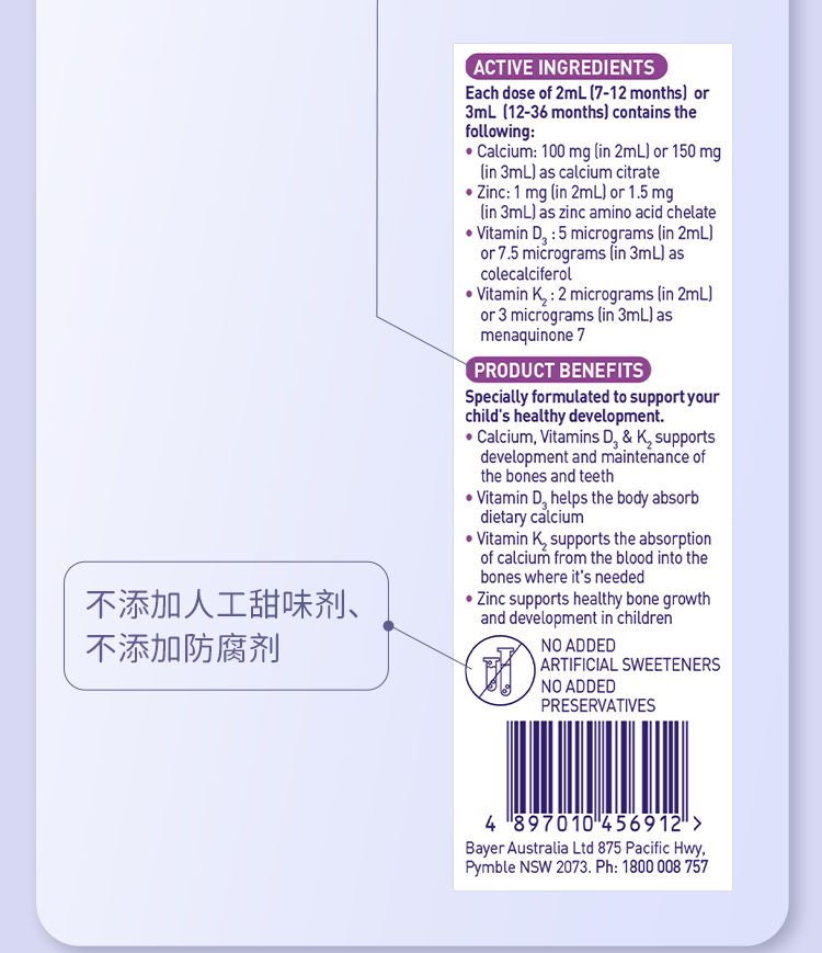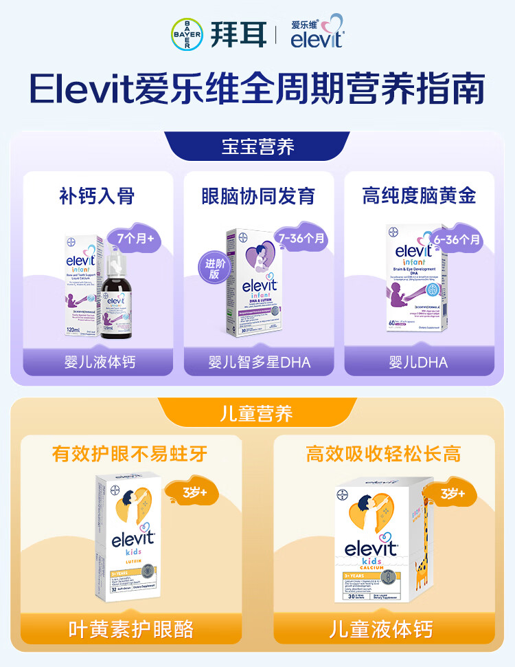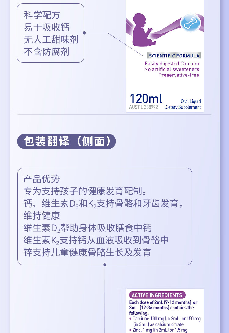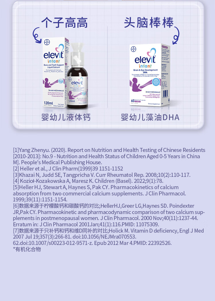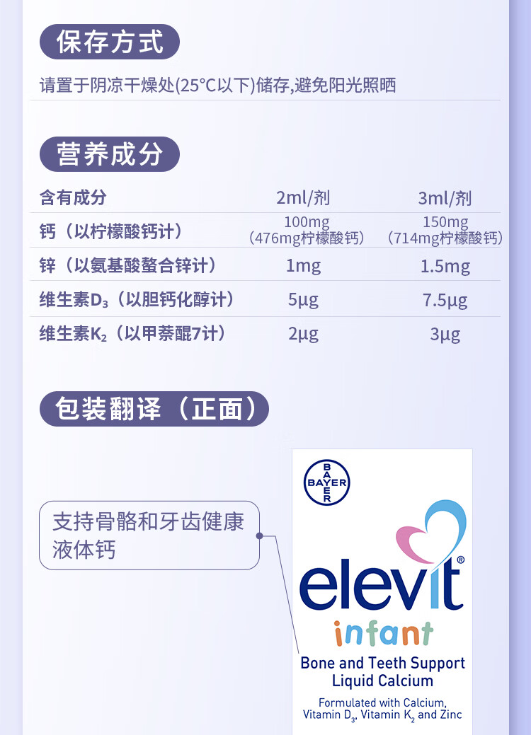 Elevit爱乐维婴儿液体钙 非钙铁锌0糖d3k2液体钙0糖配方7-36个月120ml*1