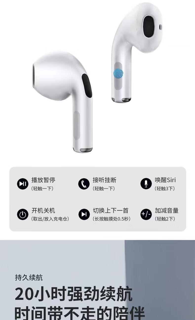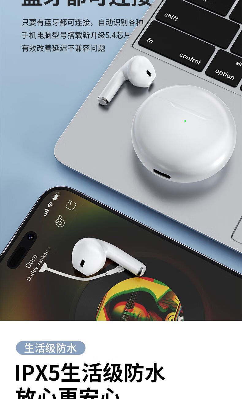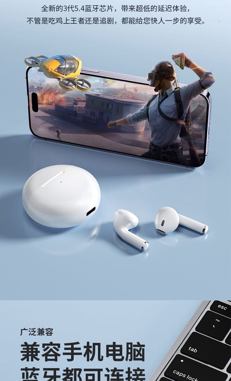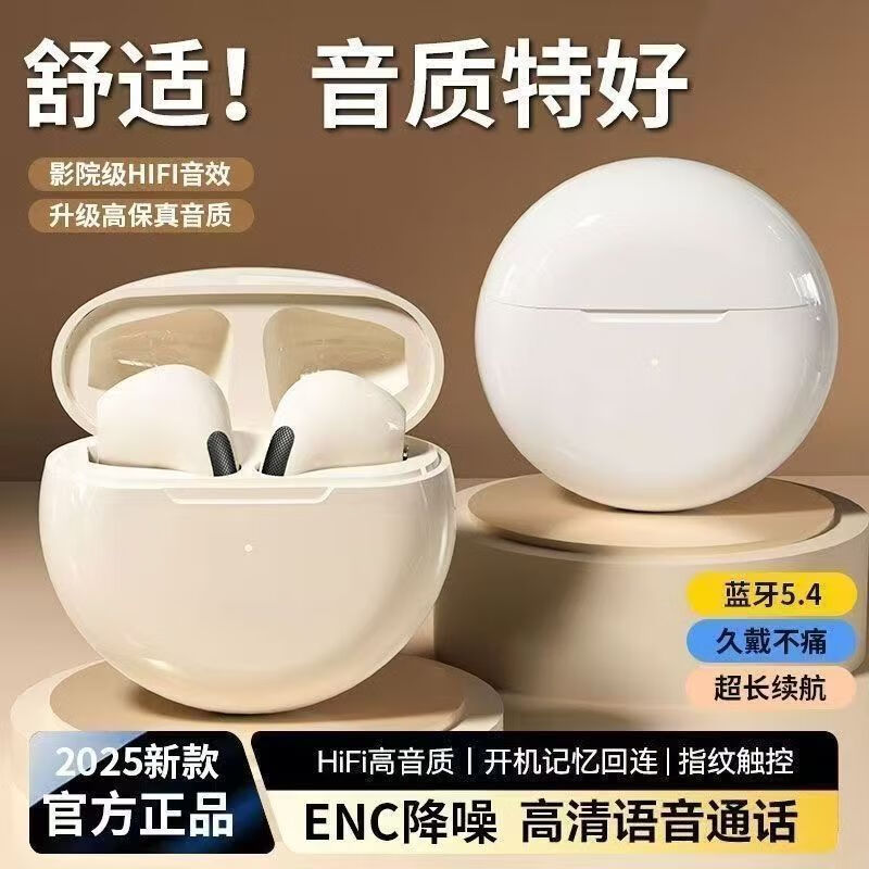 【京东物流】蓝牙耳机真无线半入耳式运动跑步游戏音乐通话降噪适用于小米苹果华为 月光白
