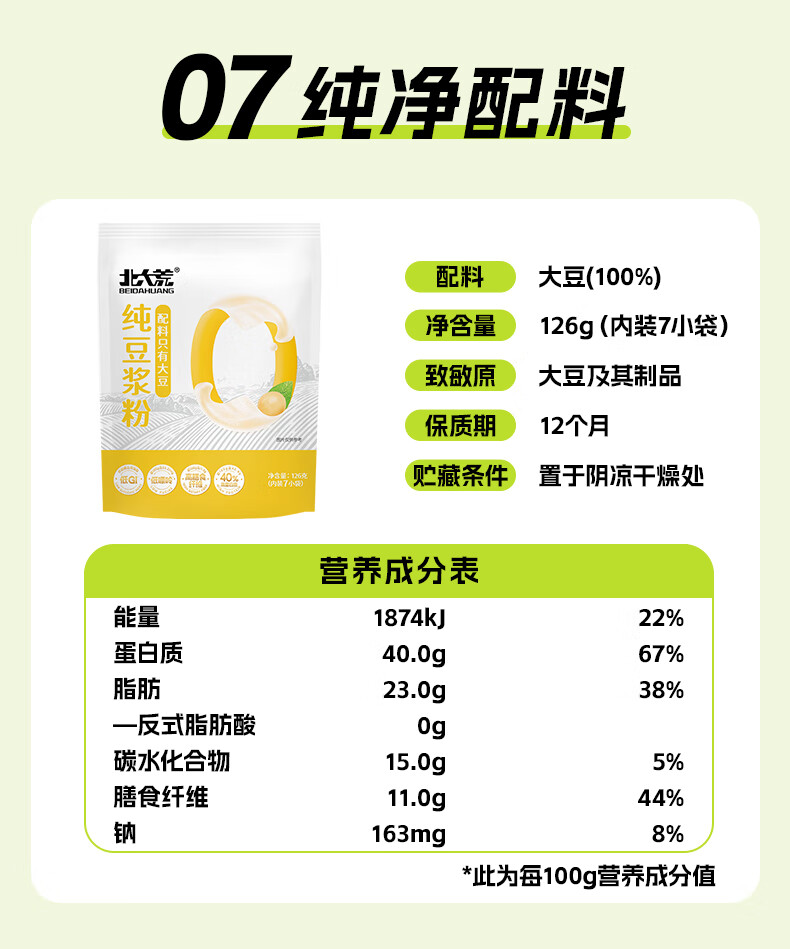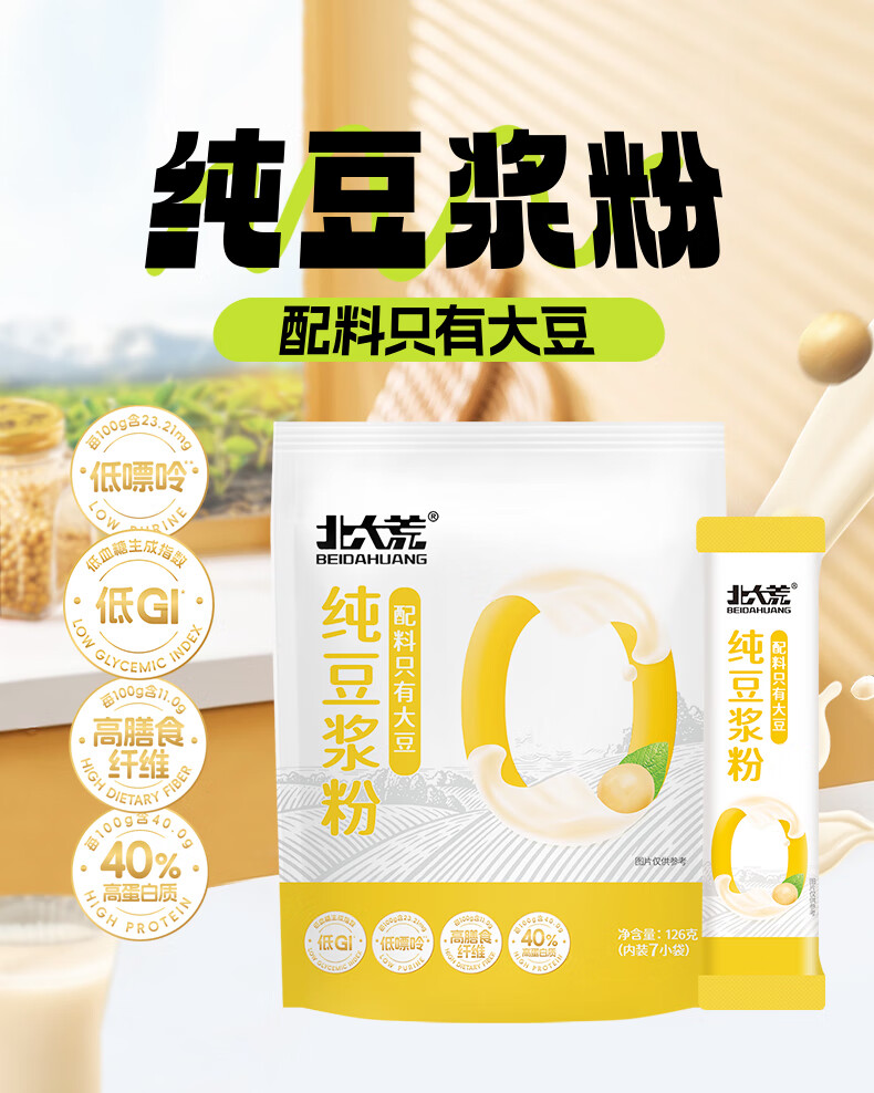北大荒纯豆浆粉126g(7条)无添加低GI高纤高蛋白非转基因谷物早餐