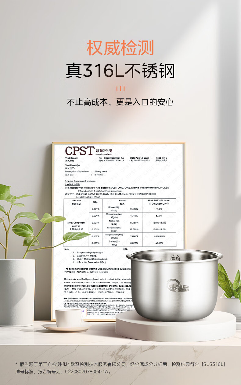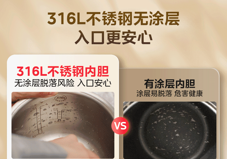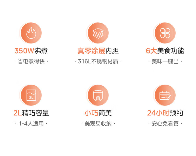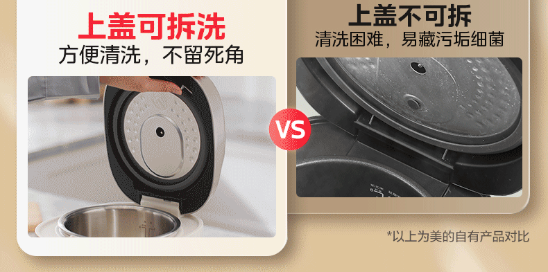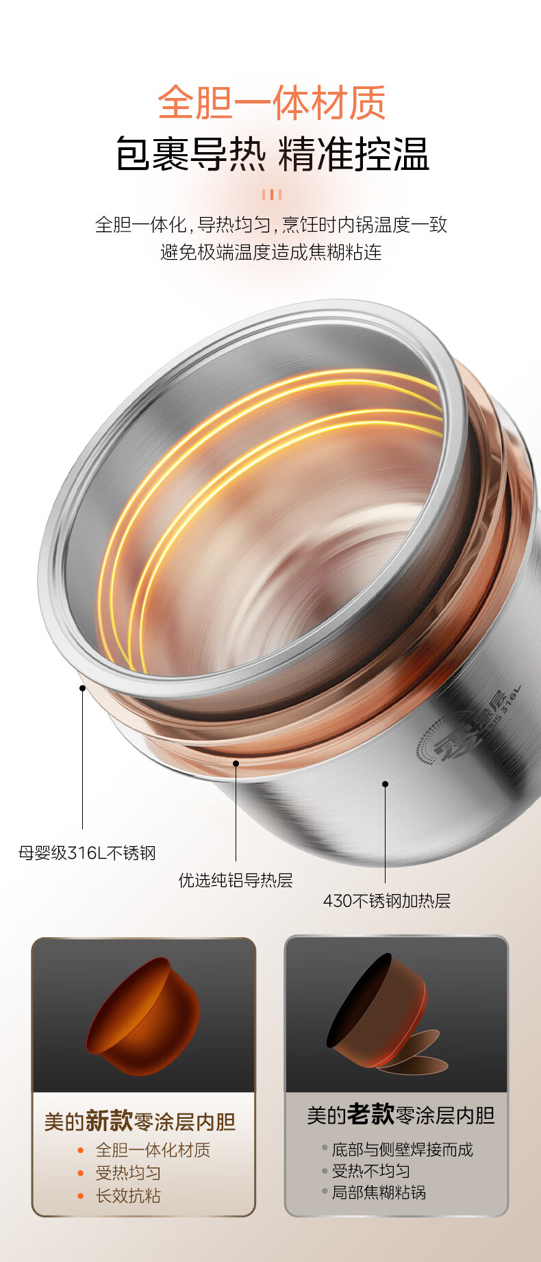 美的电饭煲1-2-3人 家用0涂层316L不锈钢内胆电饭锅小型 迷你智能多功能定时煮小米粥锅微压 母婴级【上盖可拆洗】白 2L