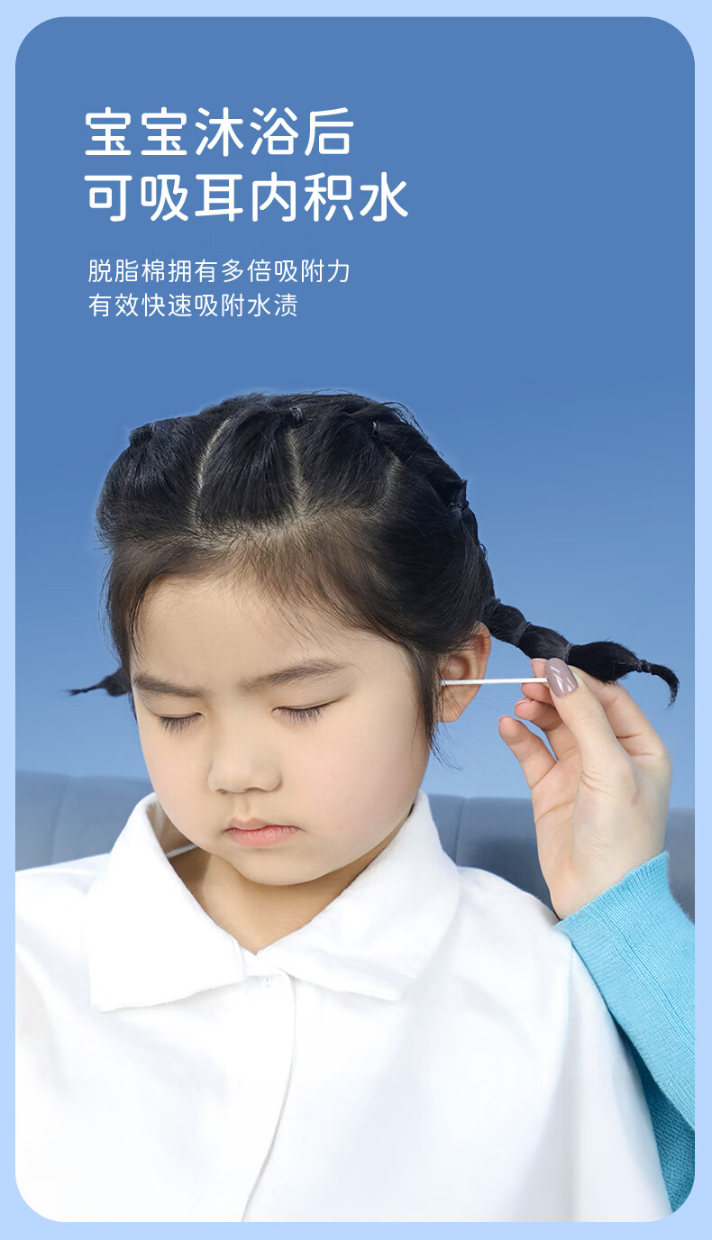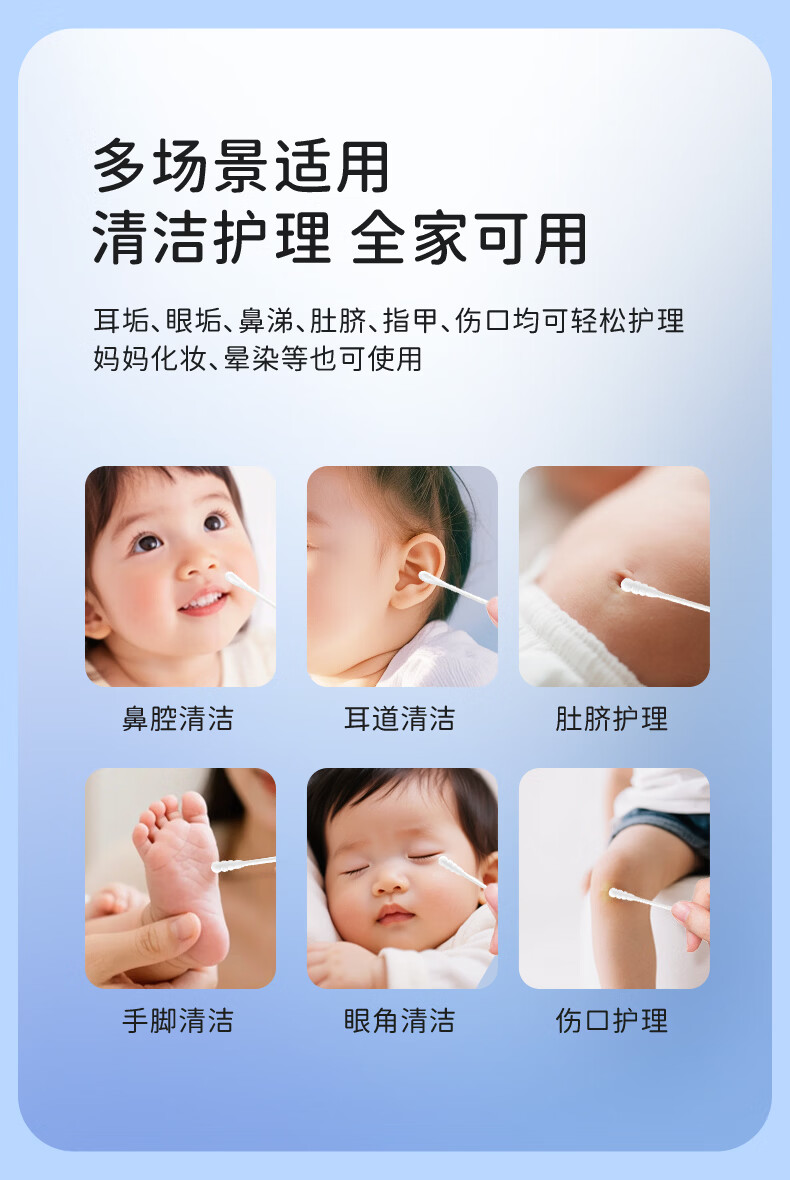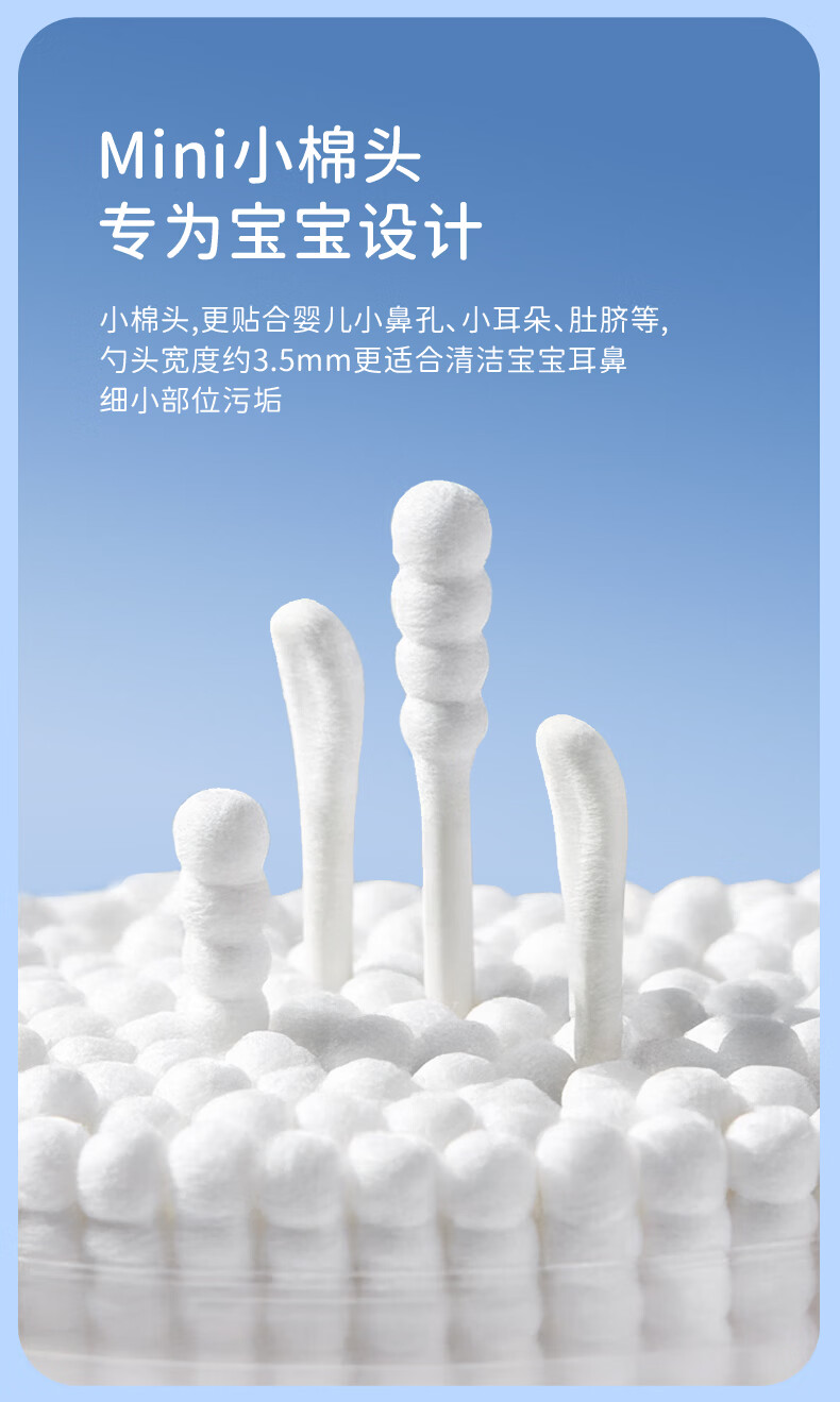 sister care婴儿棉签棉棒宝宝掏耳朵鼻屎肚脐挖耳勺螺旋头新生儿童细轴200支