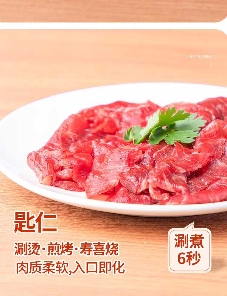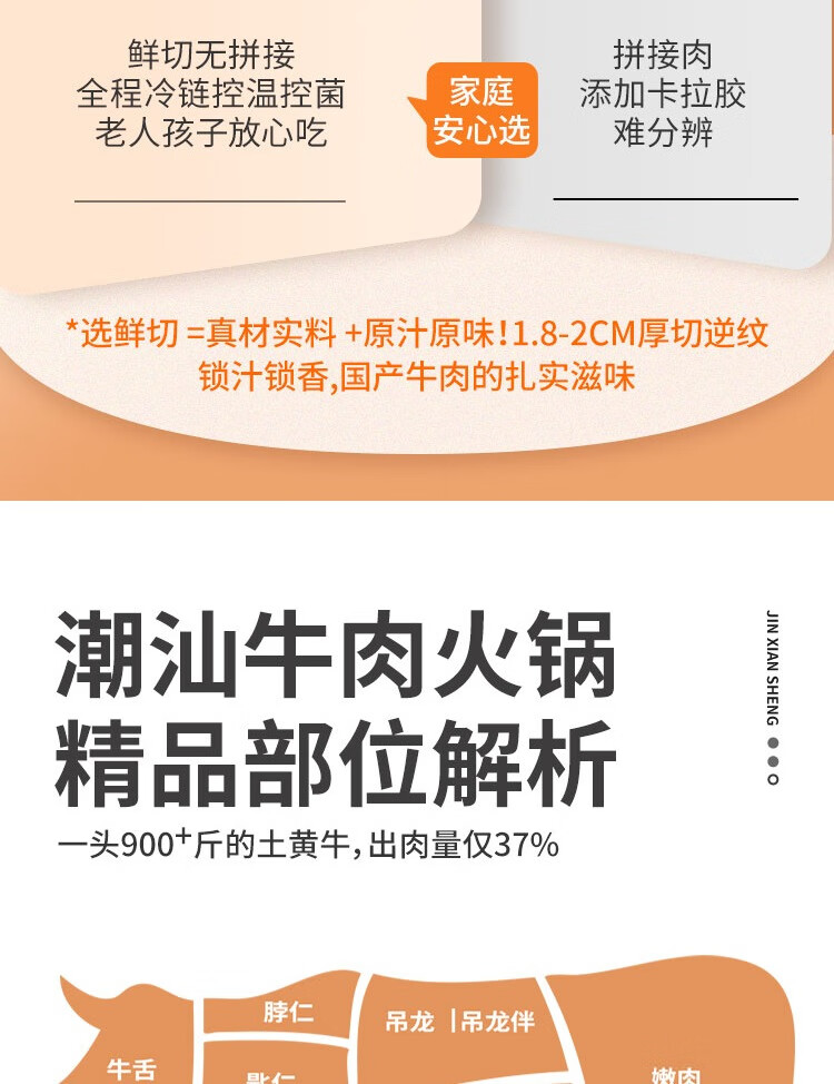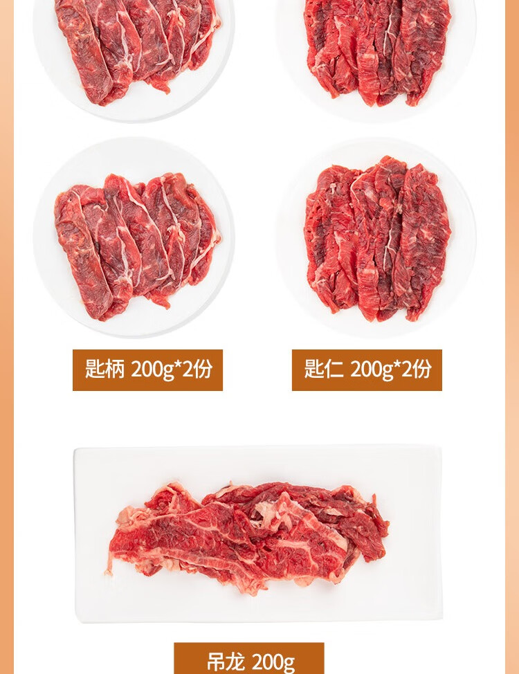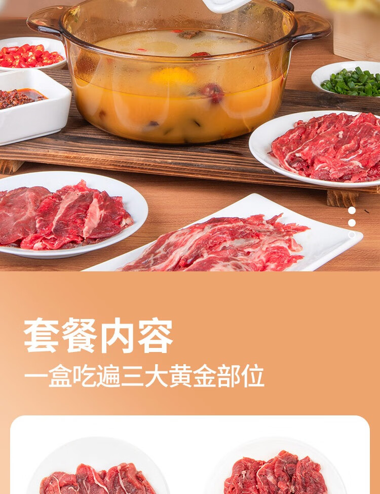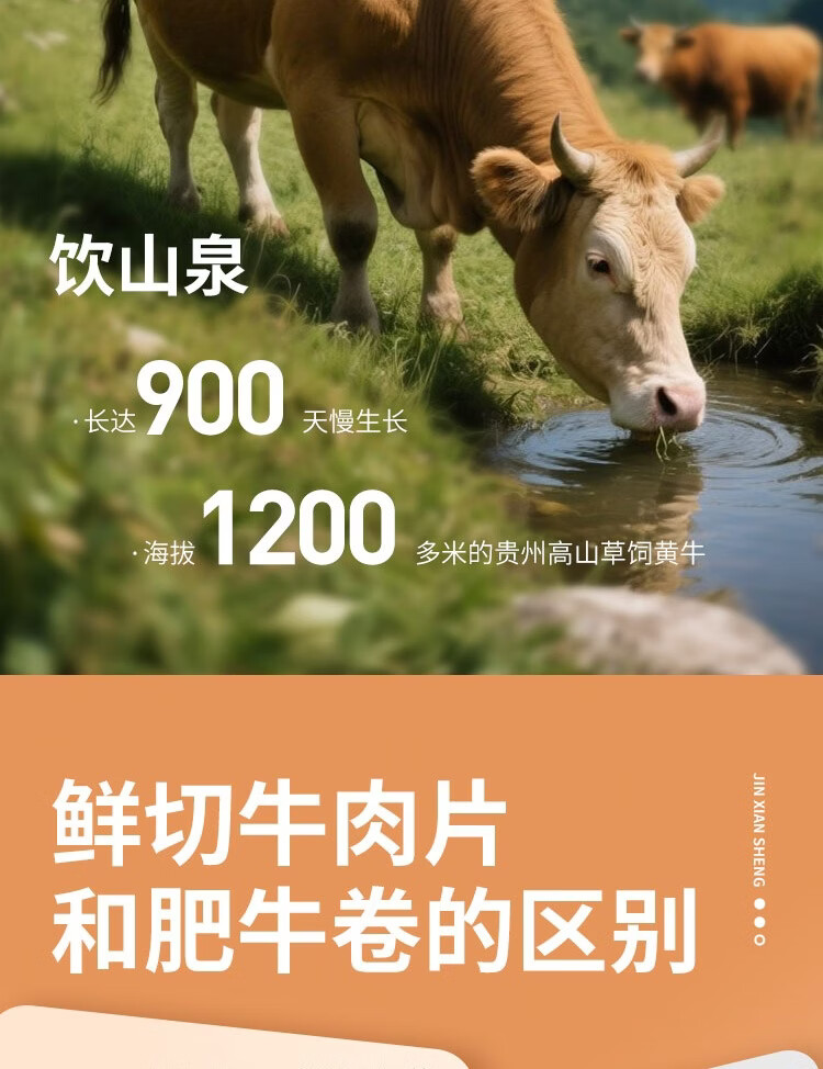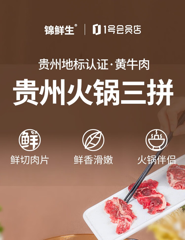 锦鲜生贵州高山黄牛潮汕火锅三拼 200g*5 净重2斤 生鲜牛肉牛肉卷