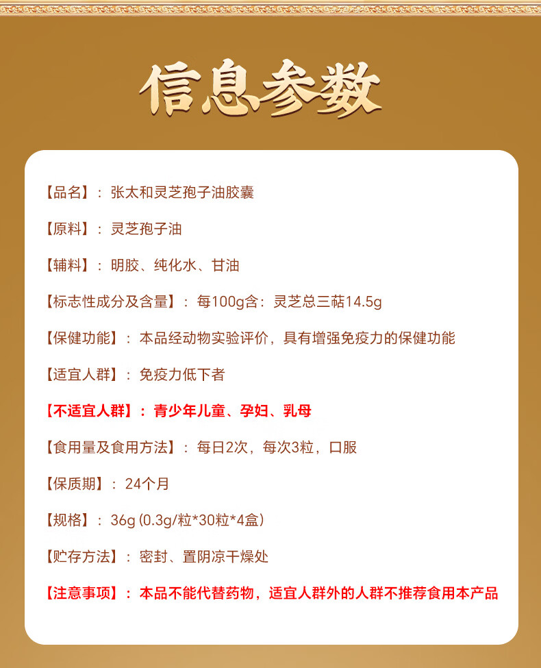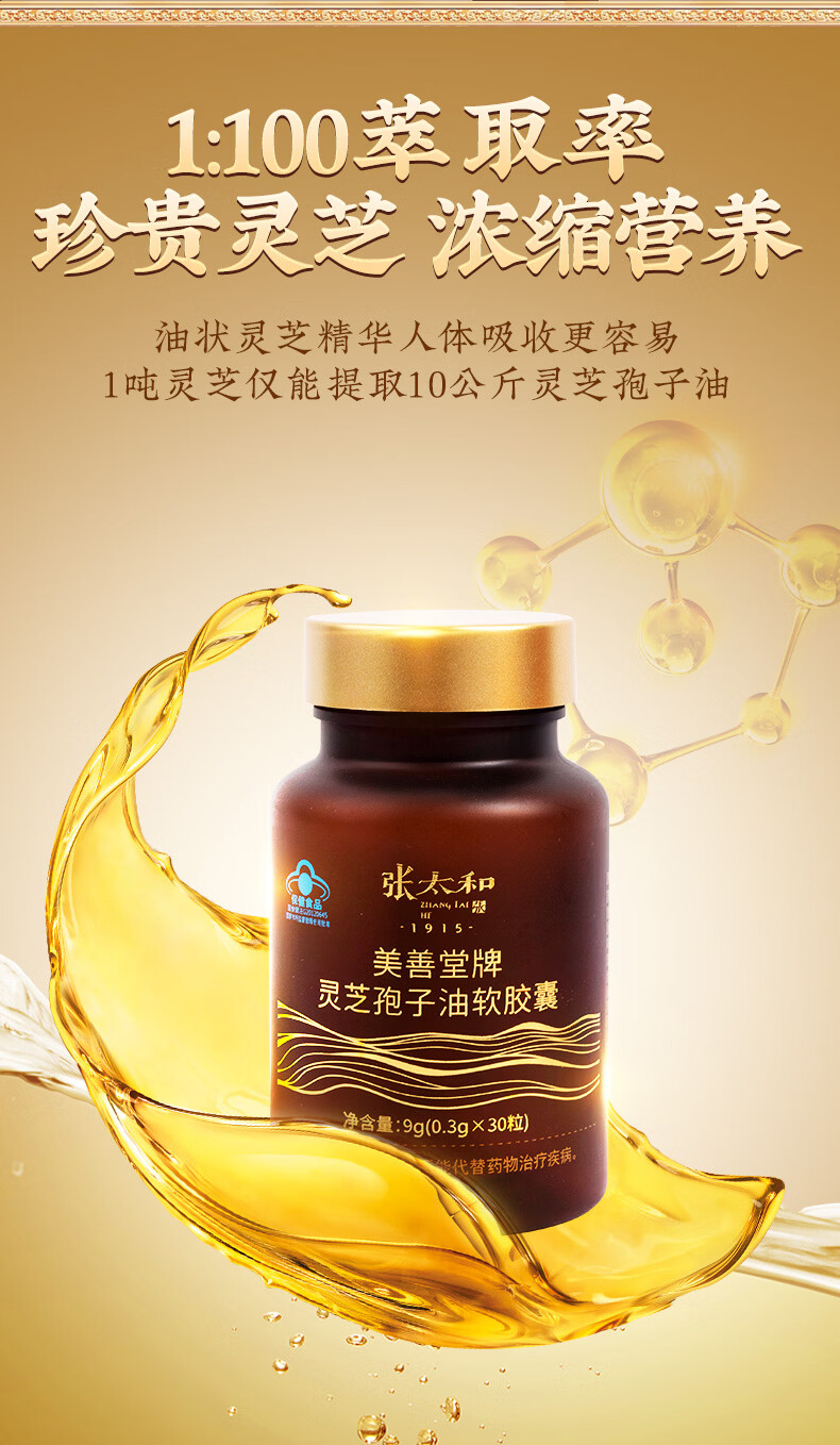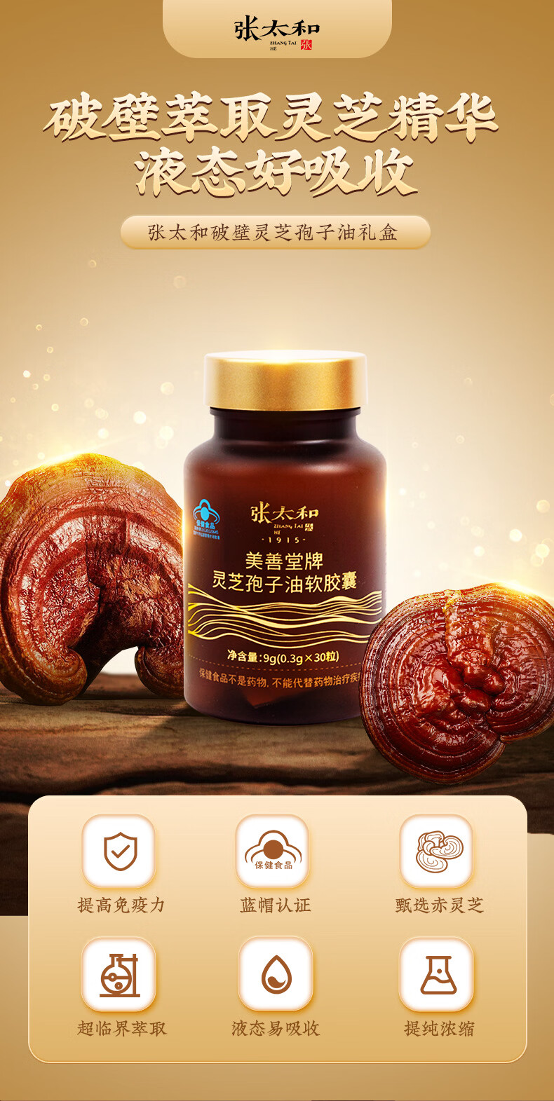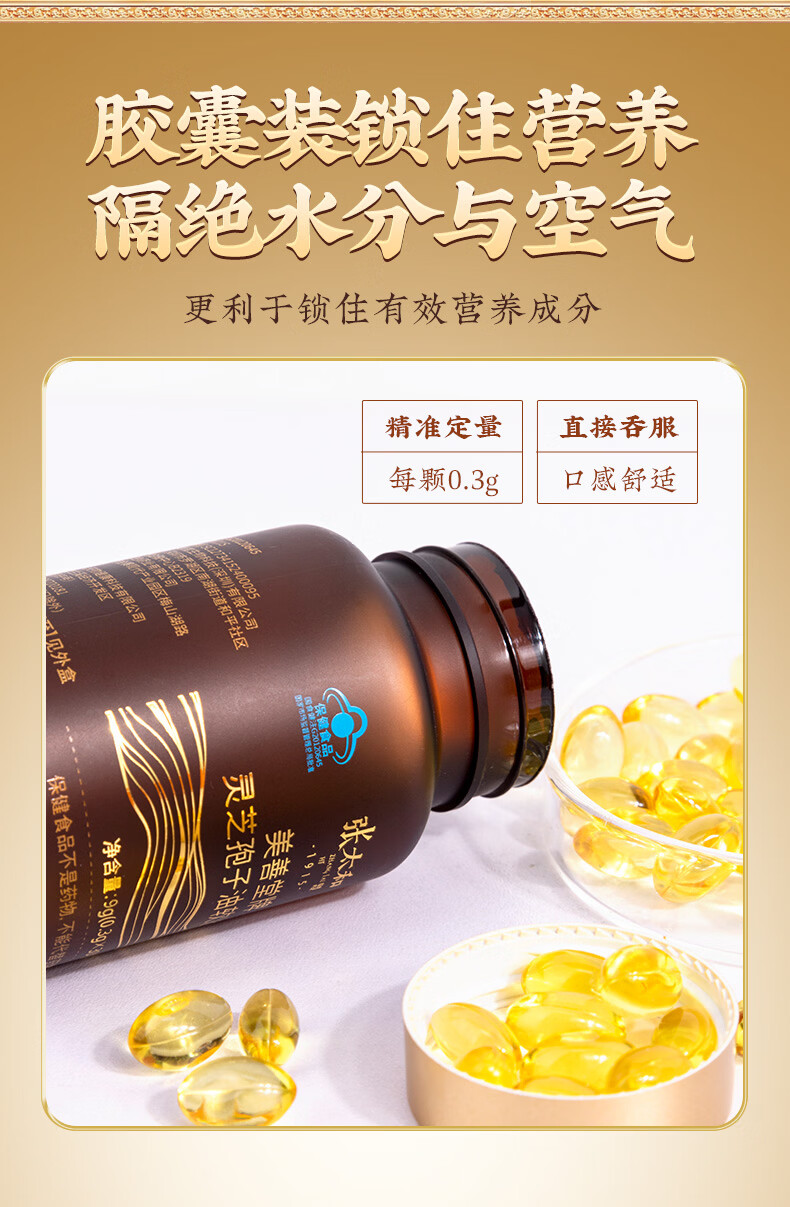 张太和破壁灵芝孢子油胶囊增强免疫力蓝帽保健品认证滋补礼品新春礼盒 灵芝孢子油软胶囊(0.3g*30粒/盒*4)礼盒装
