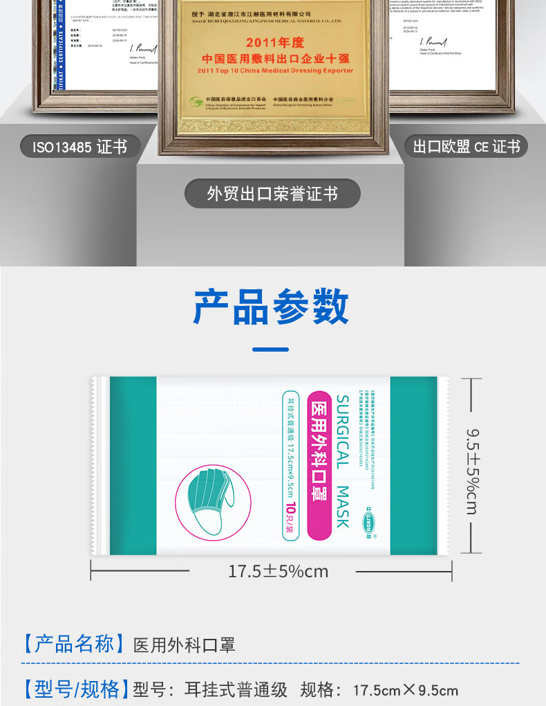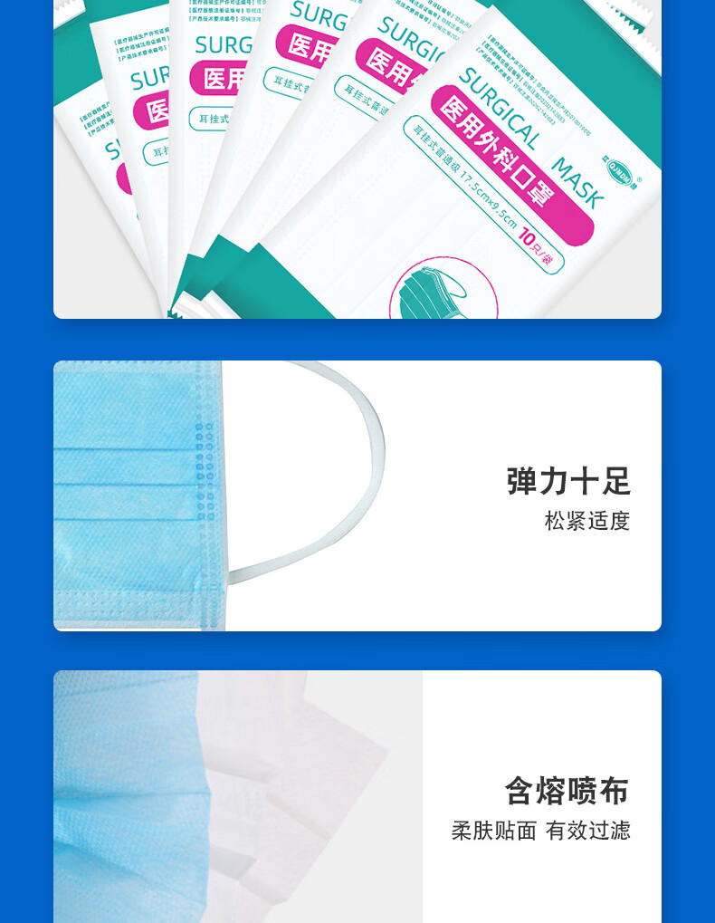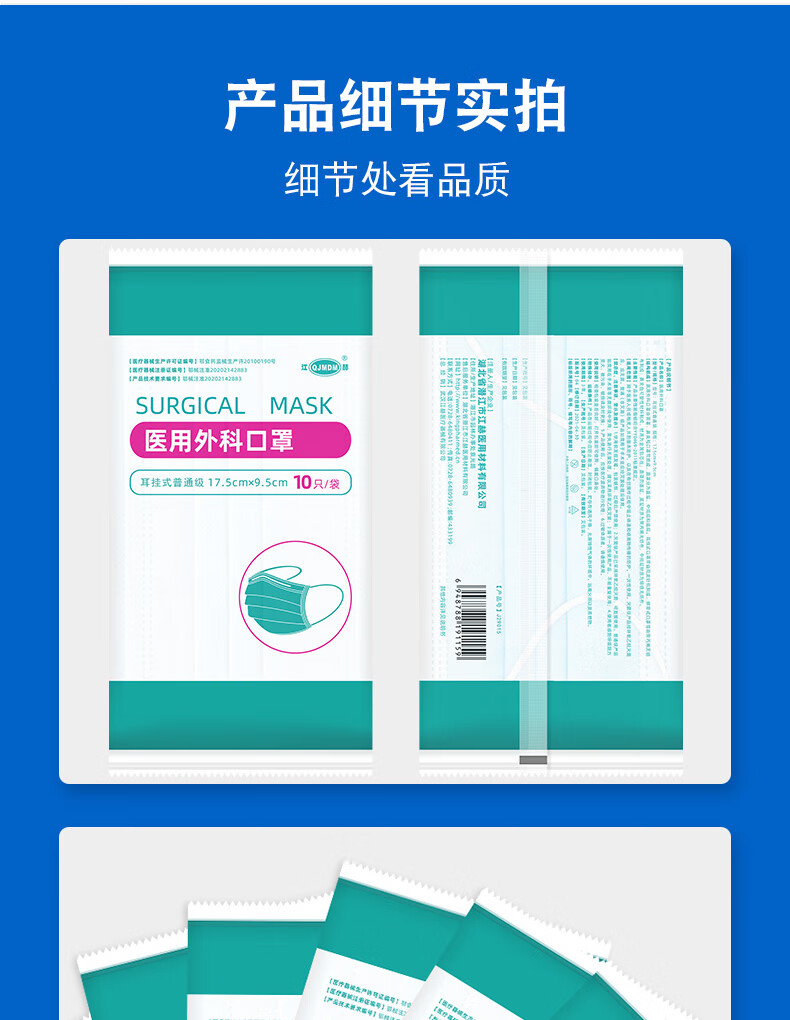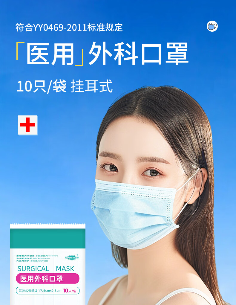 江赫医用外科口罩 三层防护含熔喷布10只/袋独立装舒适透气 200只装