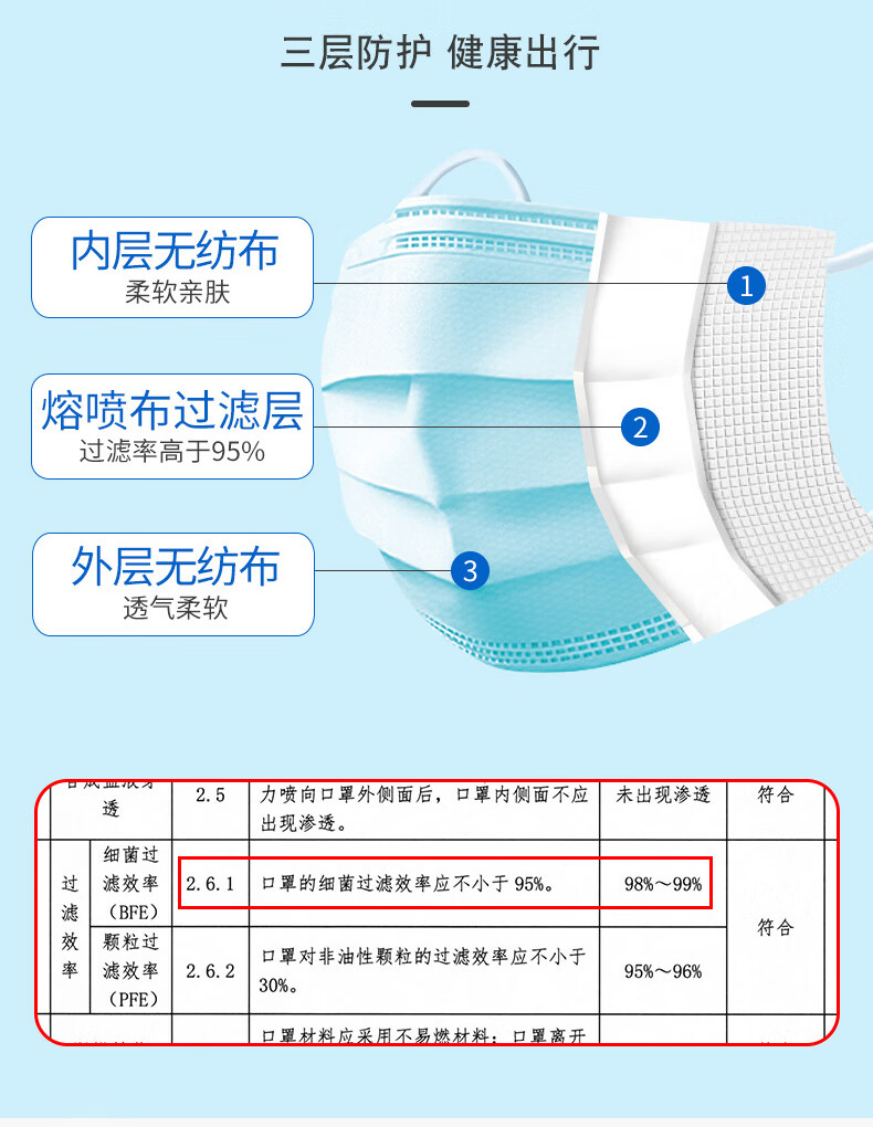 顶格医用外科口罩独立装一次性三层防护过滤成人医疗透气亲肤不勒耳 蓝色 成人款100只【独立装】