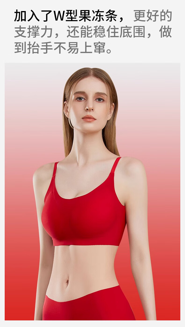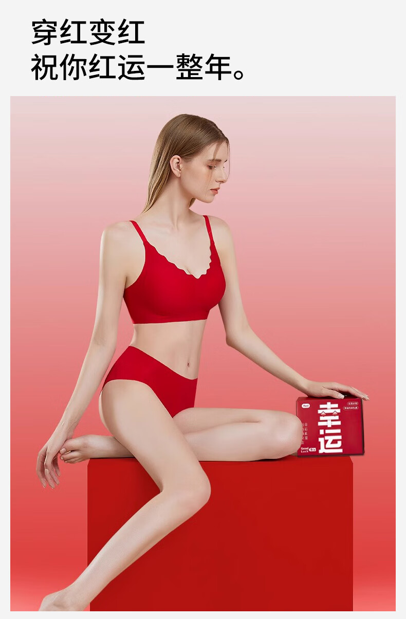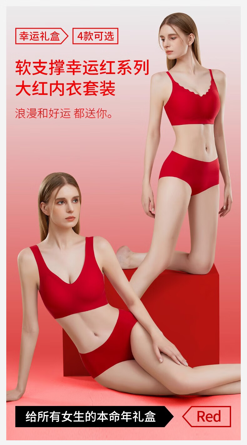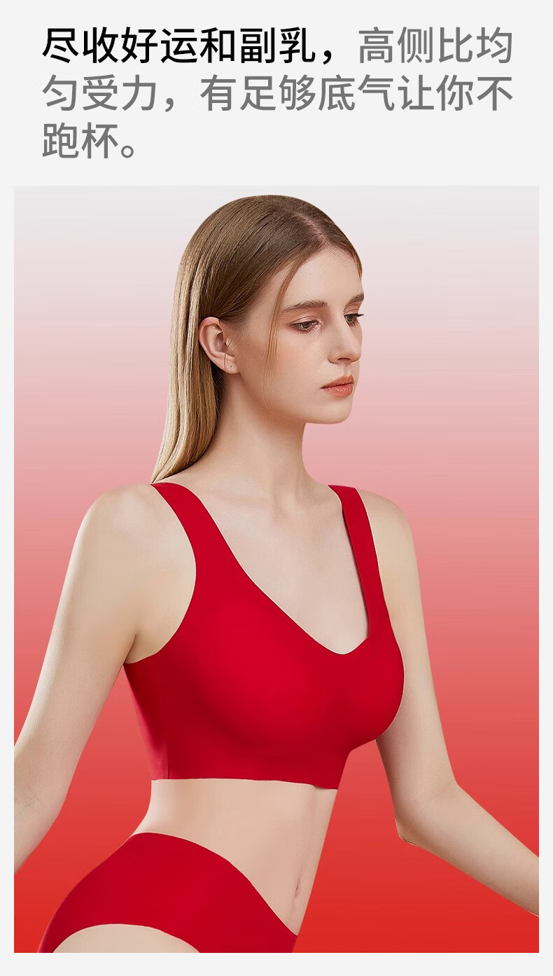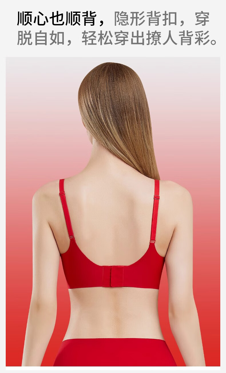 ROVO红色本命年内衣套装女红色礼盒聚拢无痕美背软支撑大红文胸礼盒 细肩带背扣款 M