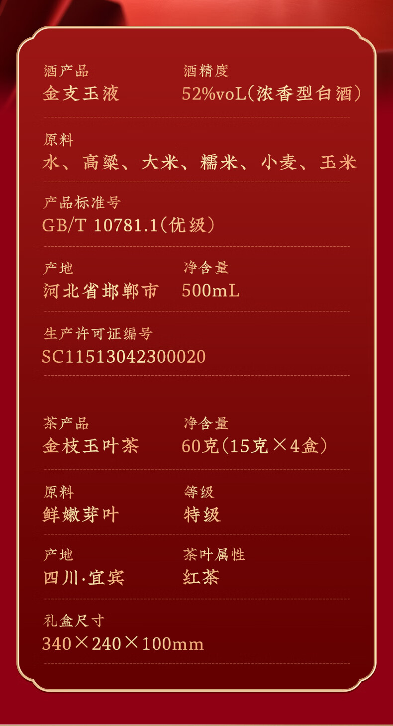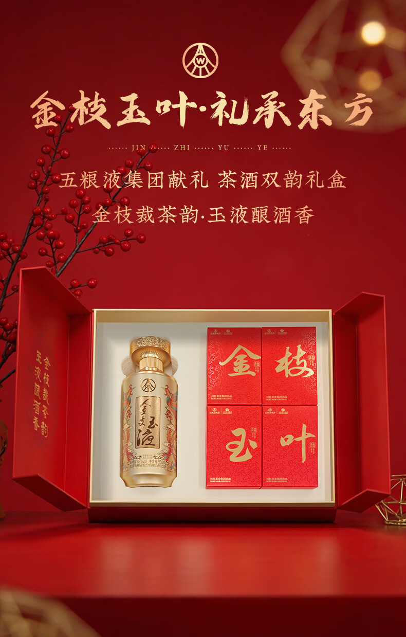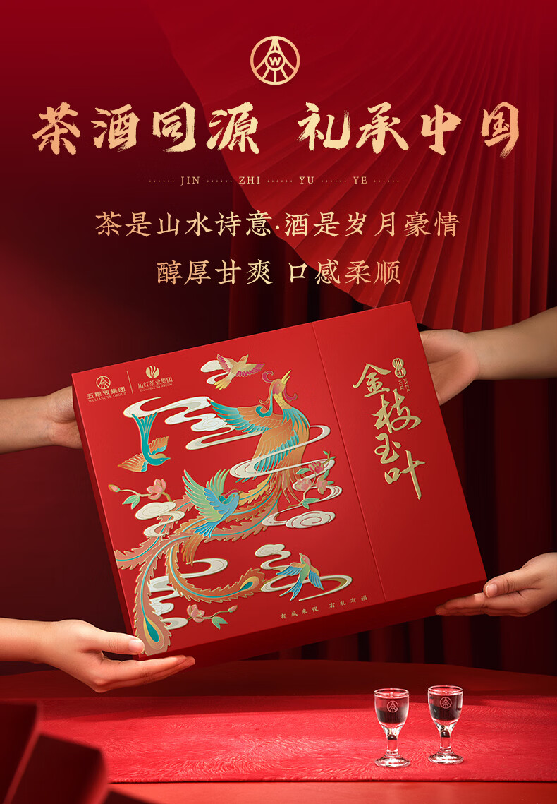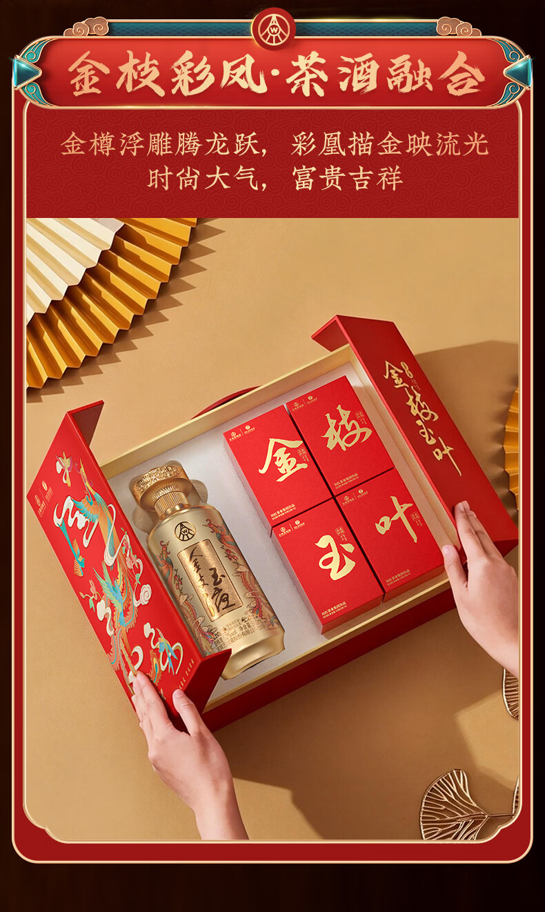 五粮浓香百鸟朝凤 金支玉液金装版礼盒 五粮液股份川红联名款 浓香型白酒 52度 500mL 1瓶 +五粮液川红集团红茶60g