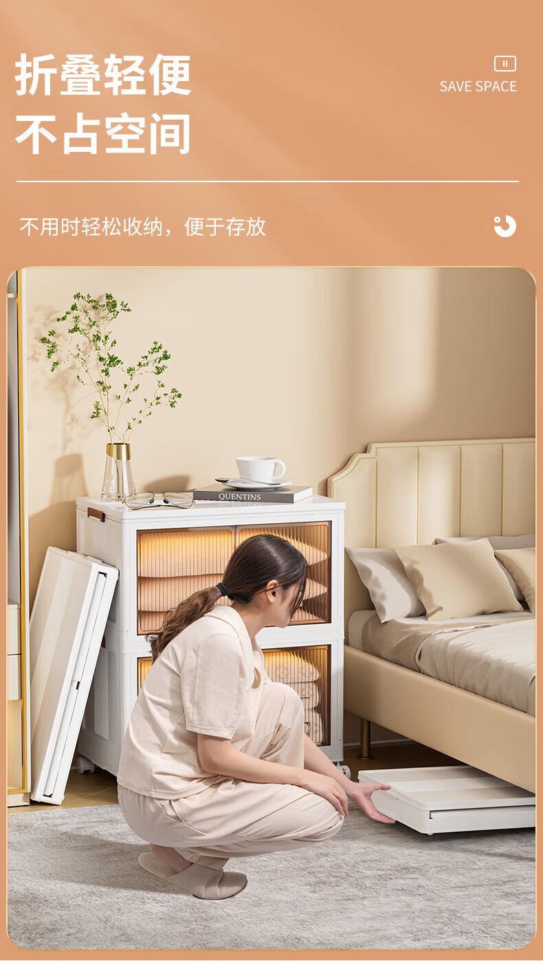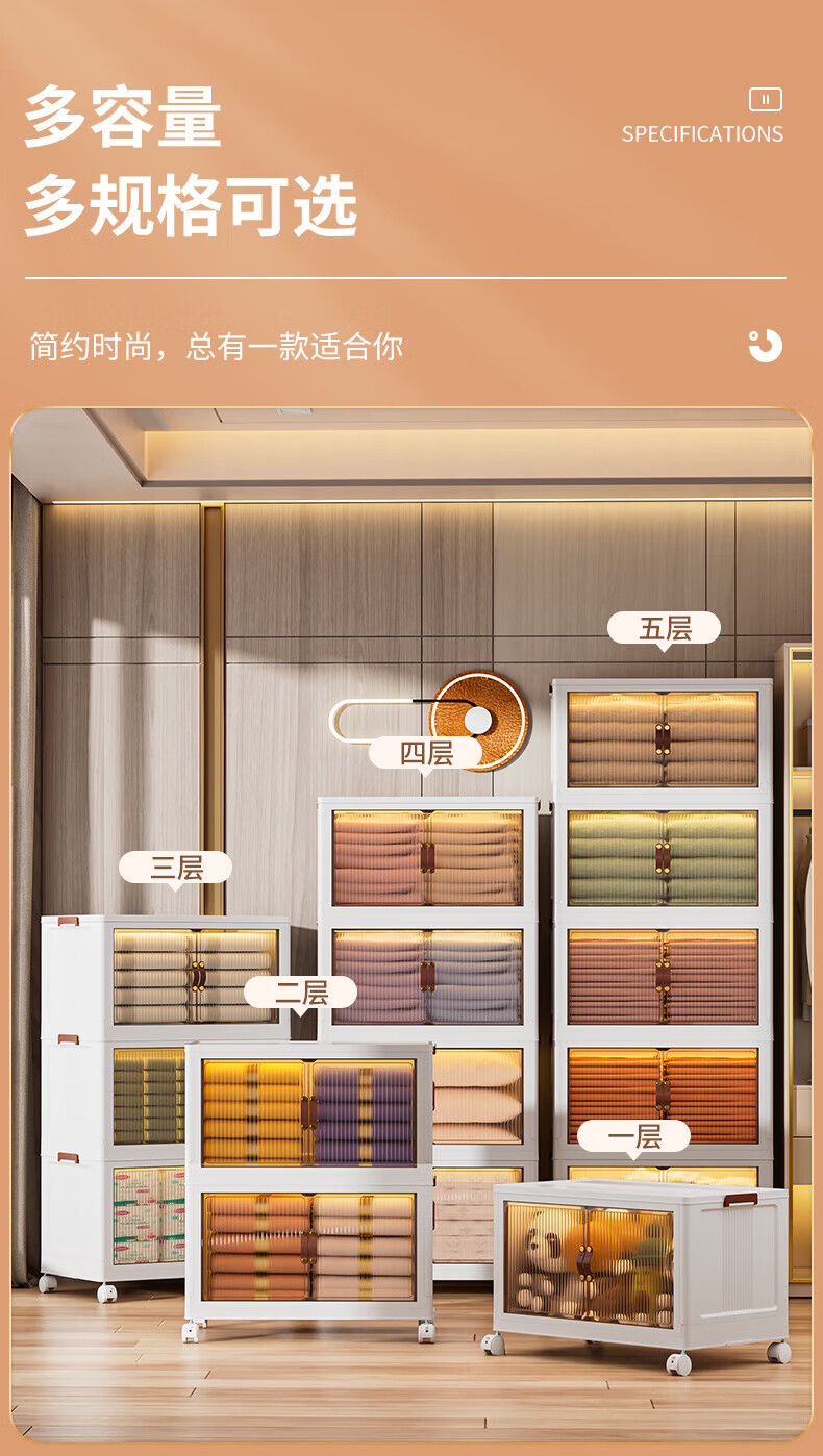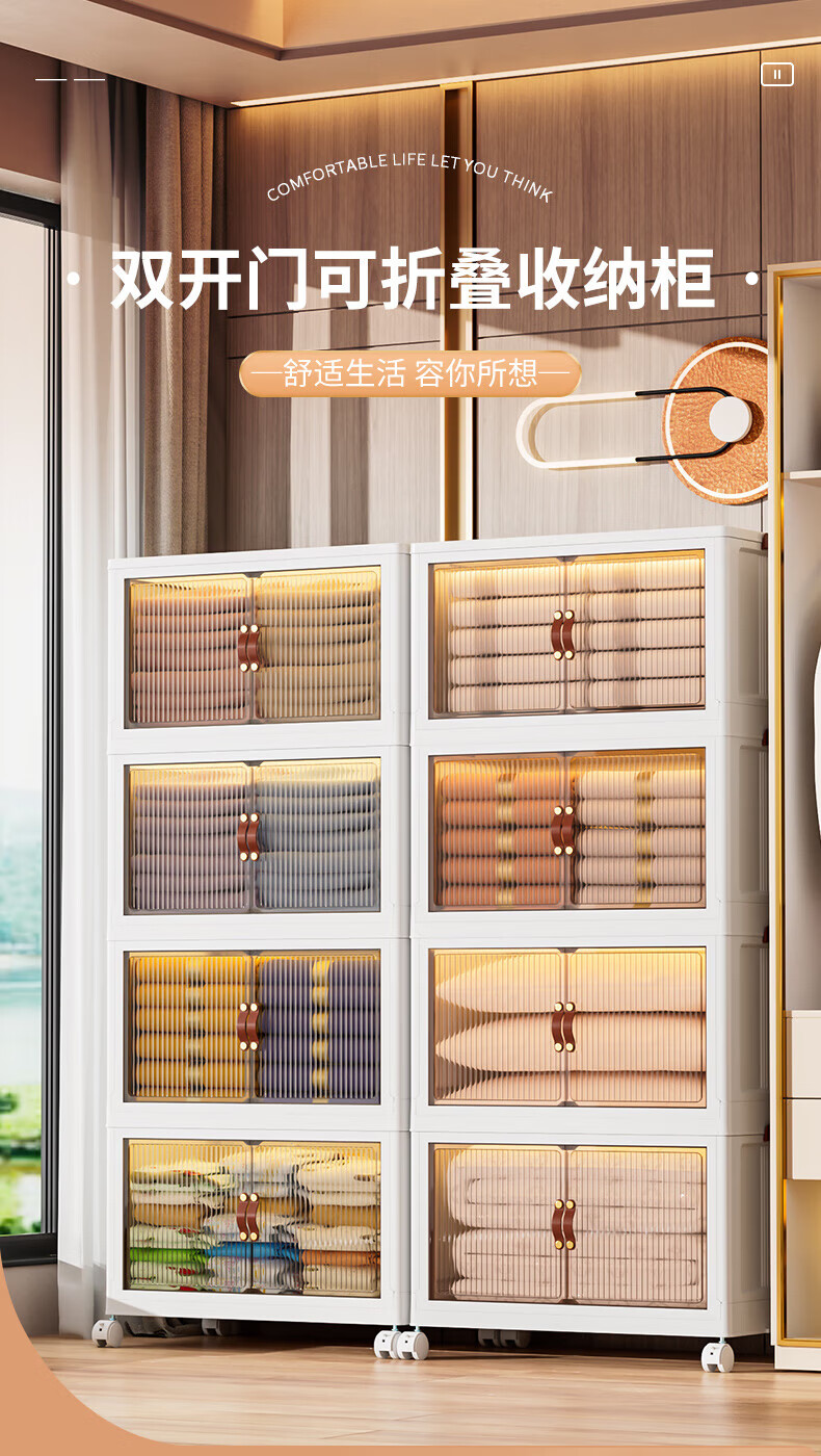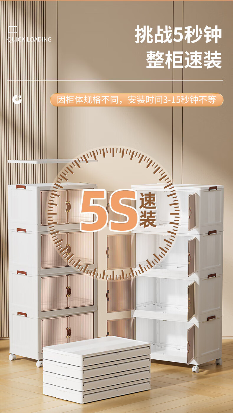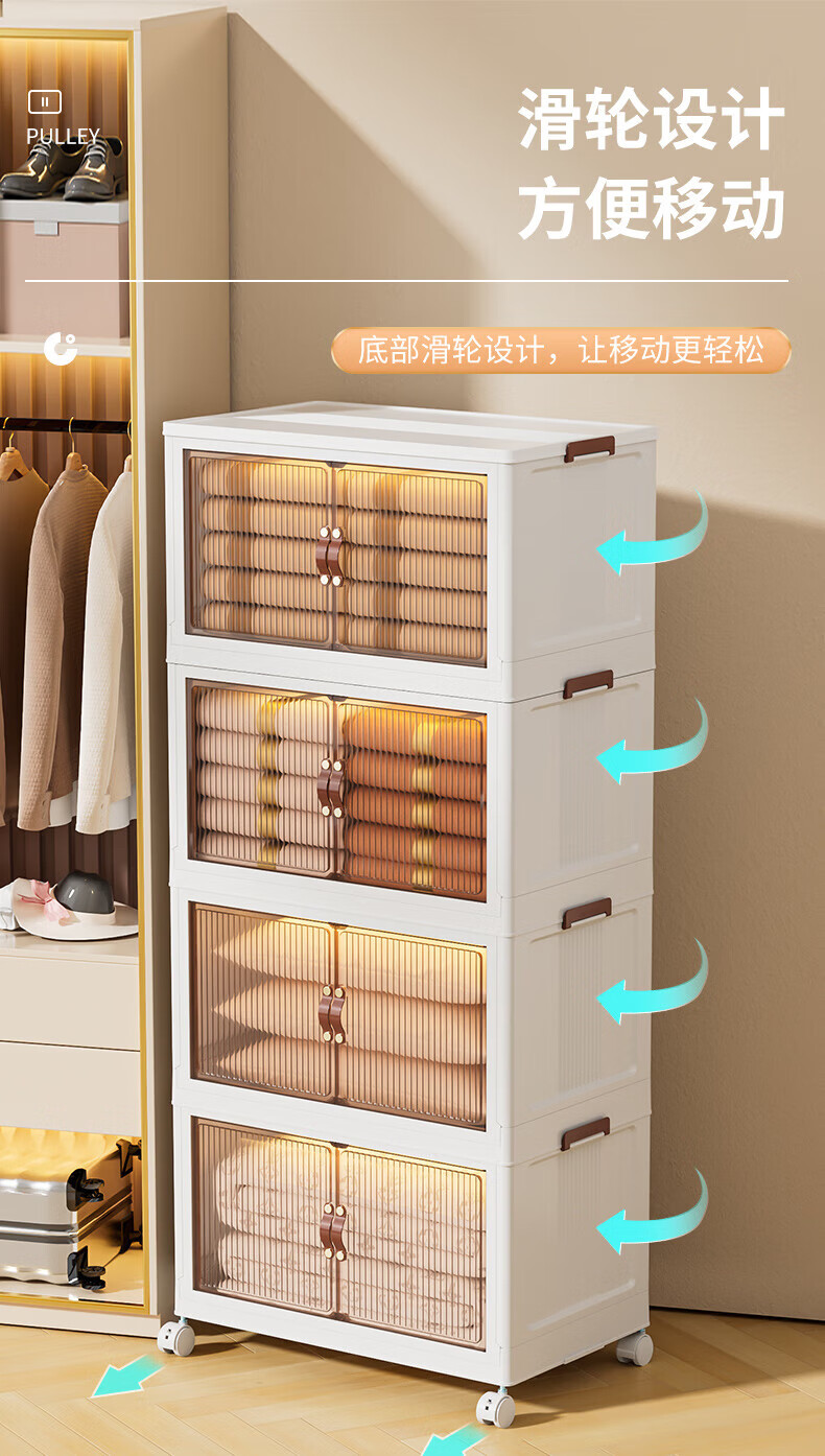 JEKO&JEKO双开门收纳柜儿童衣柜宝宝零食玩具储物柜整理塑料折叠书箱书柜 面宽70CM【免安装/可折叠】 五层带万向轮