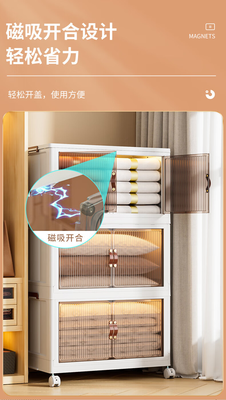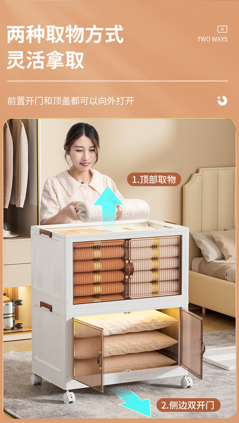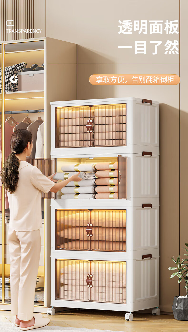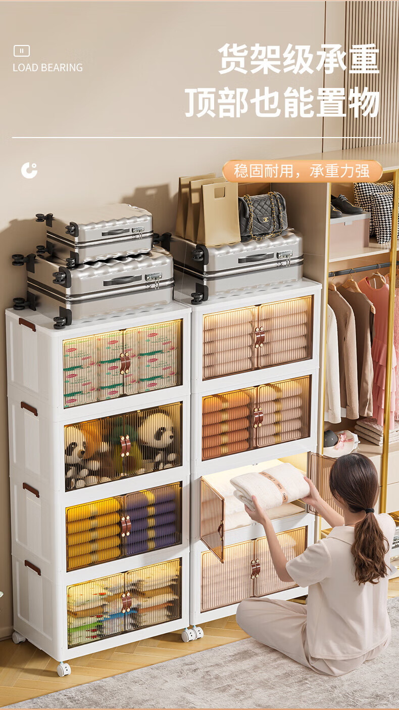 JEKO&JEKO双开门收纳柜儿童衣柜宝宝零食玩具储物柜整理塑料折叠书箱书柜 面宽70CM【免安装/可折叠】 五层带万向轮