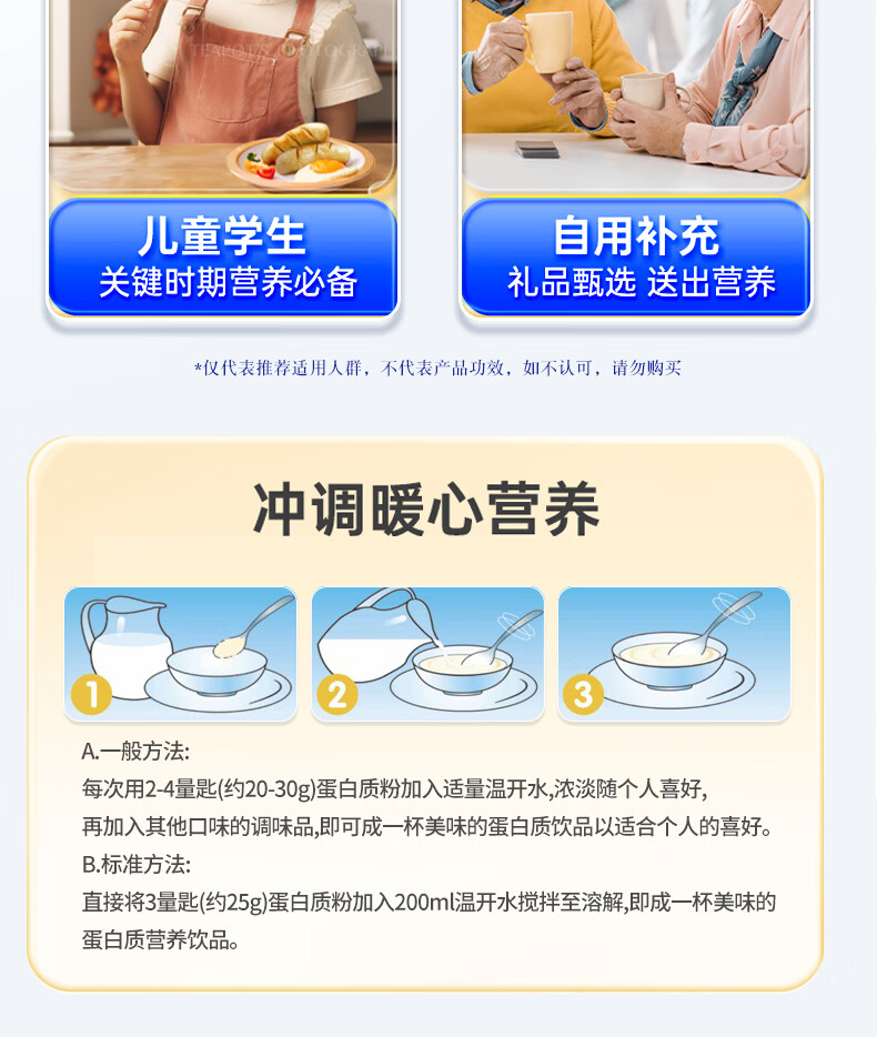 康恩贝 蛋白粉 有助于增强免疫力 蛋白质粉 成年中老年男女营养品 【礼袋装80%含量】蛋白粉 400g*2罐