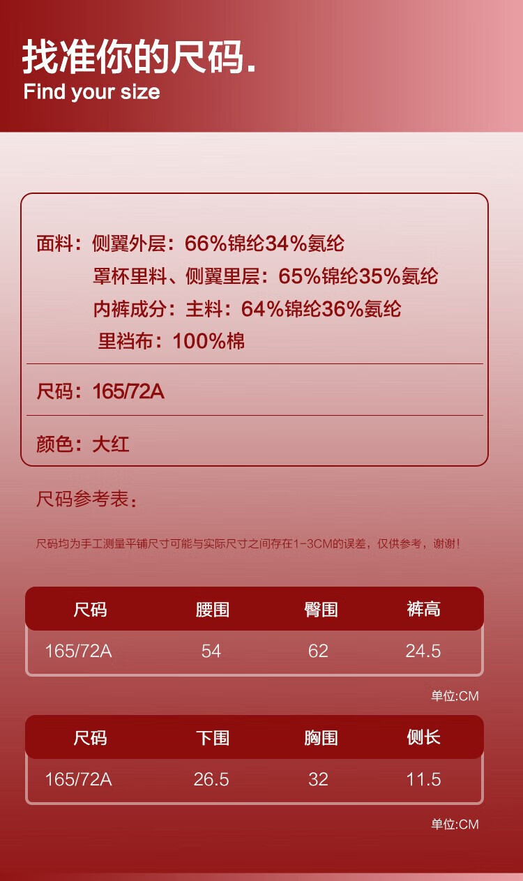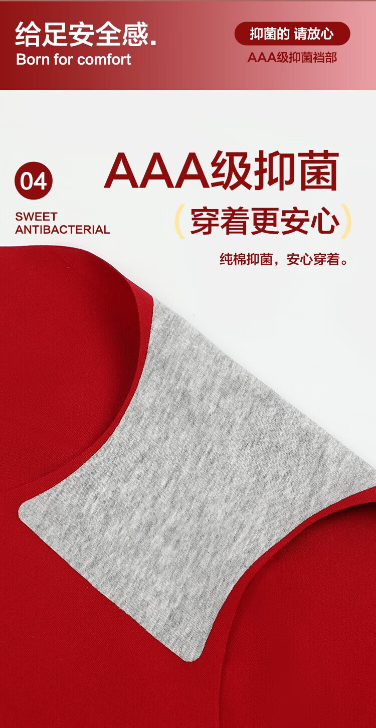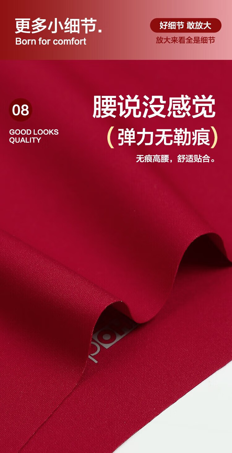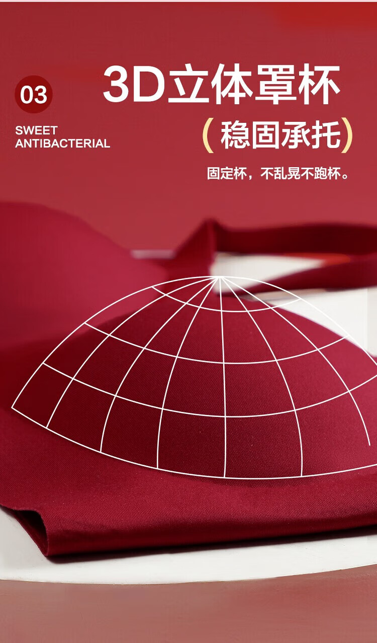 红豆居家大红色女士无痕内衣本命年无钢圈结婚礼物新娘内裤文胸套装 红色 均码 75B