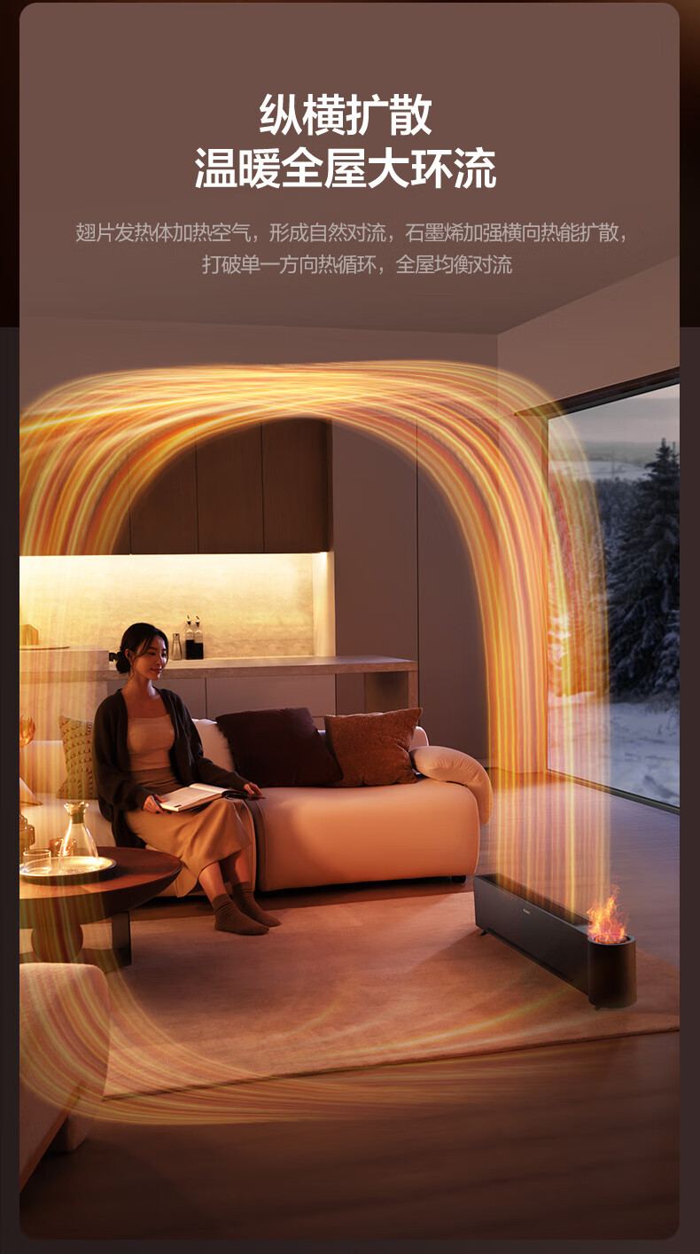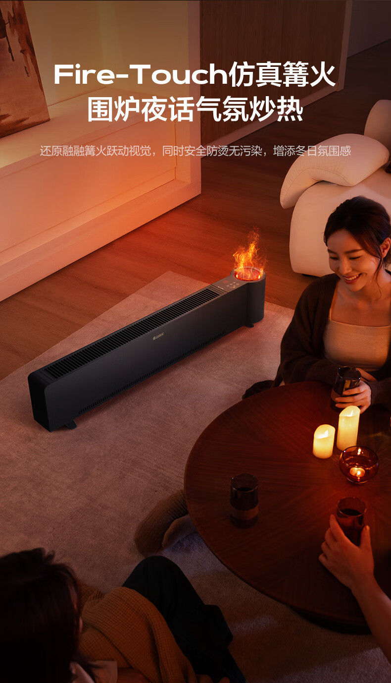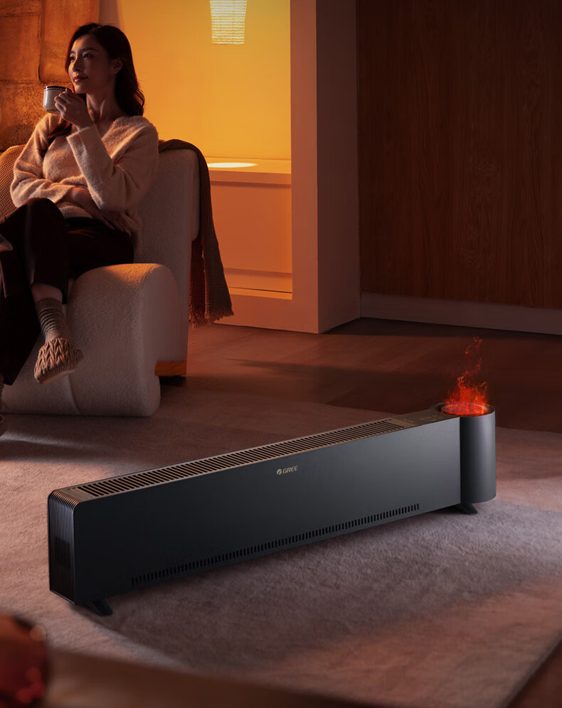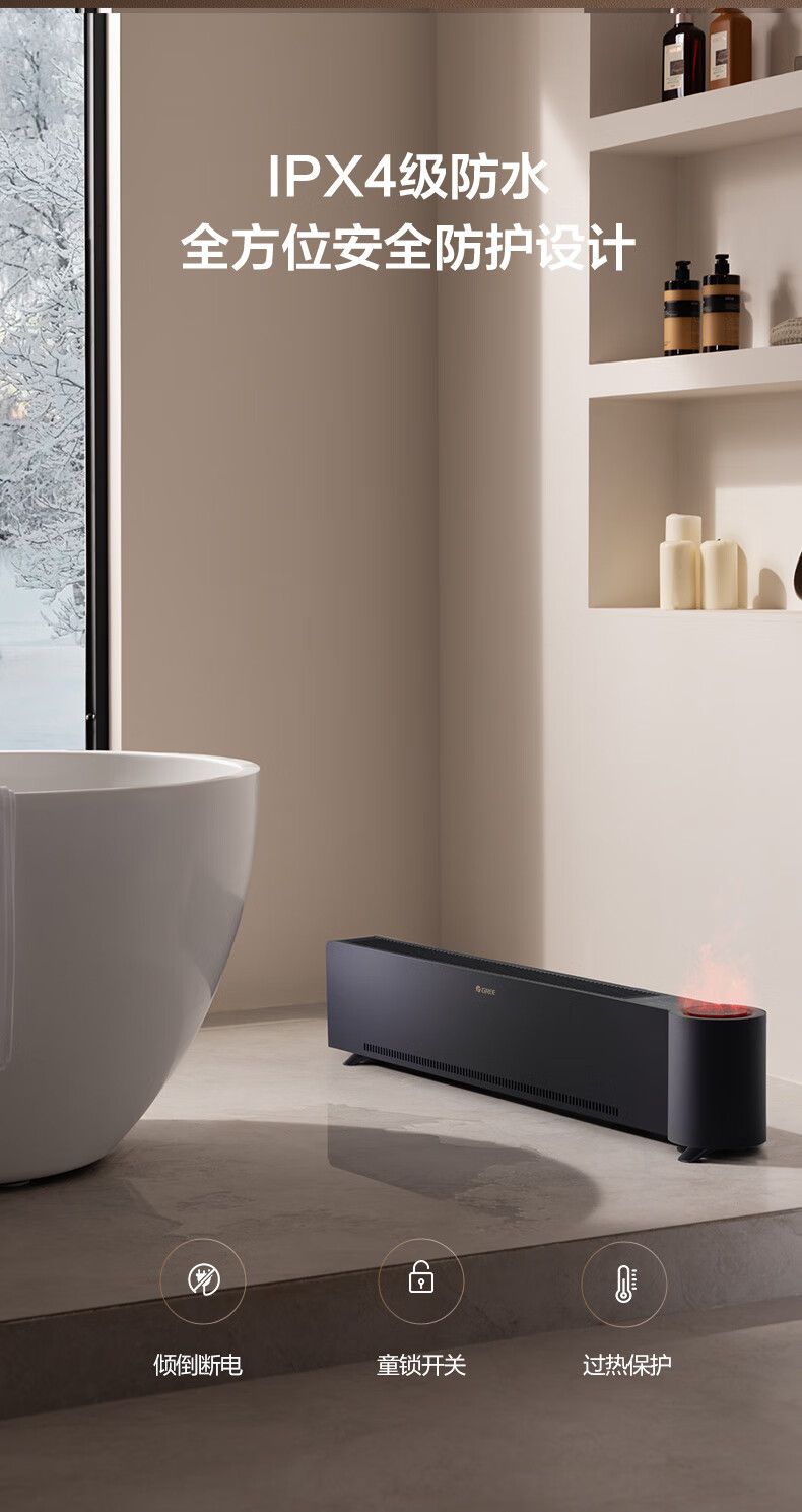 格力(GREE)石墨烯踢脚线取暖器仿真火焰除菌家用电暖器雾化加湿电暖气片浴室IPX4防水客厅卧室遥控移动地暖 NJH-S8022B-雾化加湿石墨烯速热火焰款