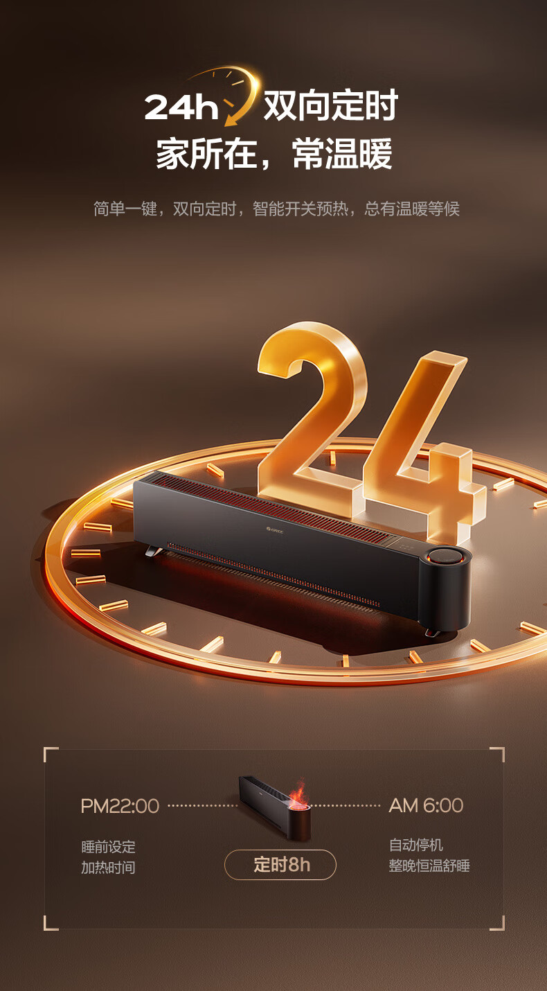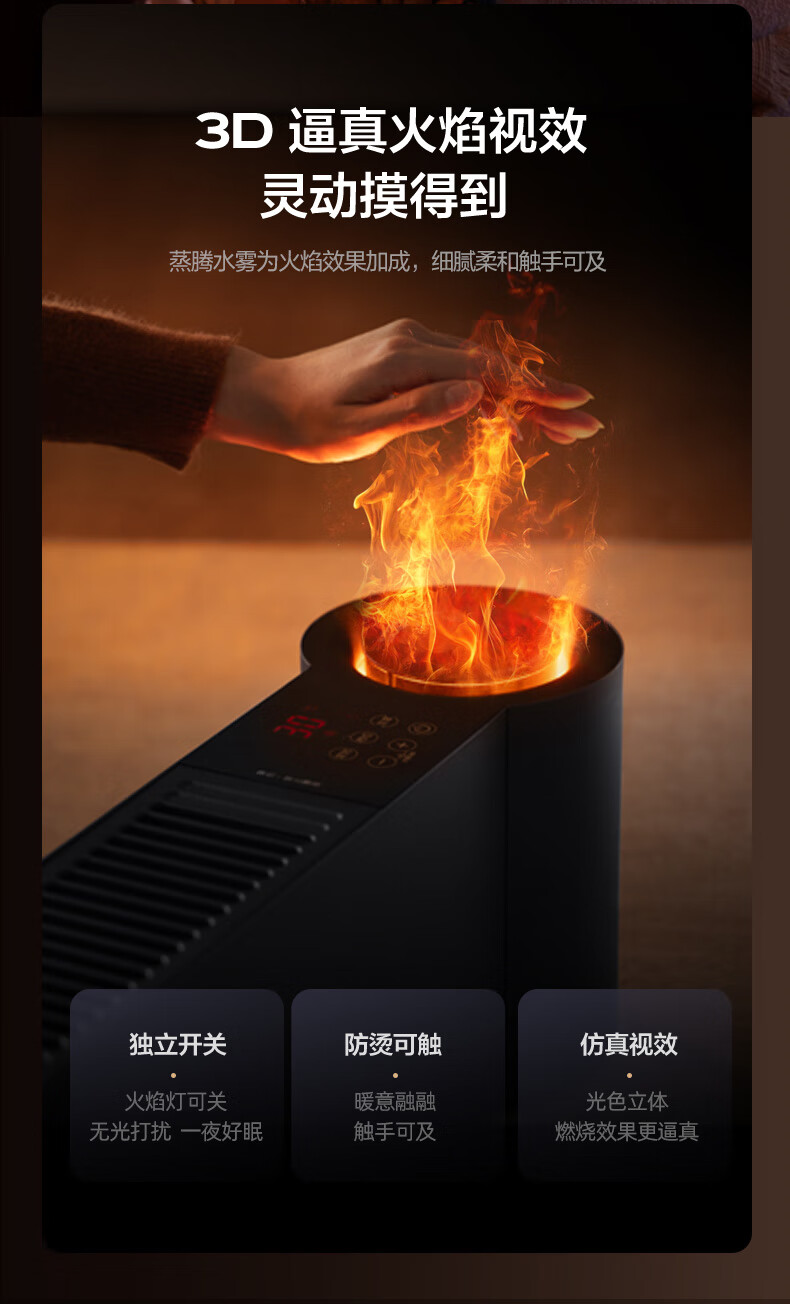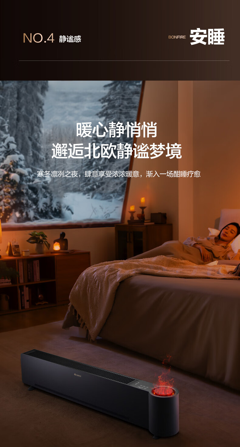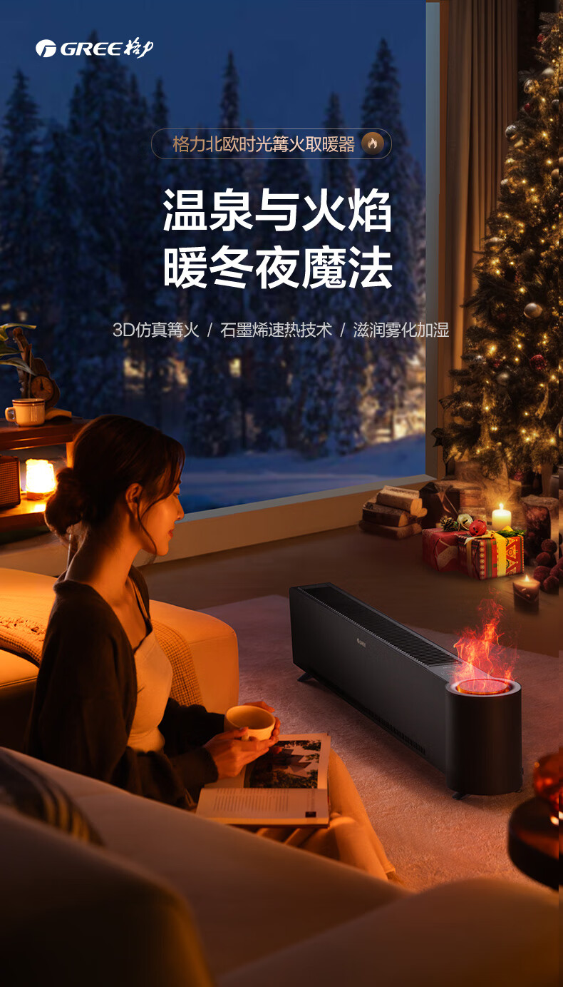 格力(GREE)石墨烯踢脚线取暖器仿真火焰除菌家用电暖器雾化加湿电暖气片浴室IPX4防水客厅卧室遥控移动地暖 NJH-S8022B-雾化加湿石墨烯速热火焰款