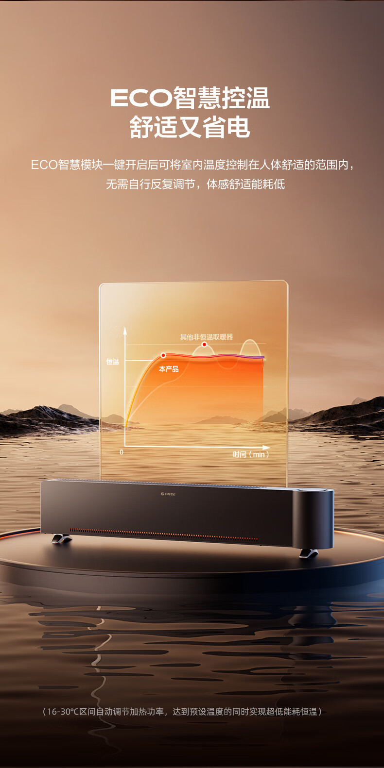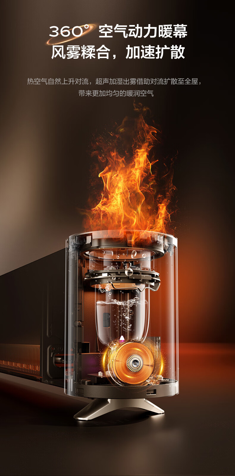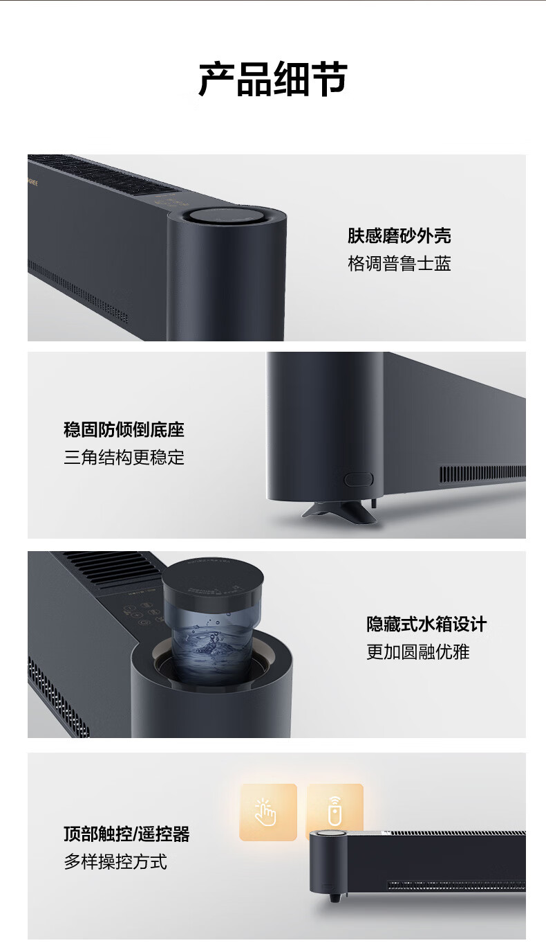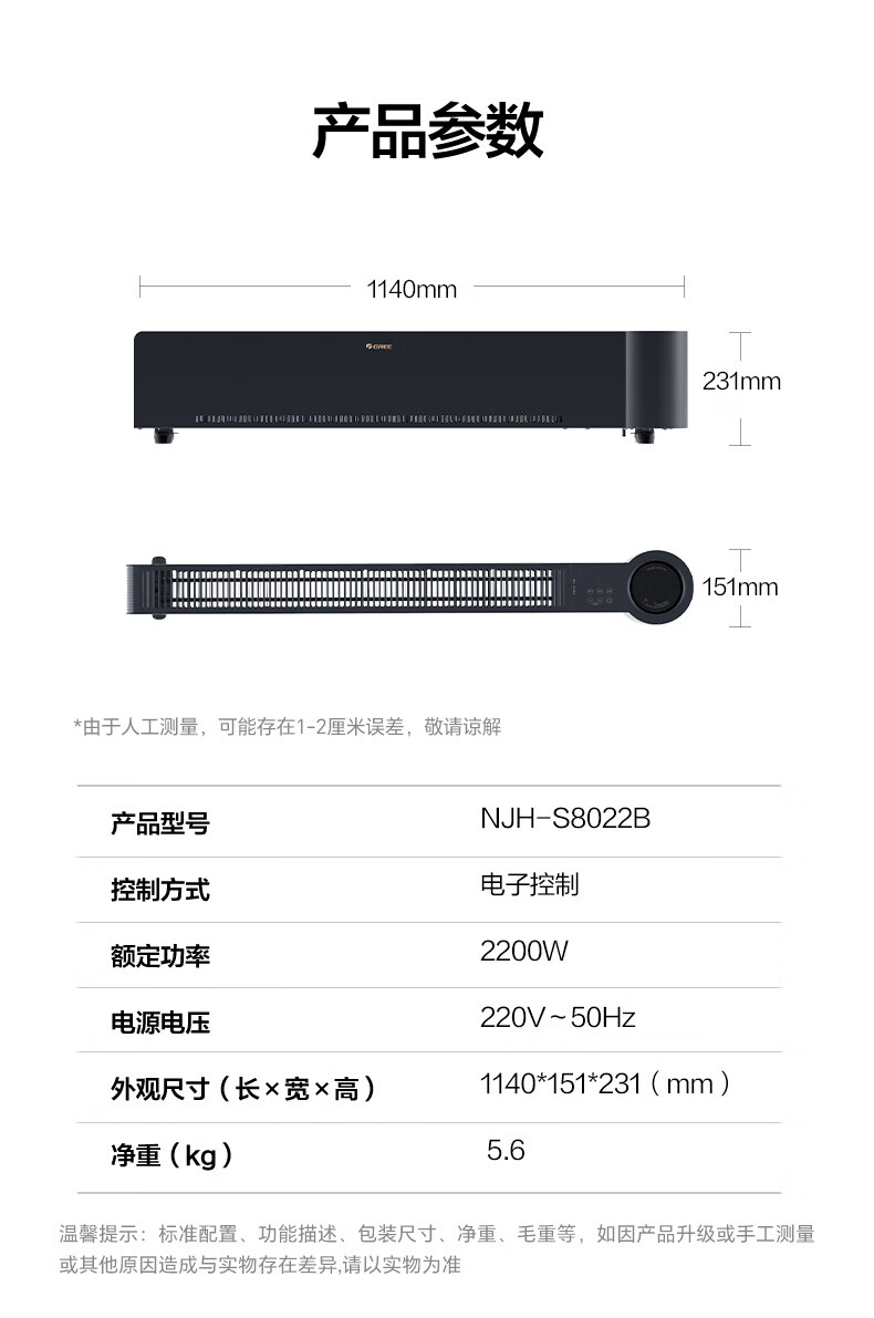 格力(GREE)石墨烯踢脚线取暖器仿真火焰除菌家用电暖器雾化加湿电暖气片浴室IPX4防水客厅卧室遥控移动地暖 NJH-S8022B-雾化加湿石墨烯速热火焰款