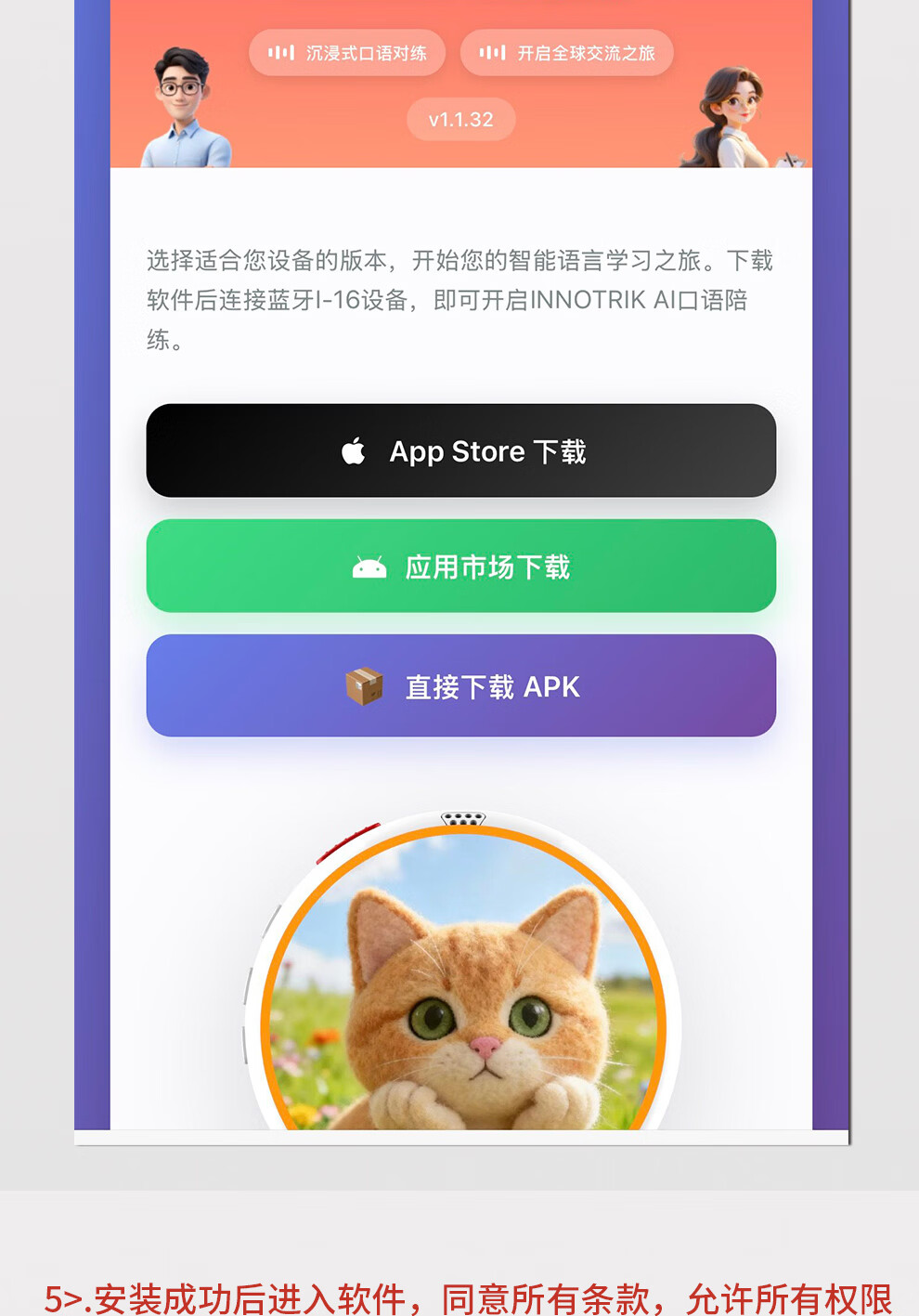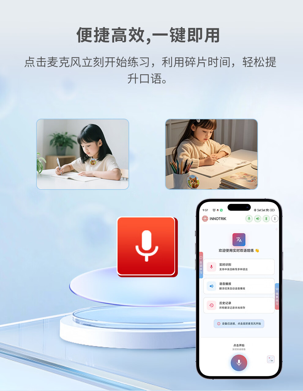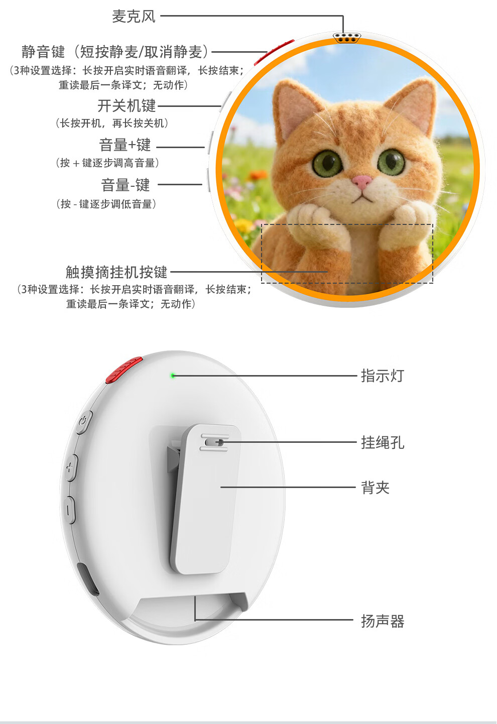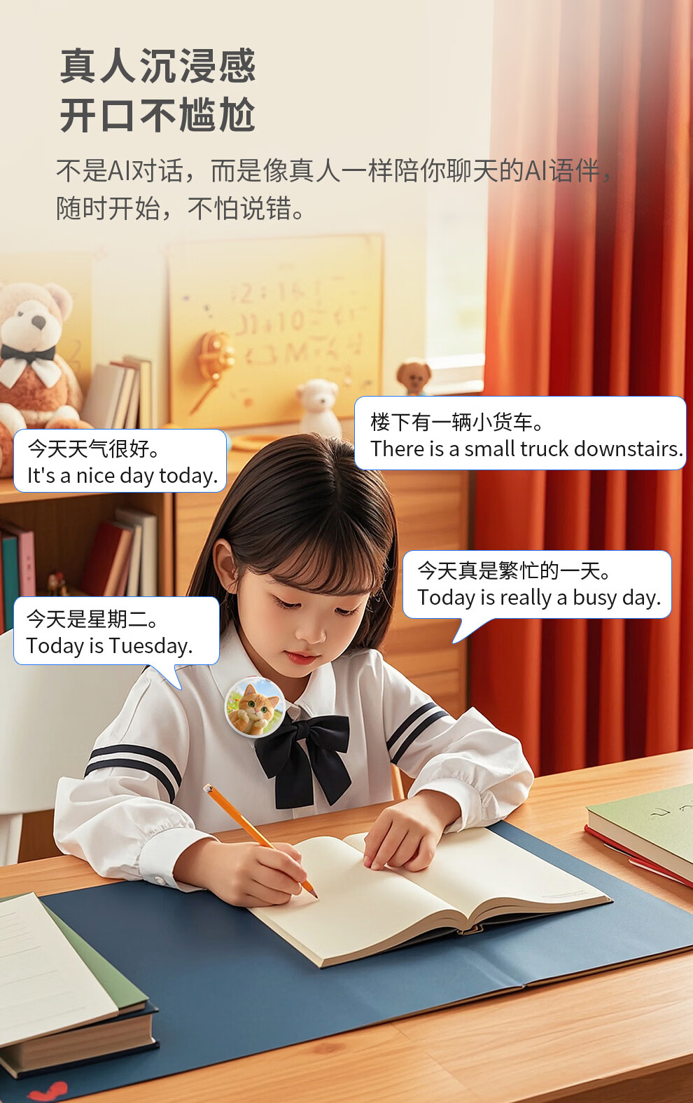 音络(INNOTRIK)I-16 AI英语口语陪练 一对一沉浸式英语口语练习 多种场景对练听读神器 白色猫咪