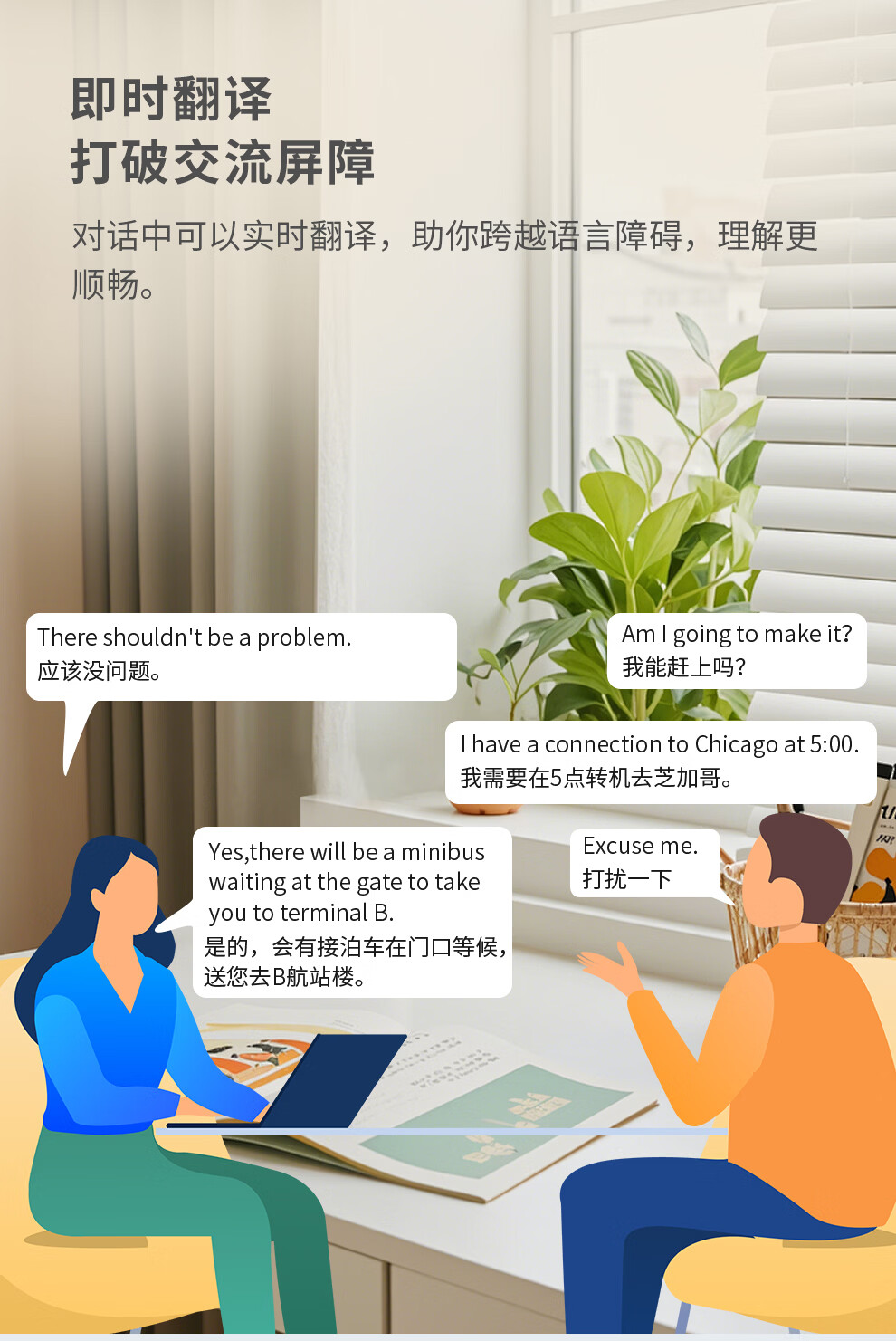TRANSAIGENIE翻译耳机AI智能耳机实时同声传译电话视频展会洽谈外贸商务翻译神器挂耳式出国必备 黑色