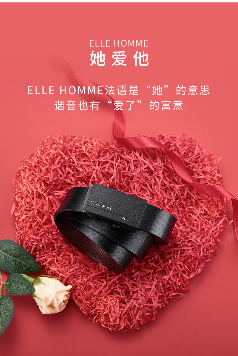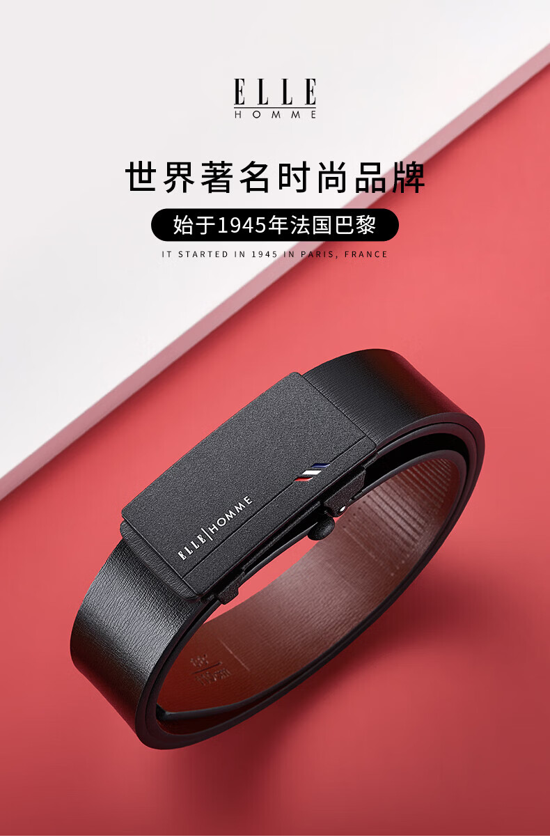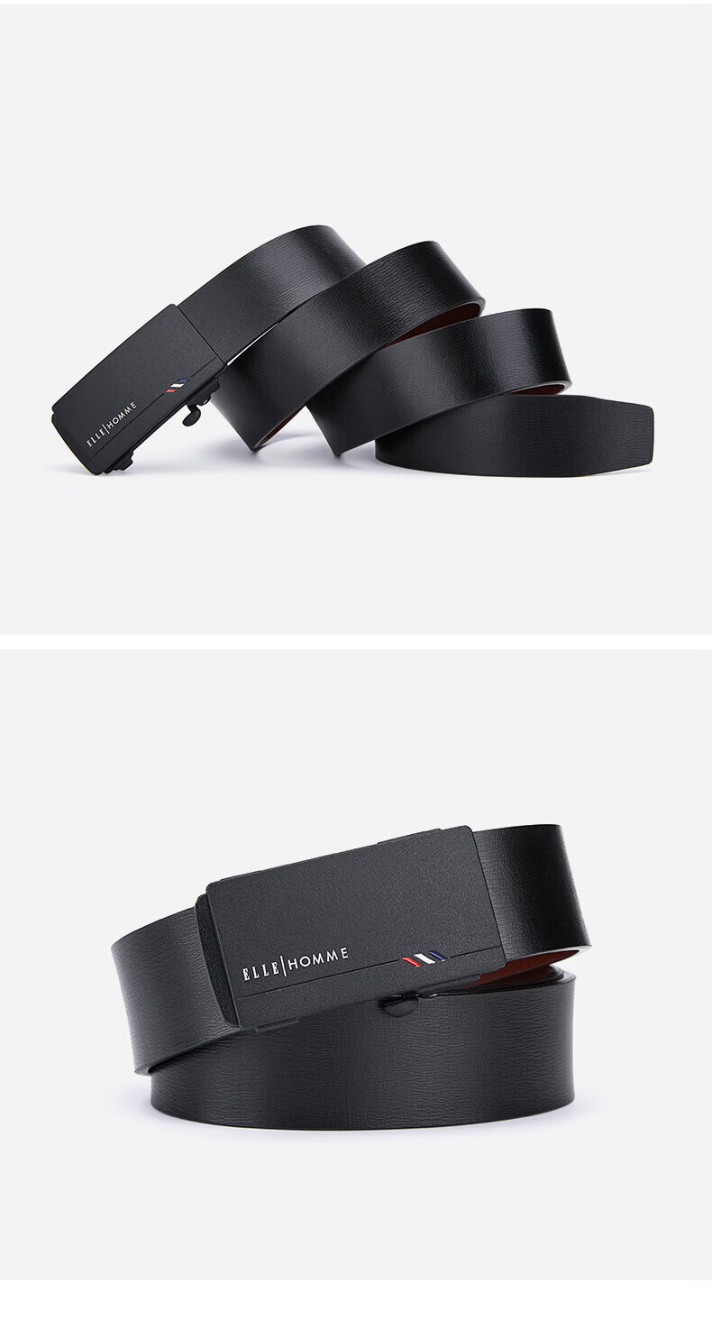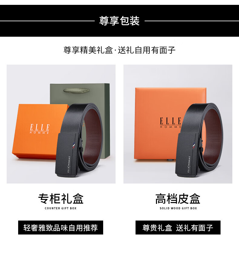 ELLE HOMME法国品牌男士皮带真皮无牙无孔自动扣男士腰带情人节礼物送男友 【专柜礼盒】902047磨砂防指纹 110cm (适用于130-150斤)