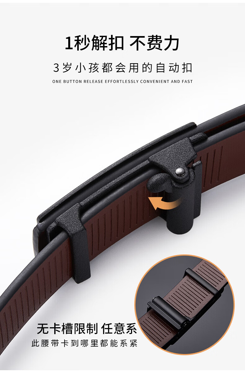 花花公子皮带男真皮自动扣腰带头层纯牛皮裤腰带 生日礼物送父亲送老公 头层牛皮 高档礼盒