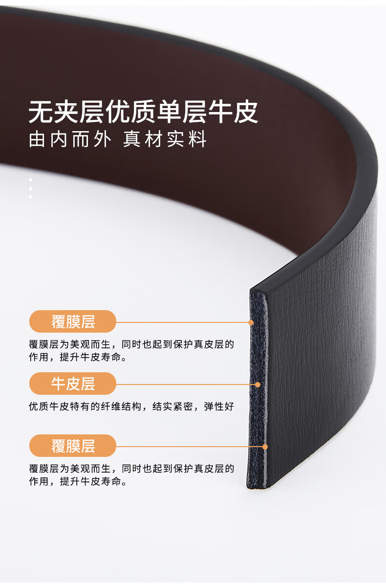 花花公子皮带男真皮不带头自动扣带条 头层牛皮无头带身 头层牛皮黑色带身 3.5CM