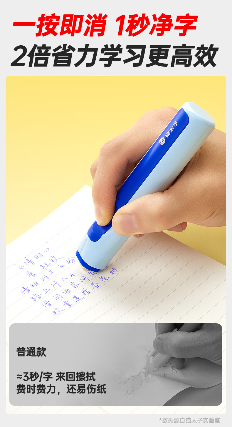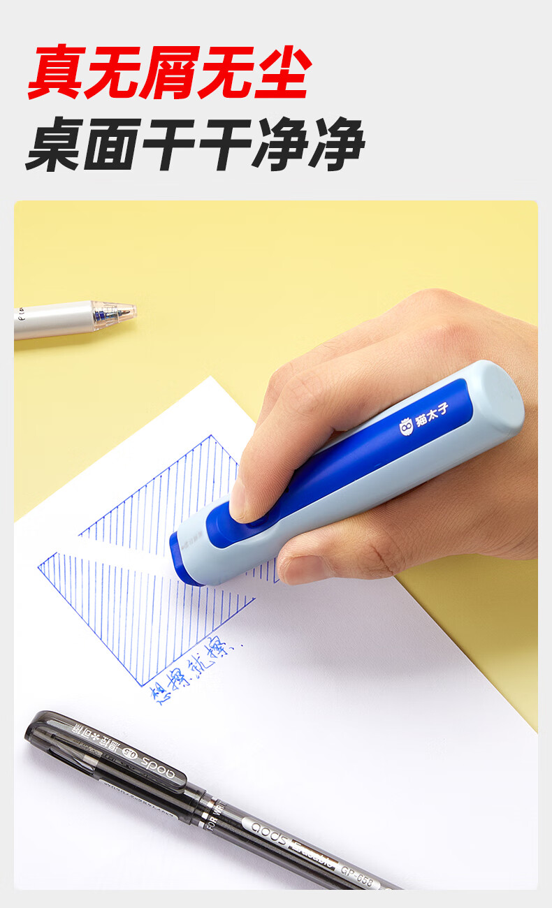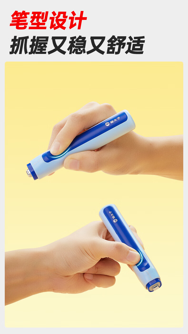 猫太子电动橡皮擦小学生专用自动橡皮创意卡通可爱儿童干净无屑不留痕学生象像皮安全一年级学习文具用品 冰川蓝