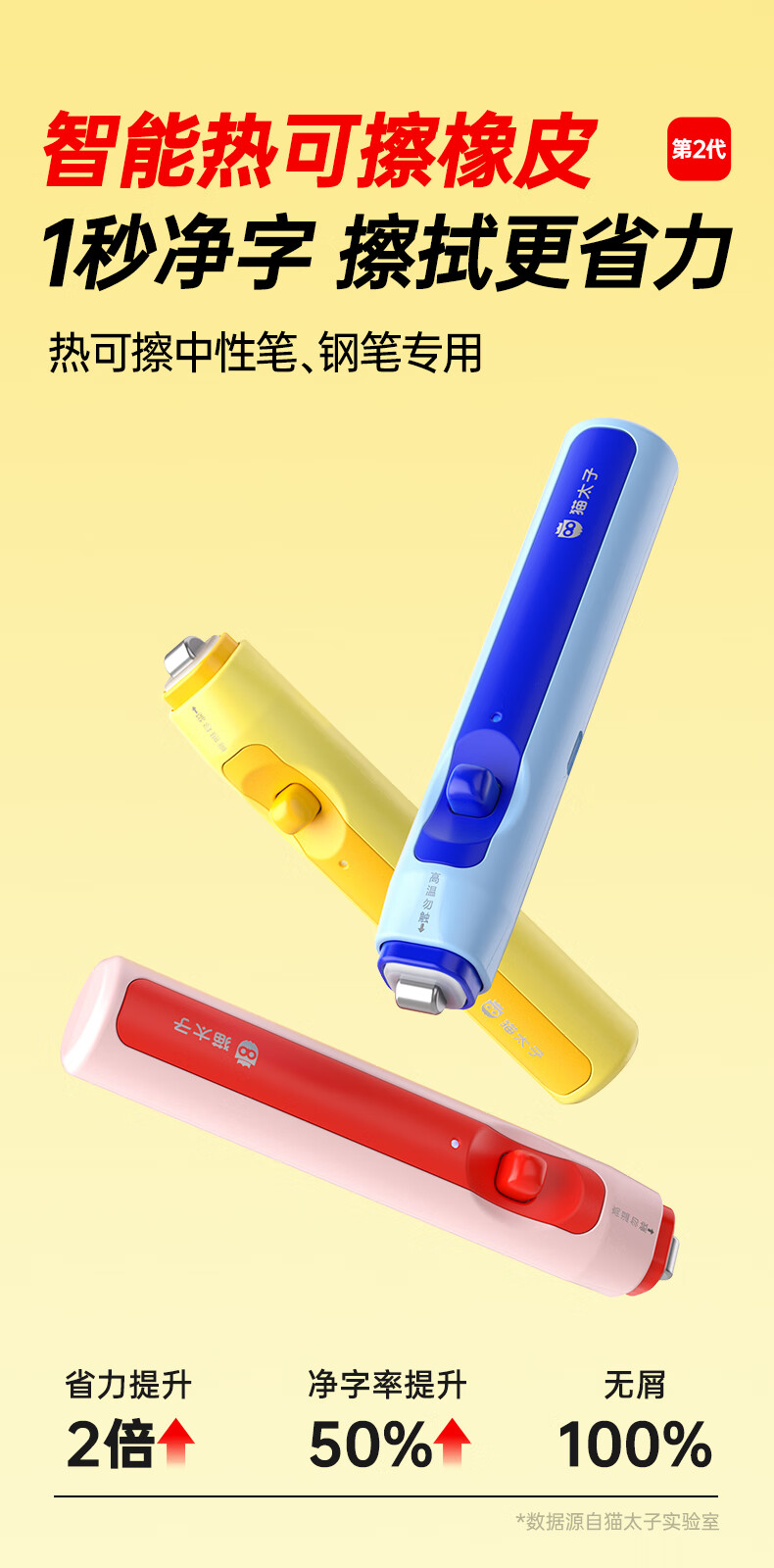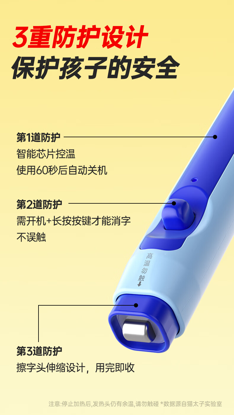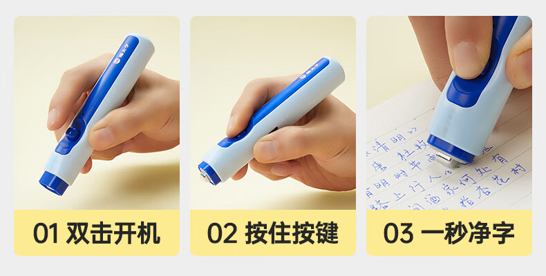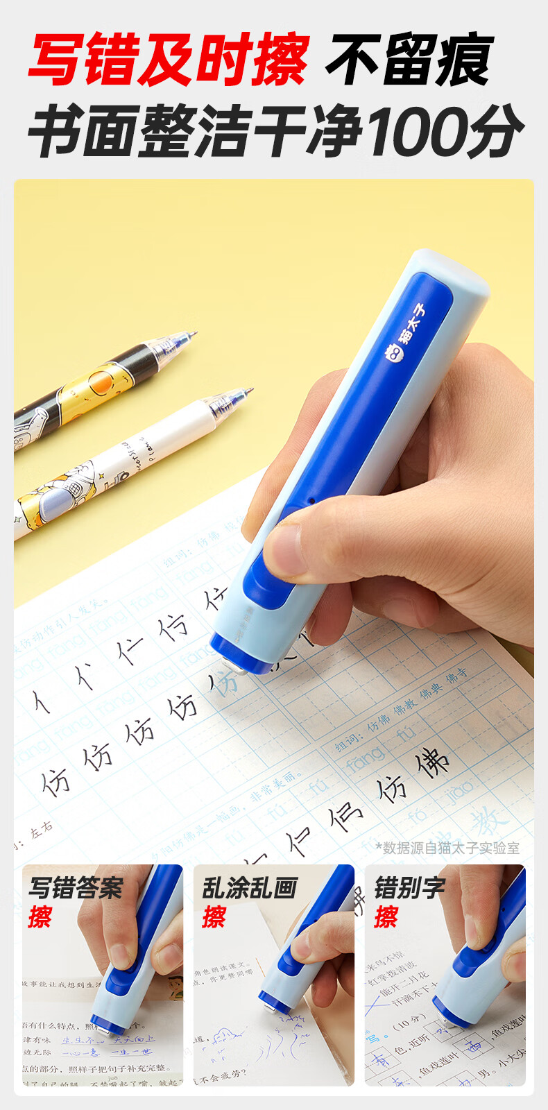 猫太子电动橡皮擦小学生专用自动橡皮创意卡通可爱儿童干净无屑不留痕学生象像皮安全一年级学习文具用品 冰川蓝