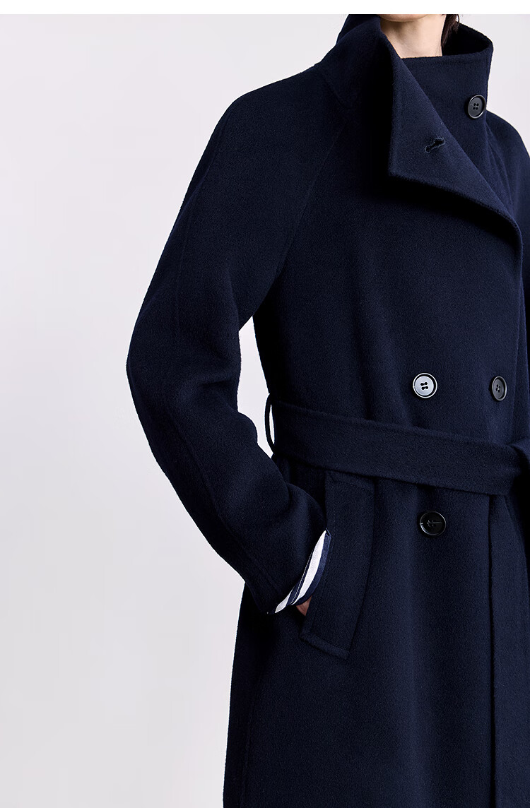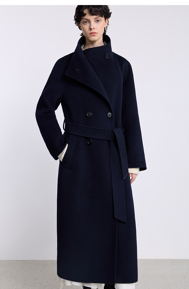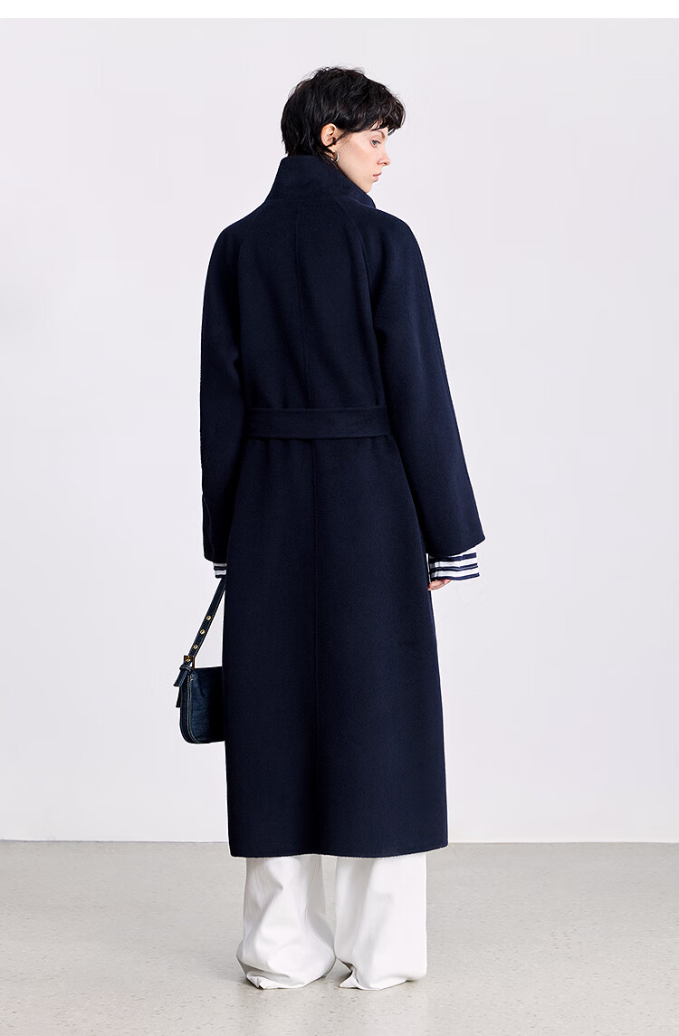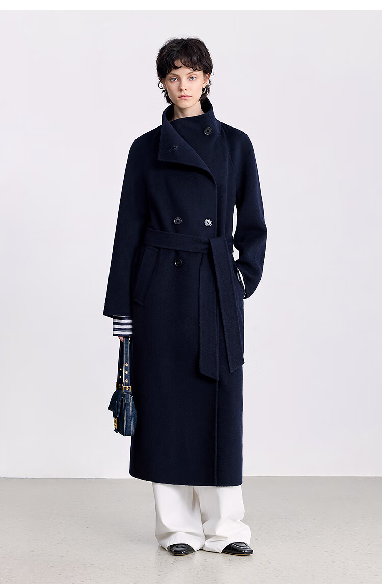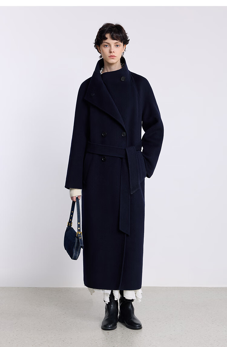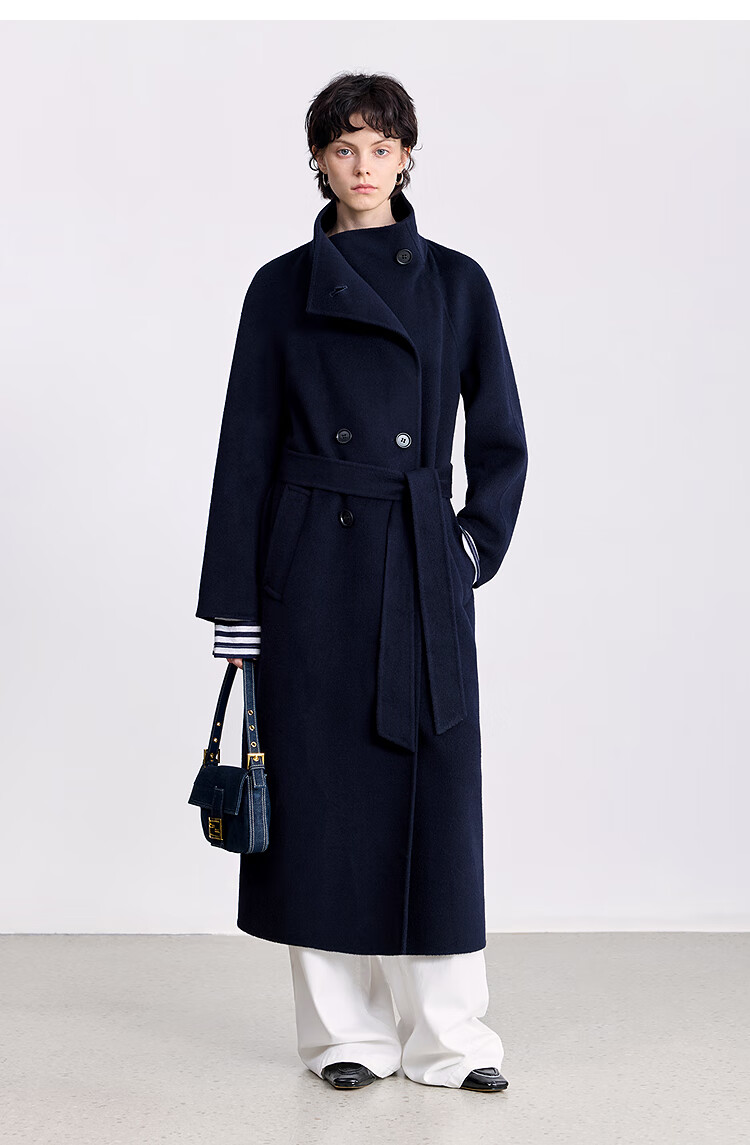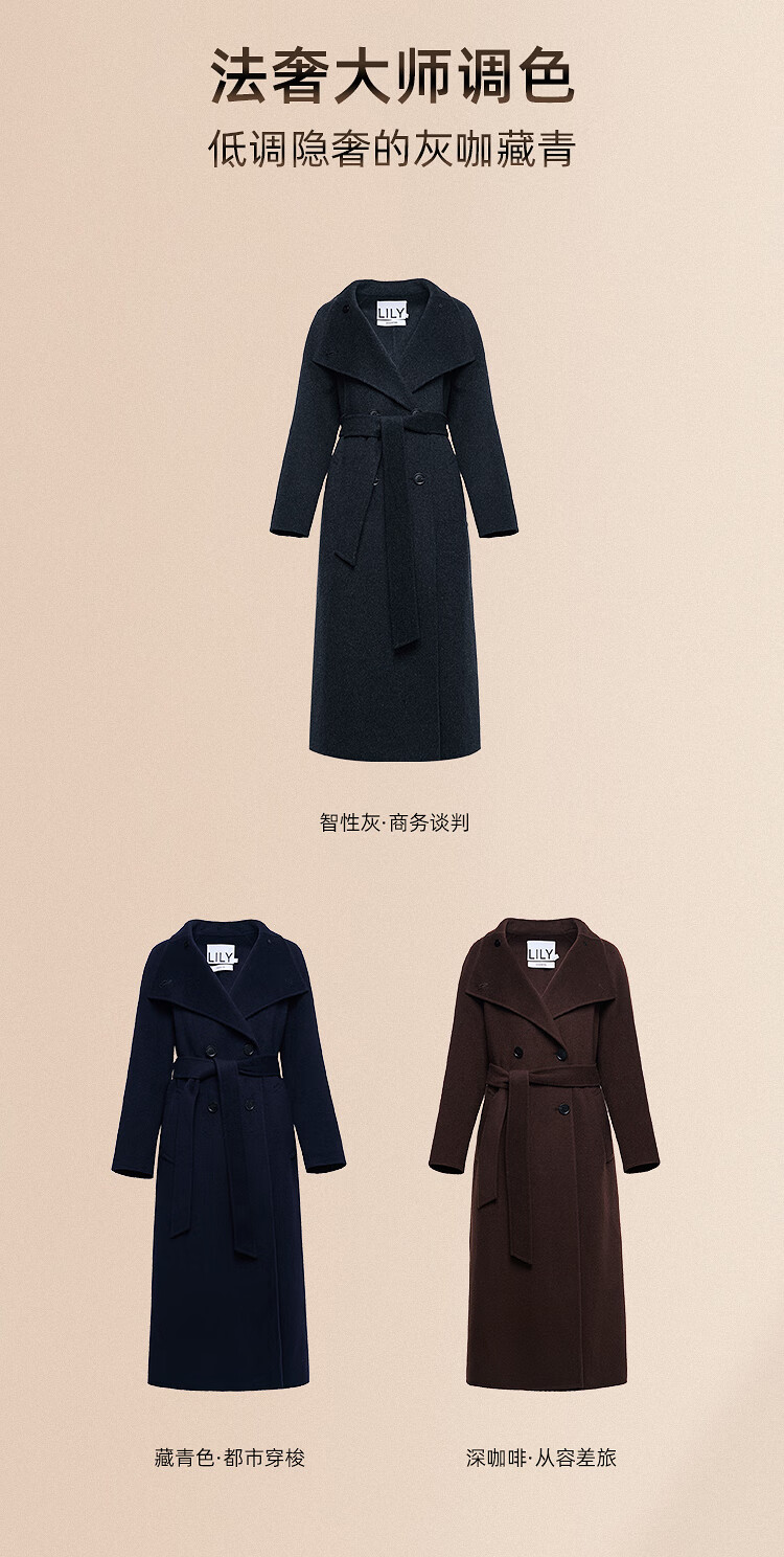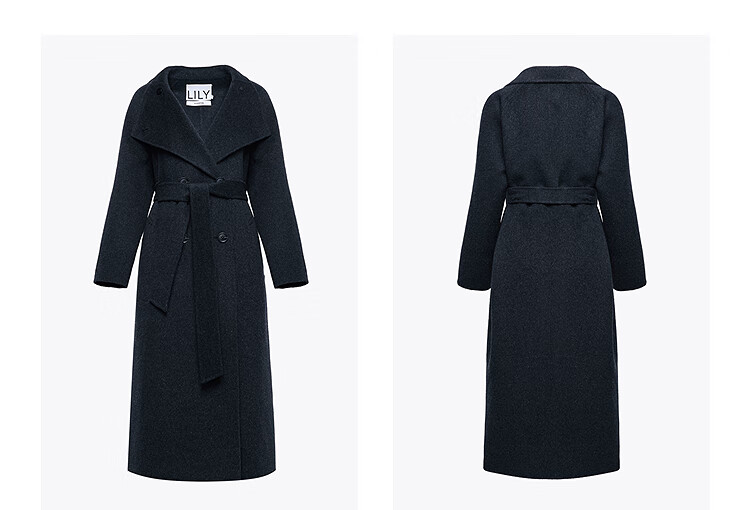 LILY【大师法奢】烟囱领大衣LILY毛呢外套女2025冬季新款双面绵羊毛 411藏青 M