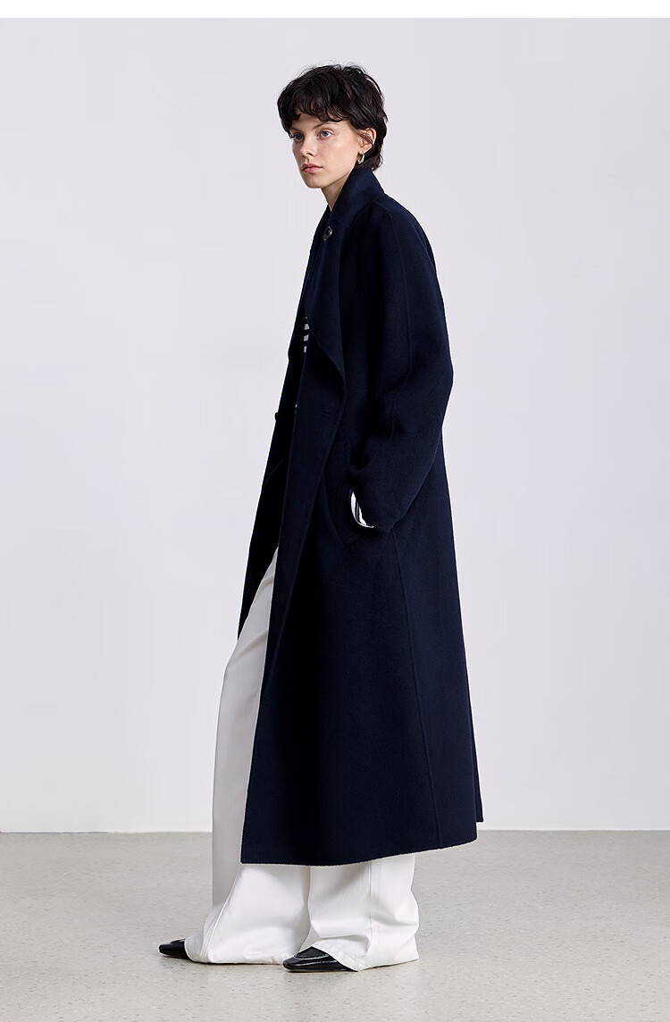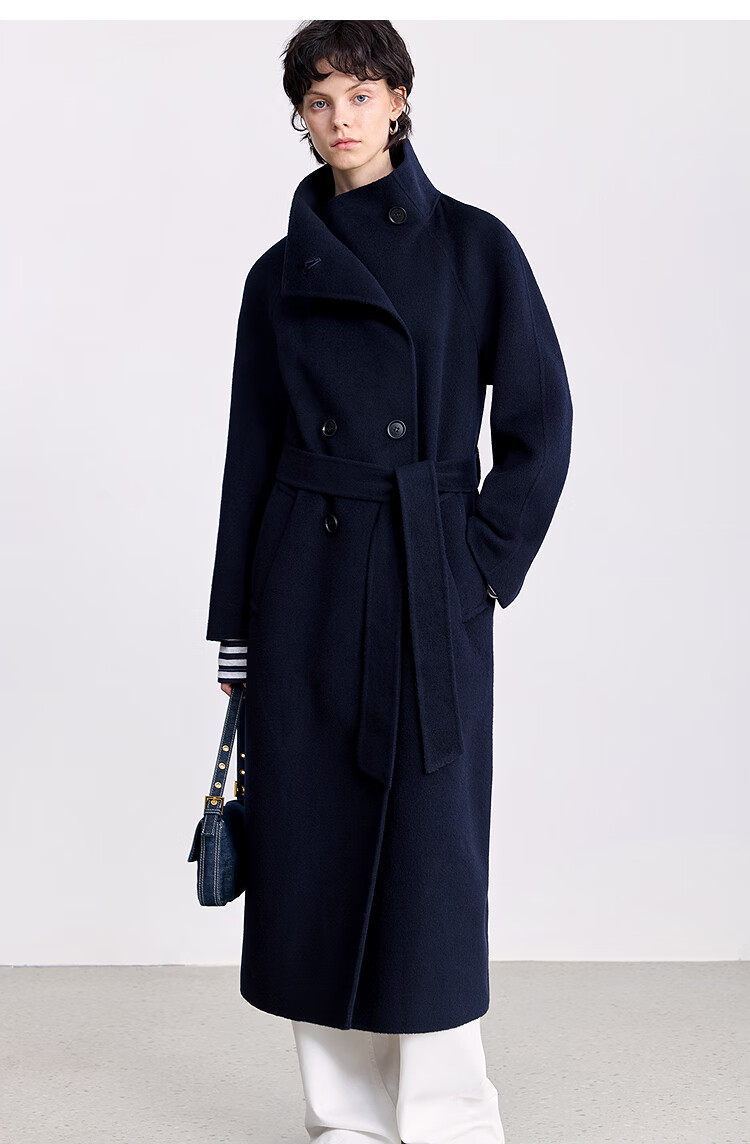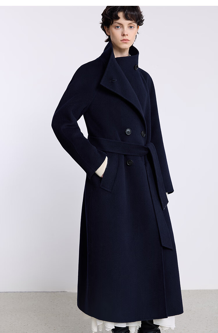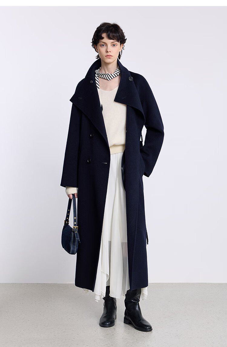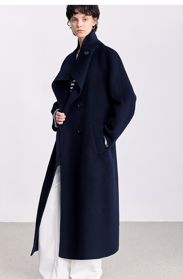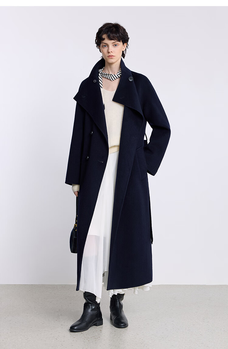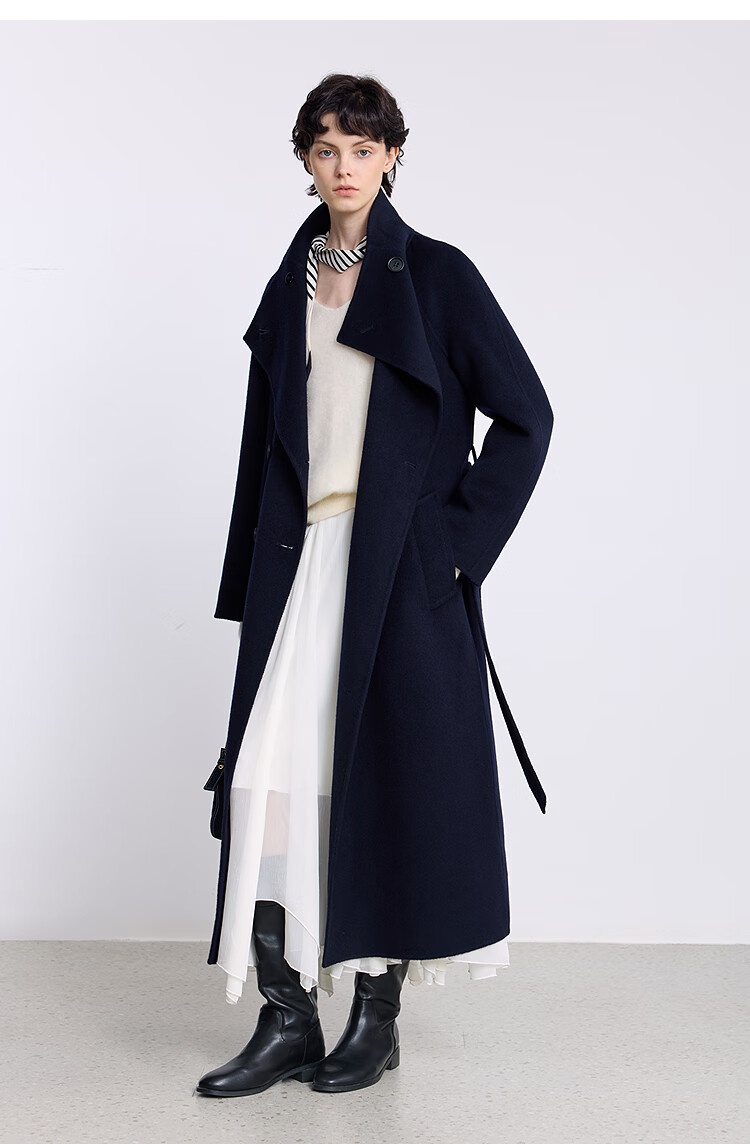 LILY【大师法奢】烟囱领大衣LILY毛呢外套女2025冬季新款双面绵羊毛 411藏青 M