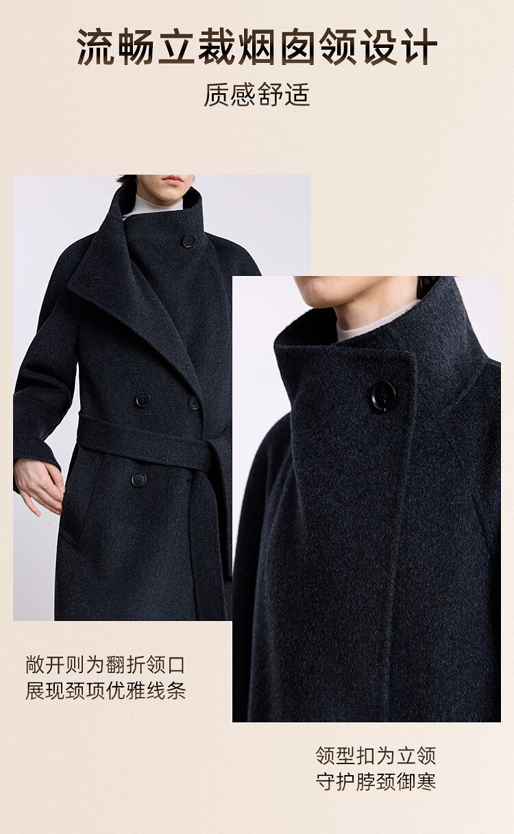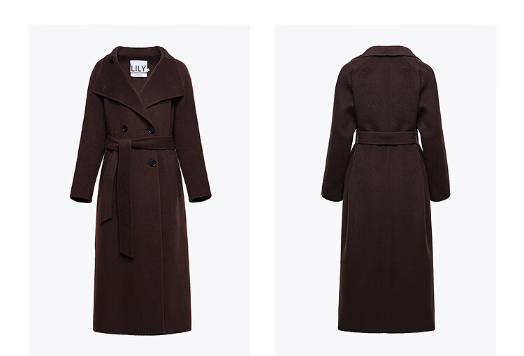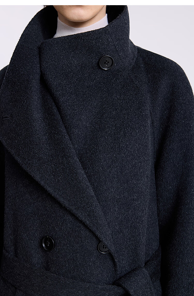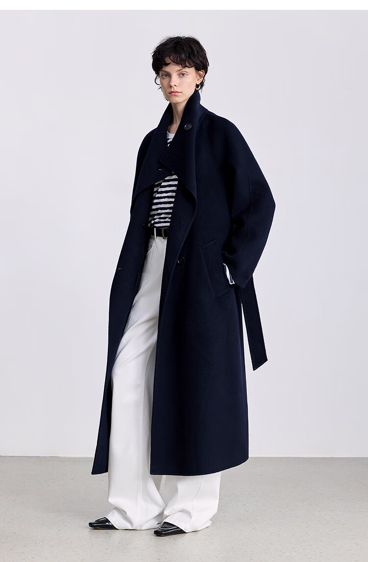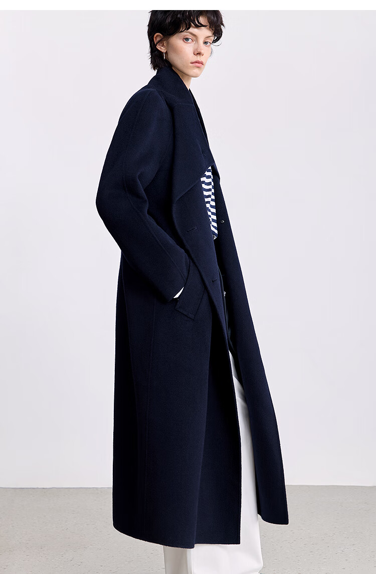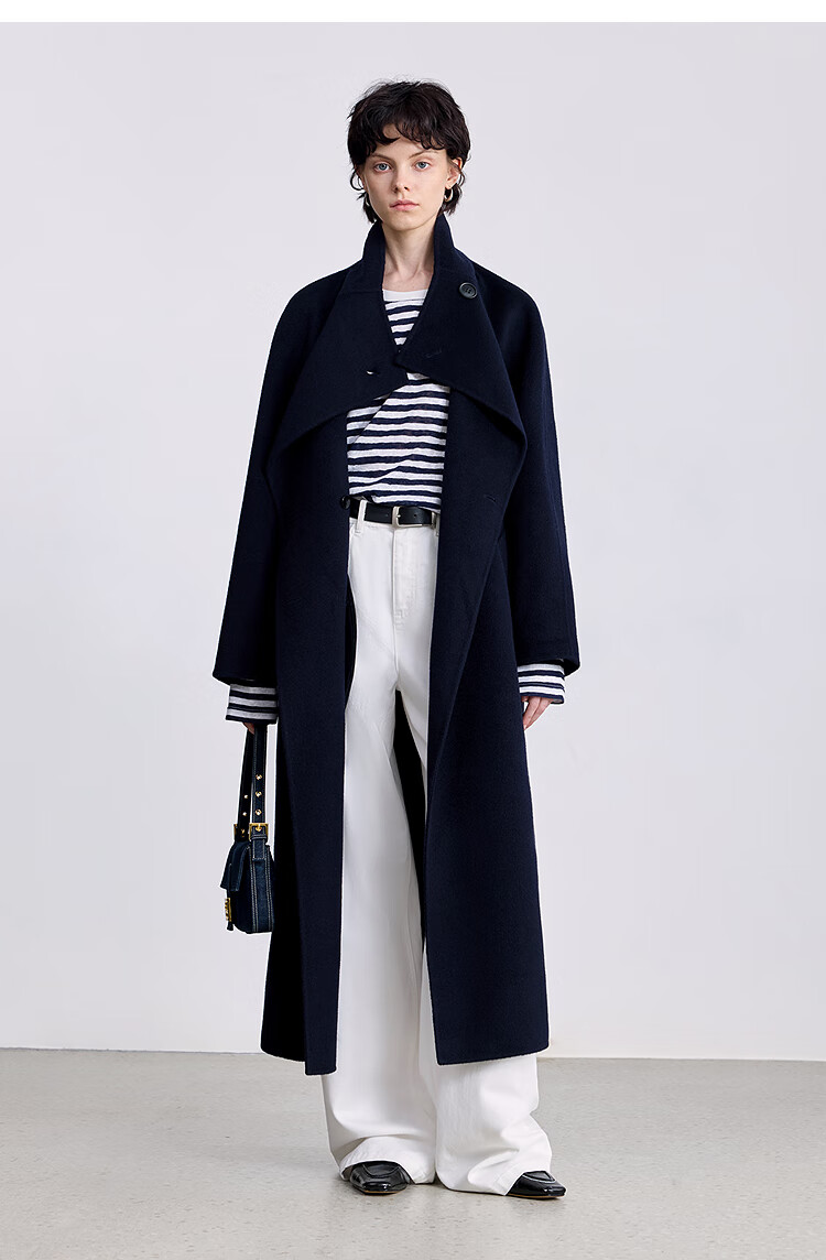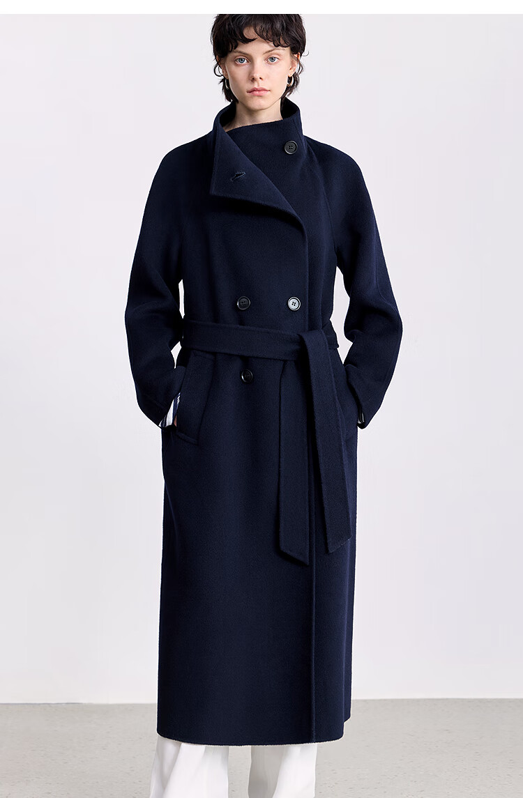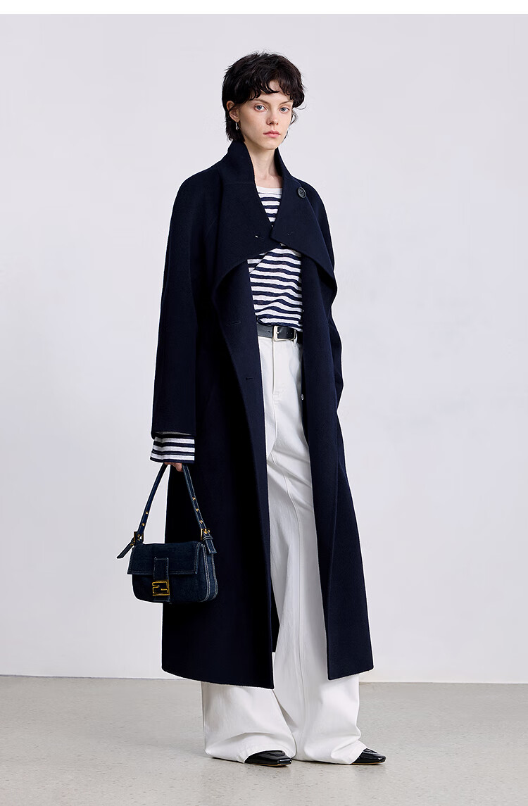LILY【大师法奢】烟囱领大衣LILY毛呢外套女2025冬季新款双面绵羊毛 411藏青 M