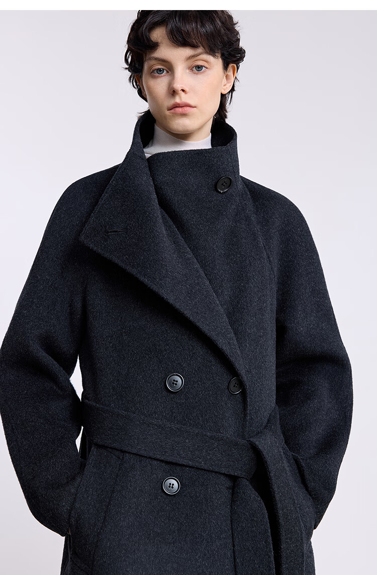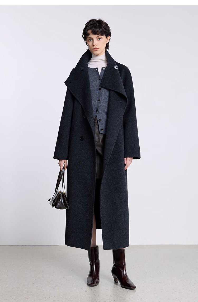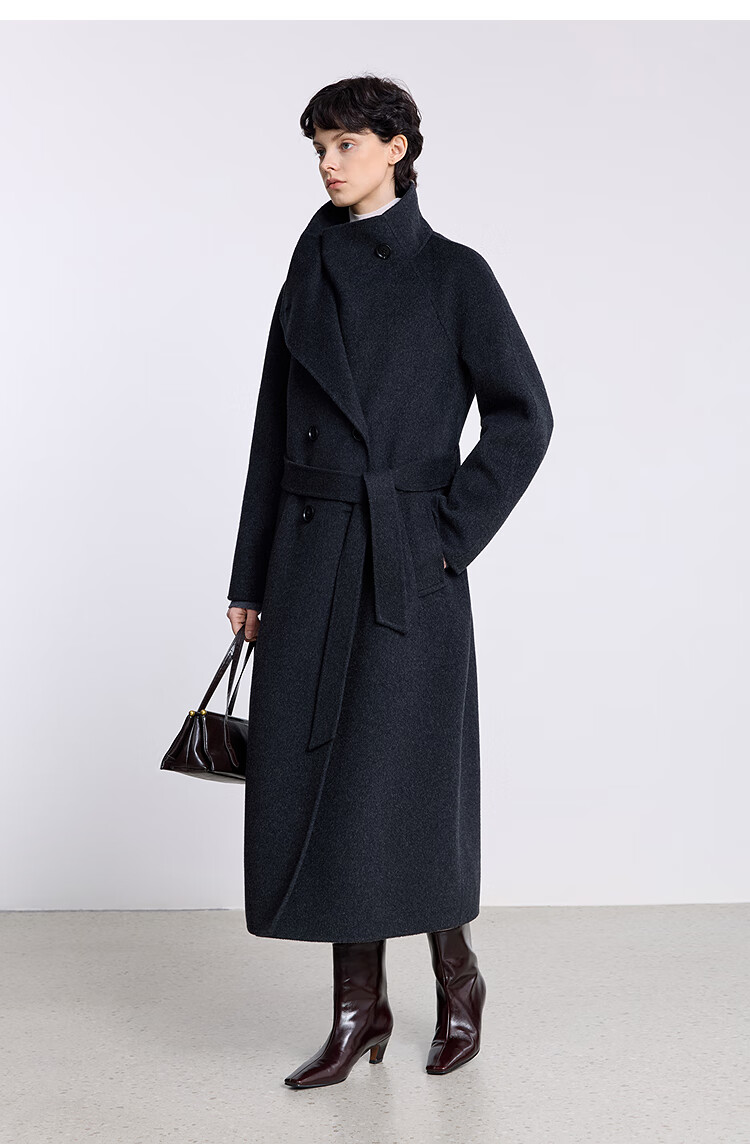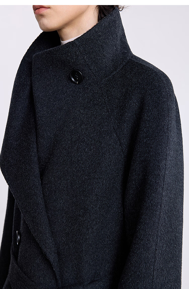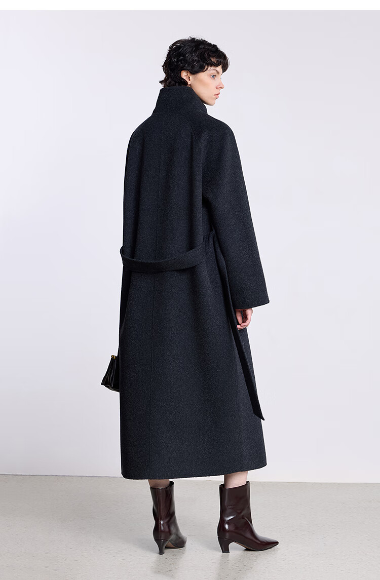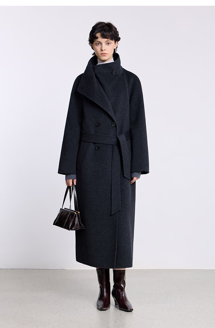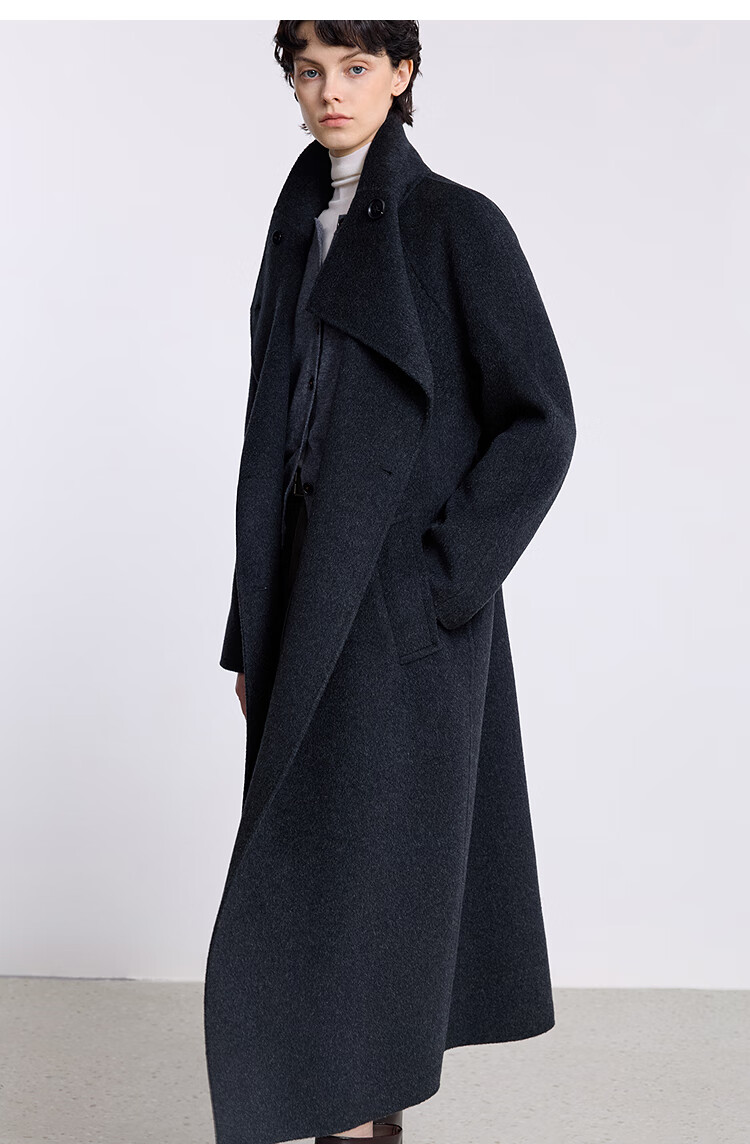 LILY【大师法奢】烟囱领大衣LILY毛呢外套女2025冬季新款双面绵羊毛 411藏青 M