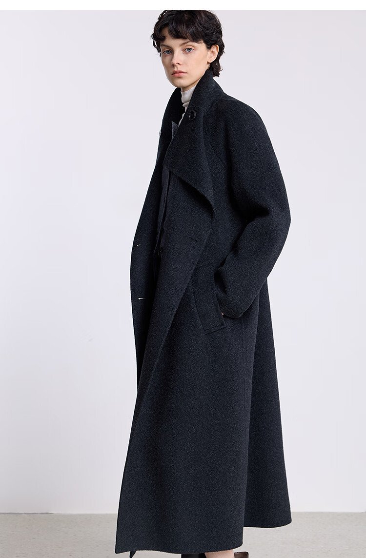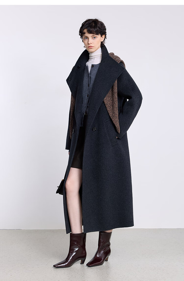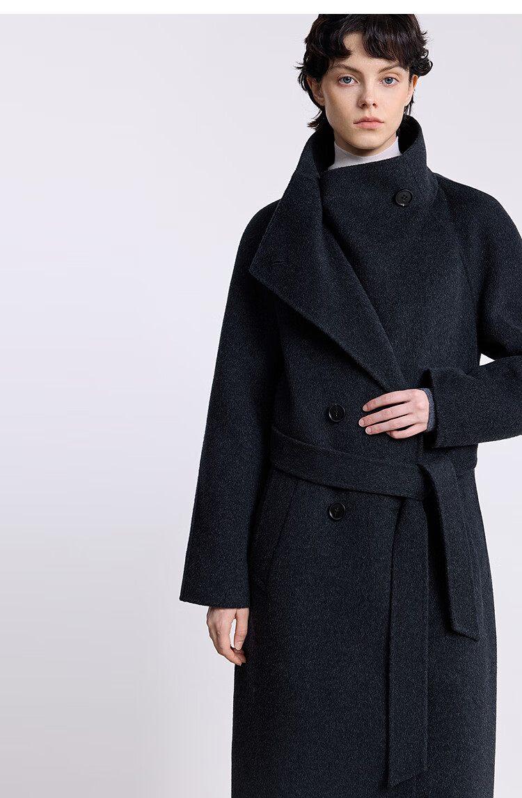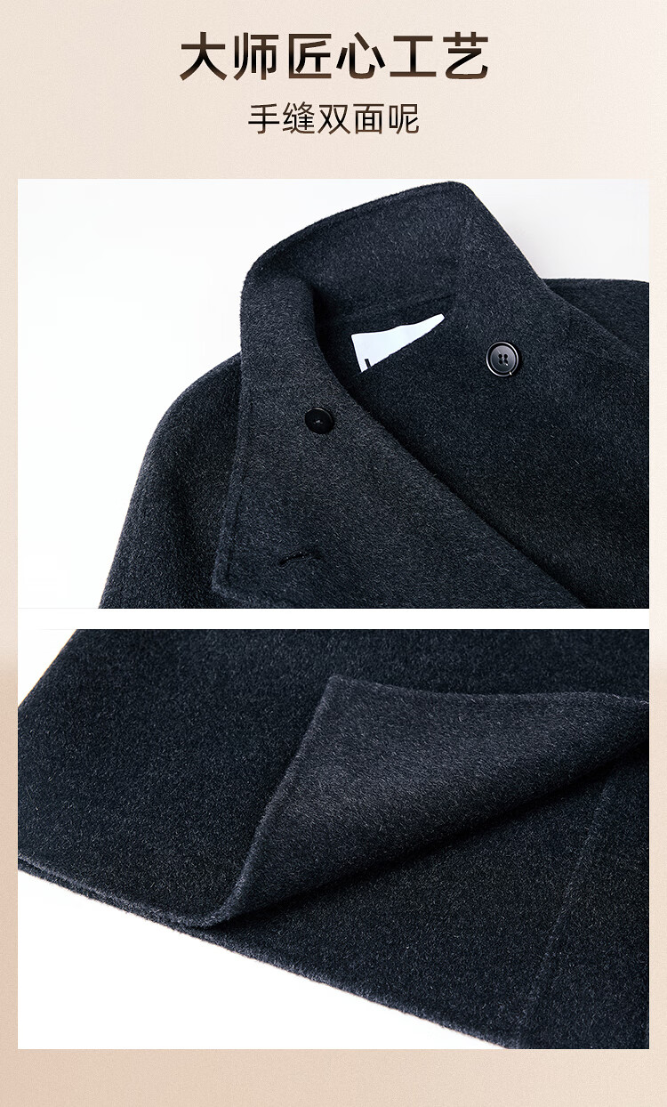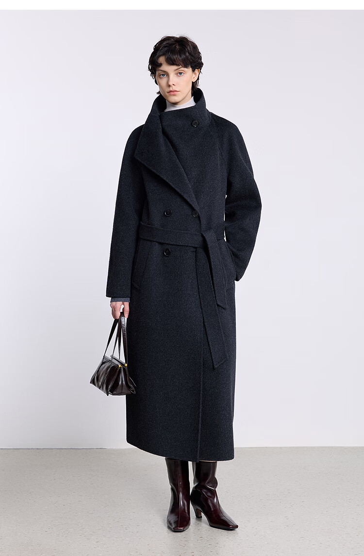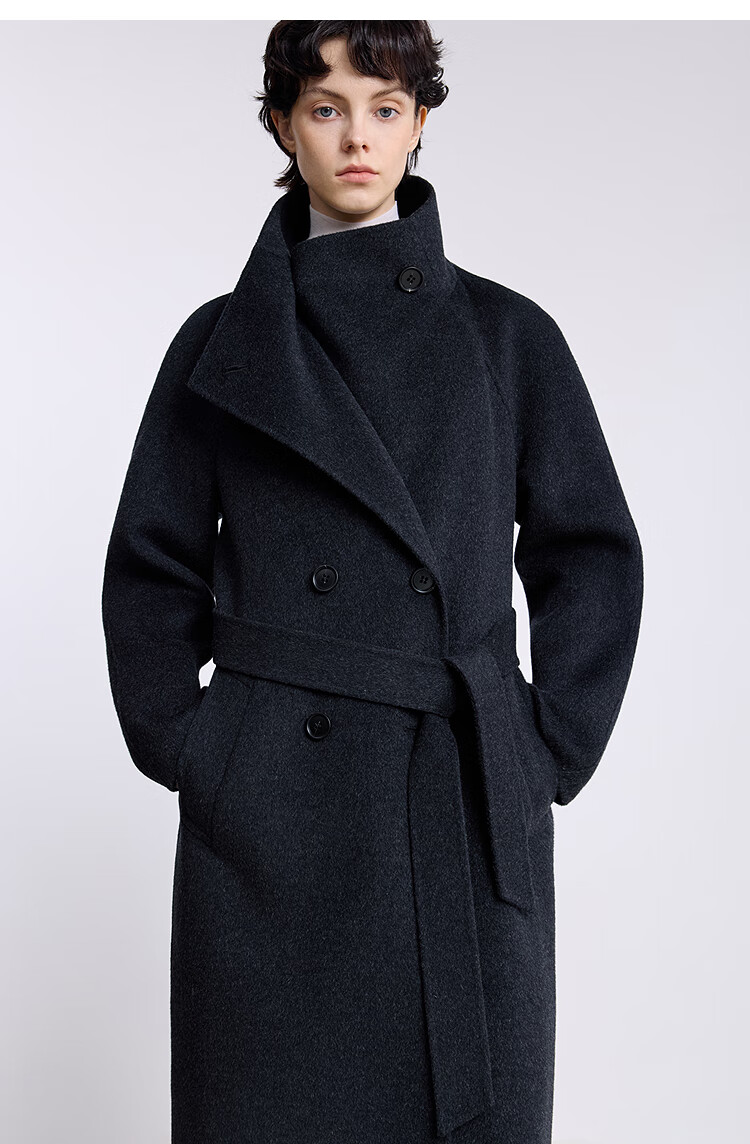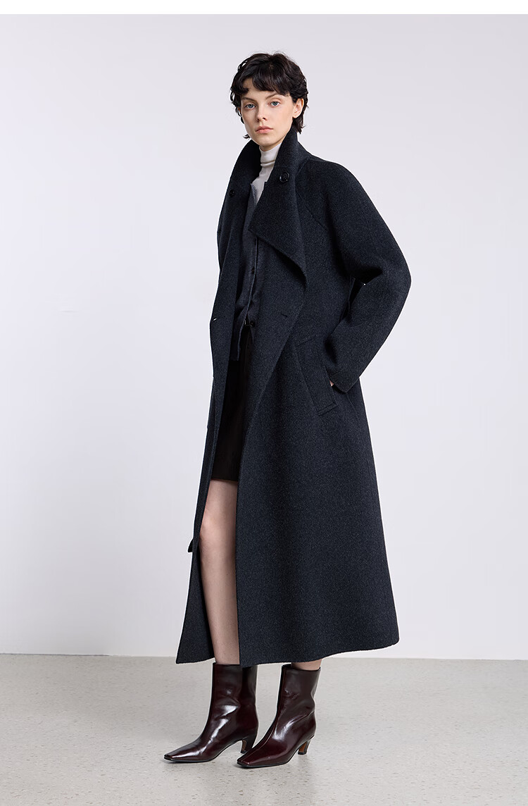 LILY【大师法奢】烟囱领大衣LILY毛呢外套女2025冬季新款双面绵羊毛 411藏青 M