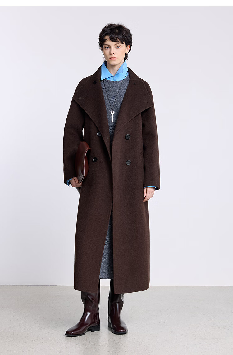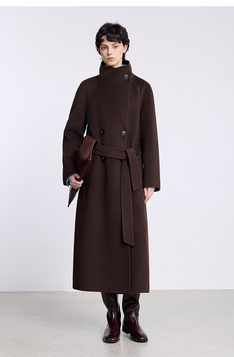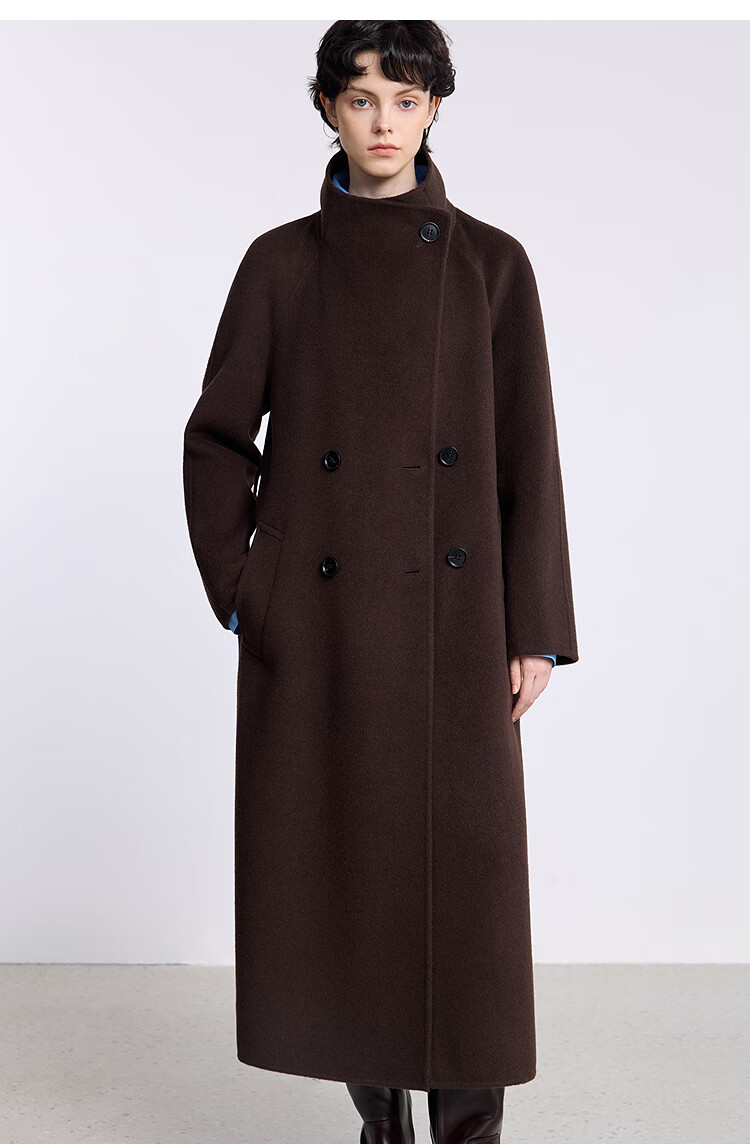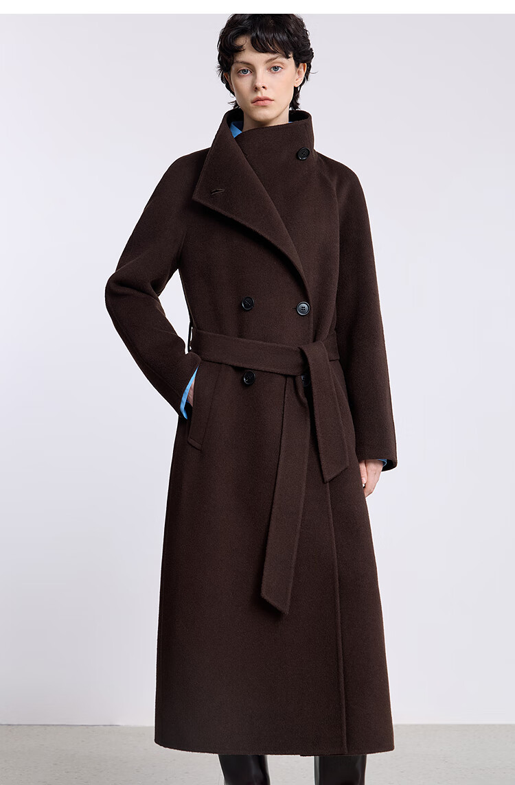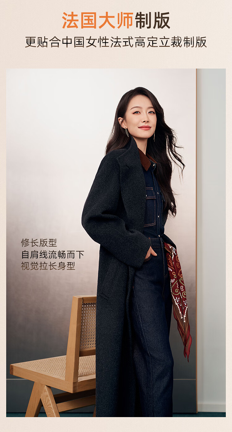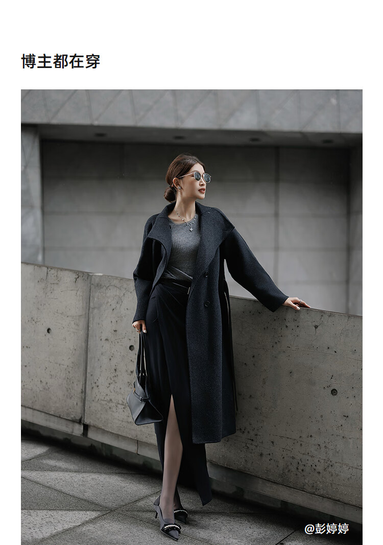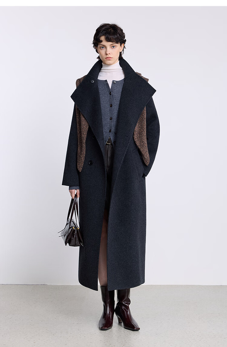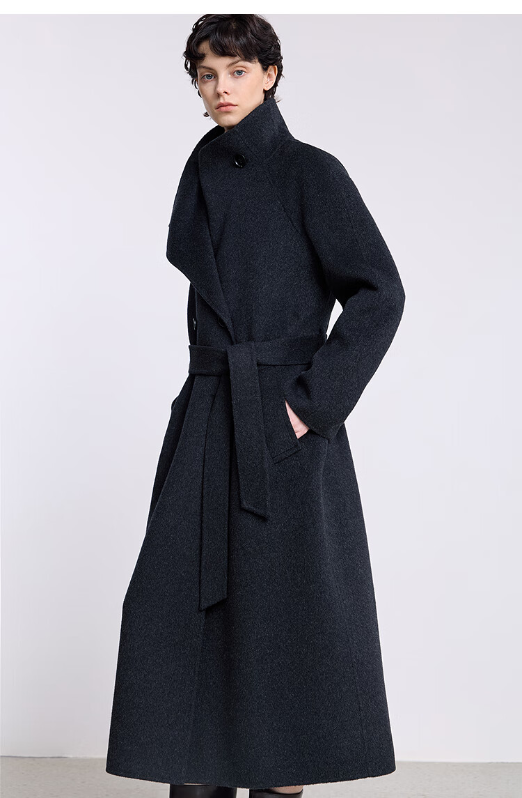 LILY【大师法奢】烟囱领大衣LILY毛呢外套女2025冬季新款双面绵羊毛 411藏青 M