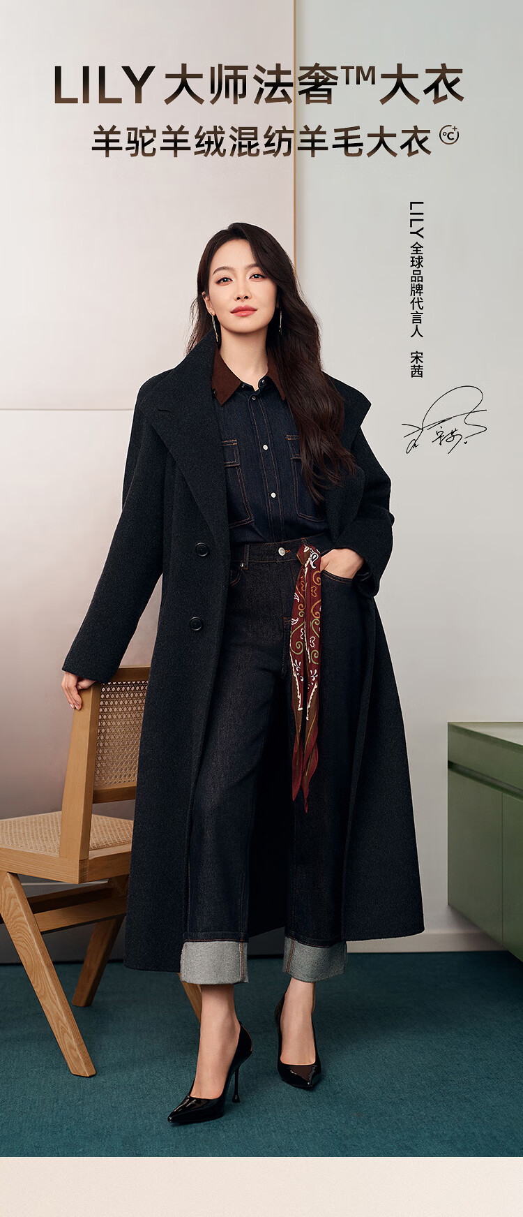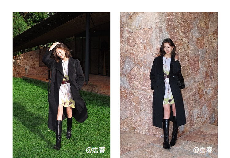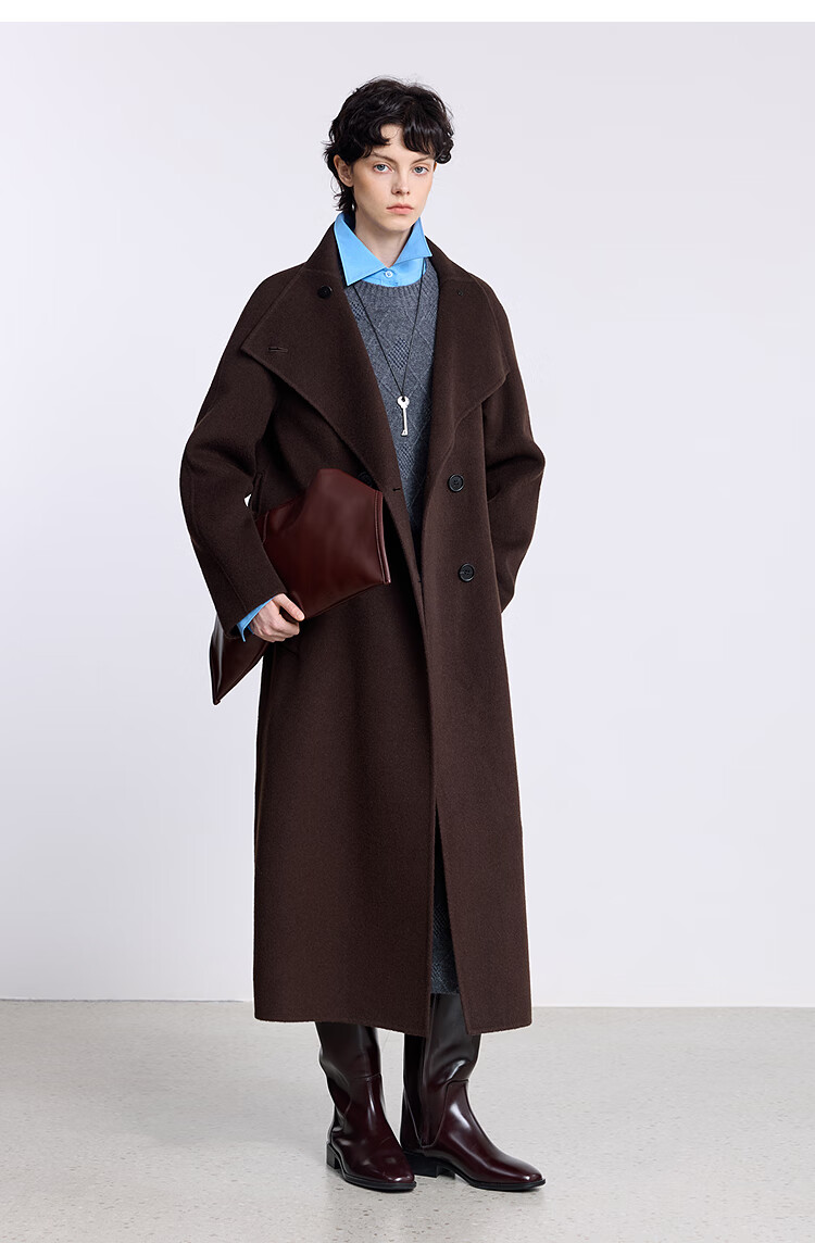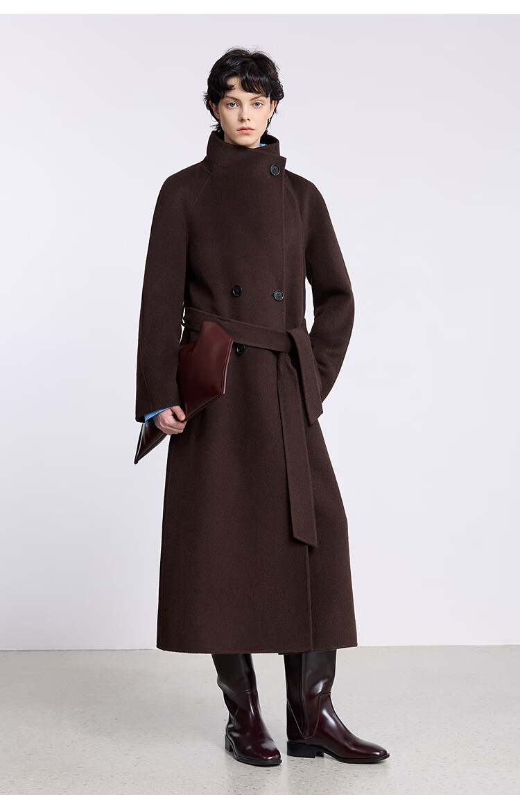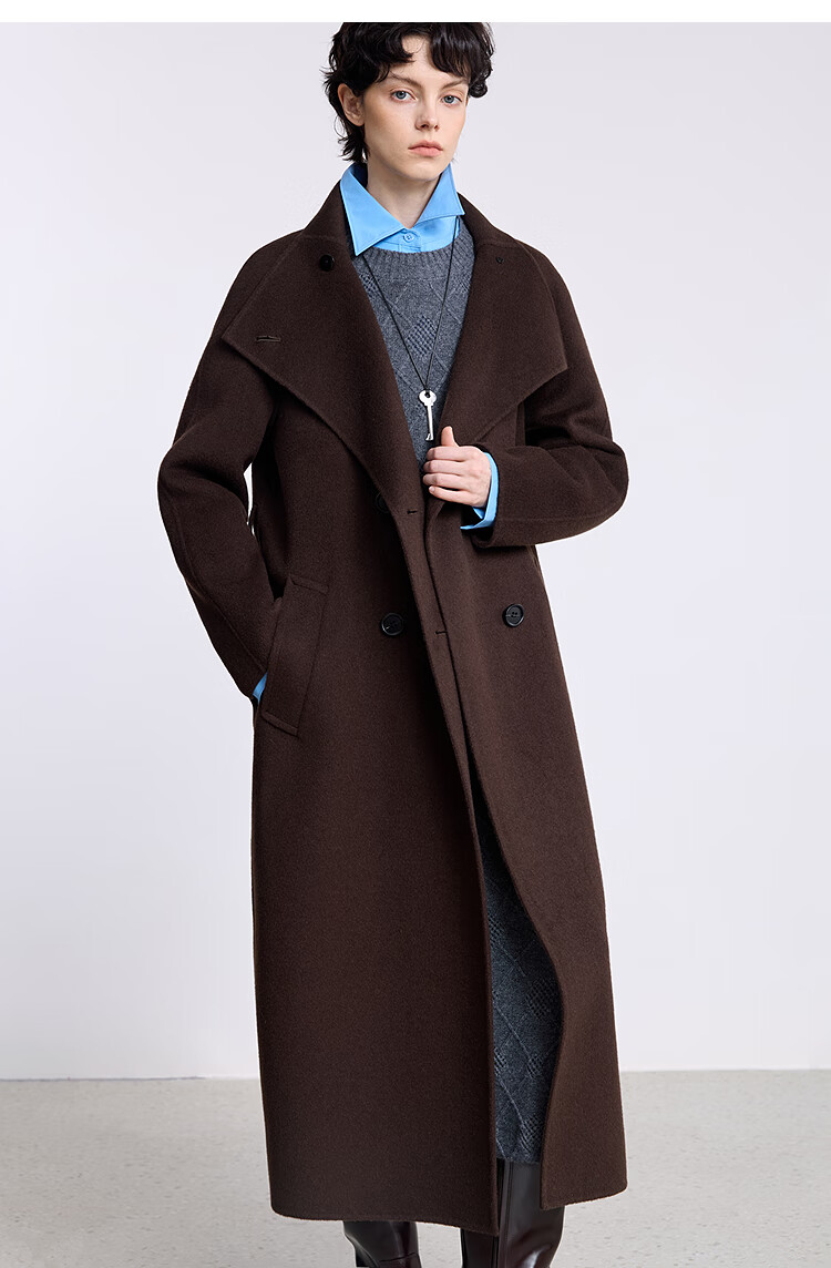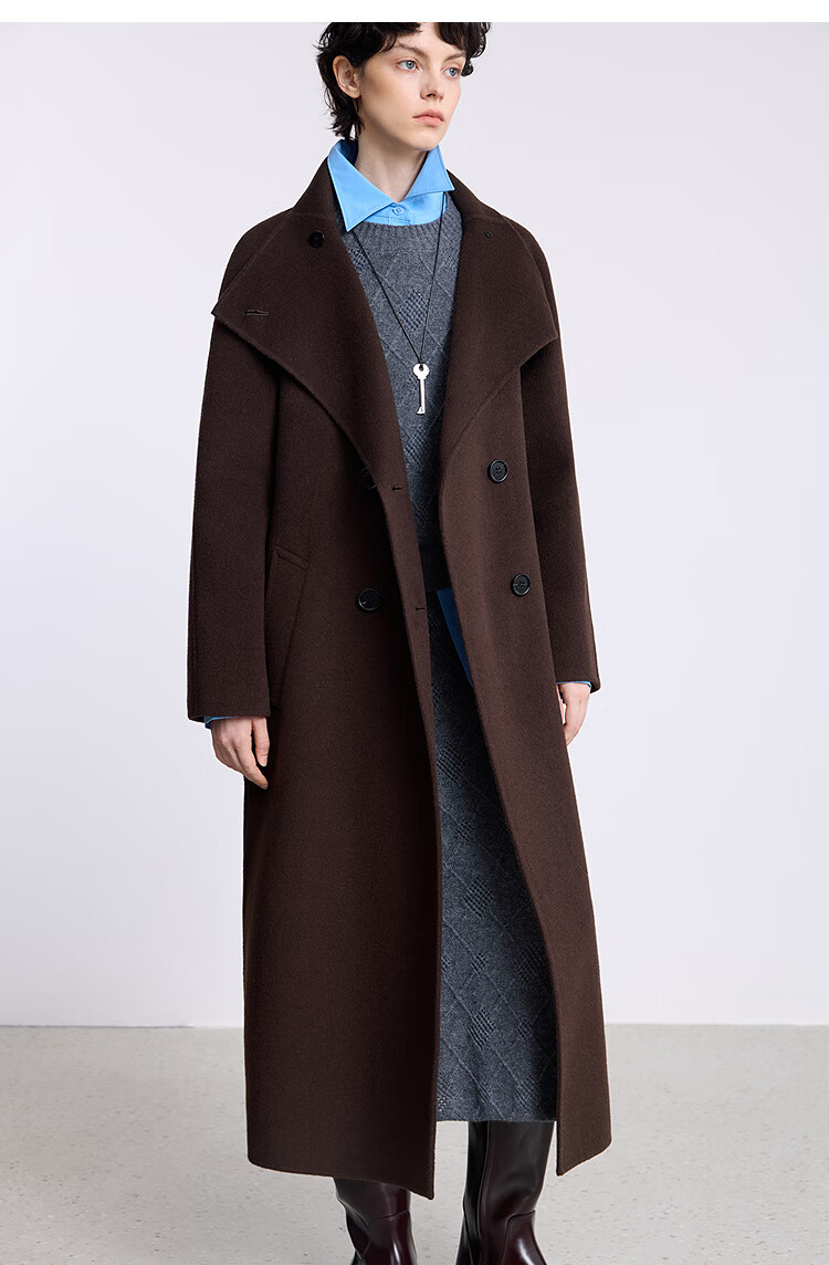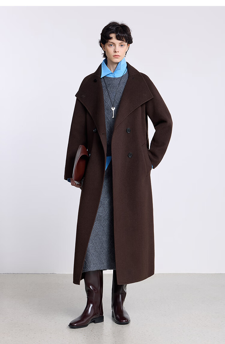 LILY【大师法奢】烟囱领大衣LILY毛呢外套女2025冬季新款双面绵羊毛 411藏青 M