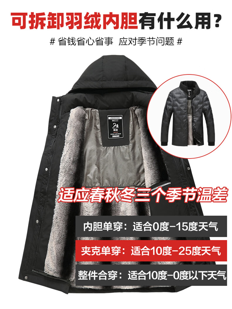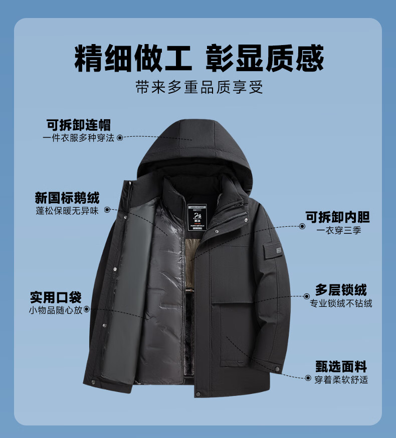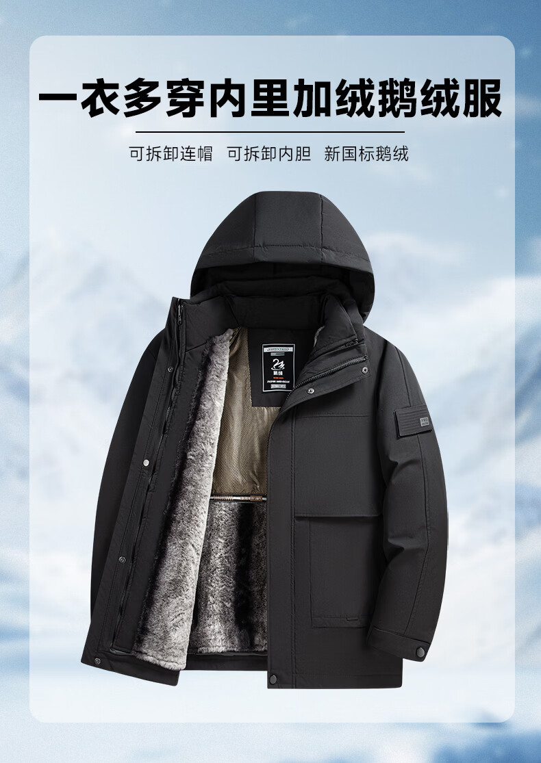 雅鹿三穿鹅绒羽绒服男士2025冬季新款保暖可脱卸内胆加厚抗寒外套男 咖色 3XL 190【建议拍大一码】