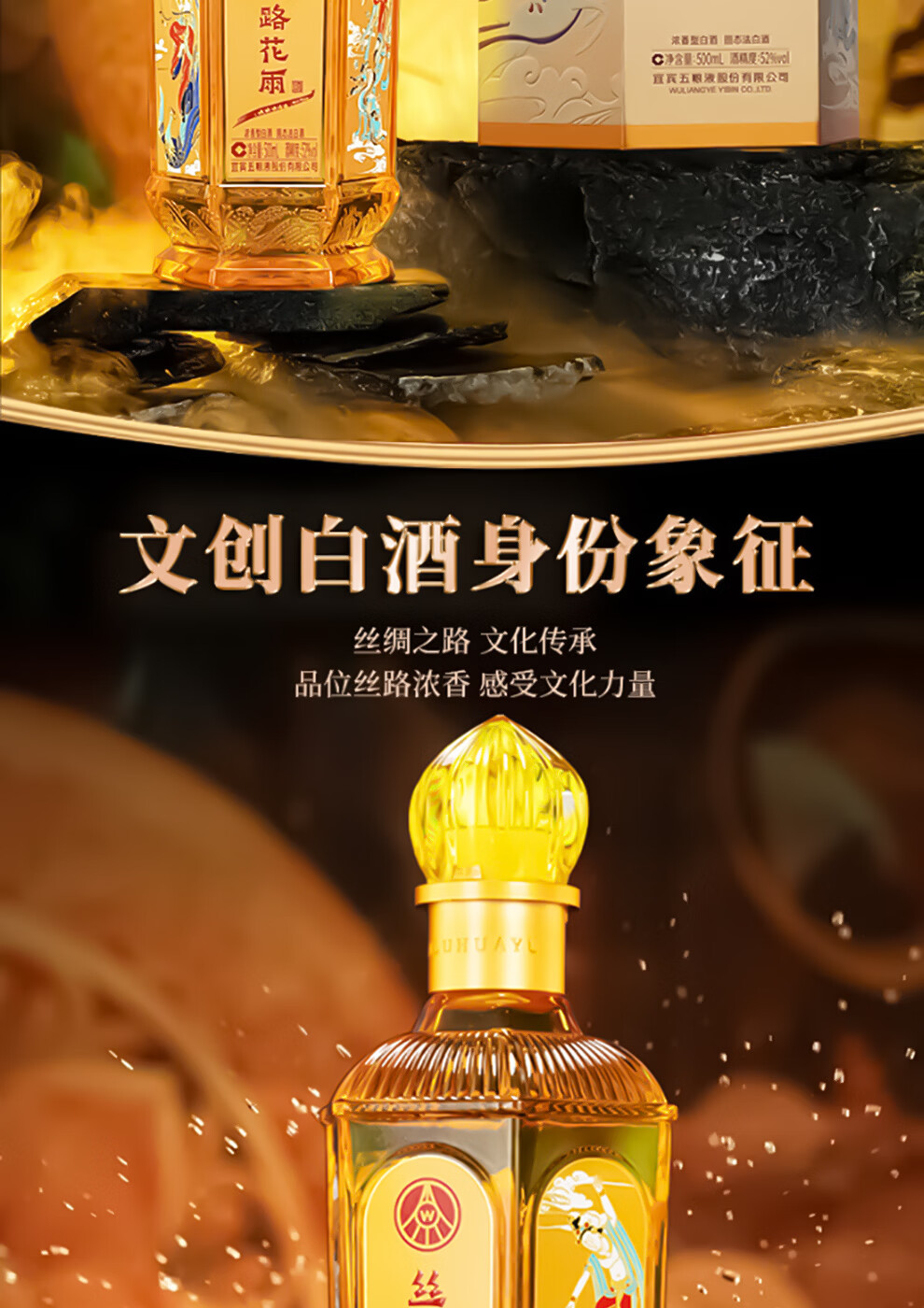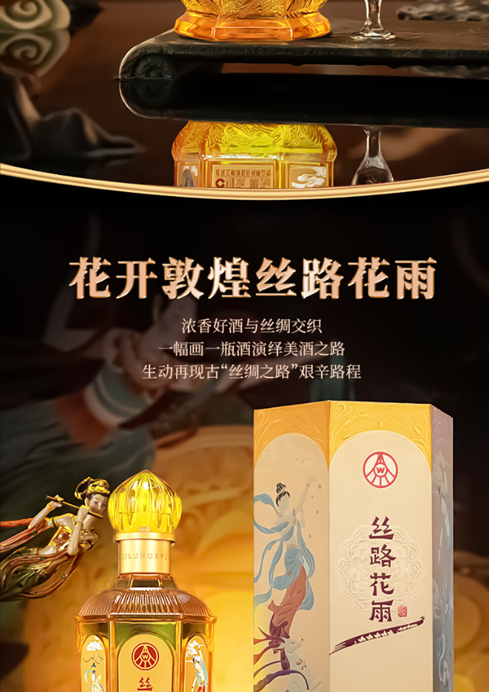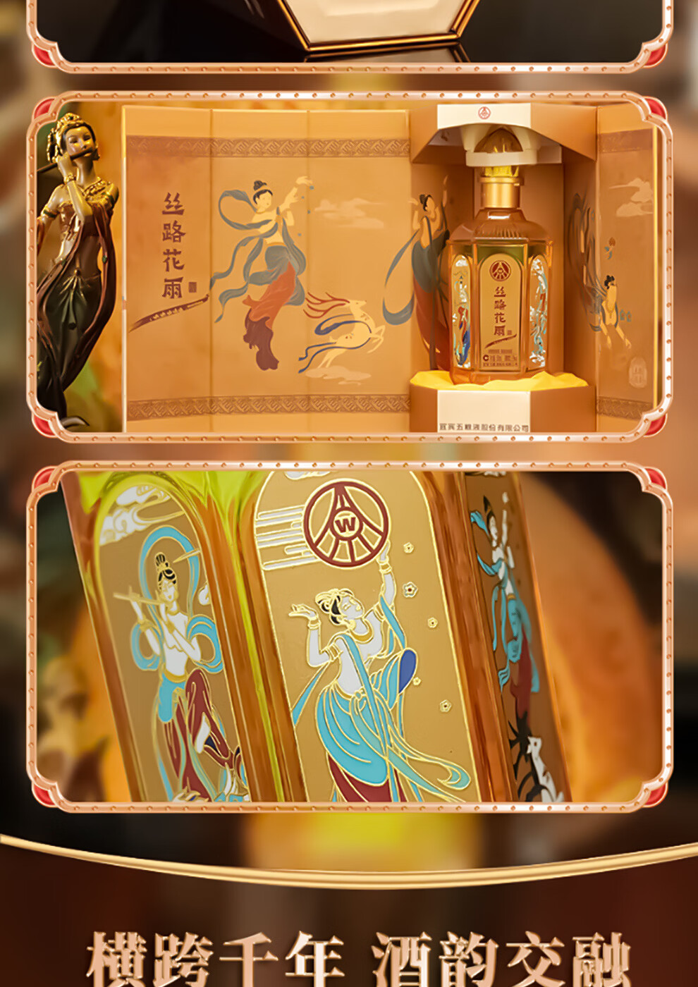 五粮浓香股份有限公司出品 丝路花雨特别文创版 浓香型纯粮固态白酒 52%vol 500mL 6瓶 原箱发货