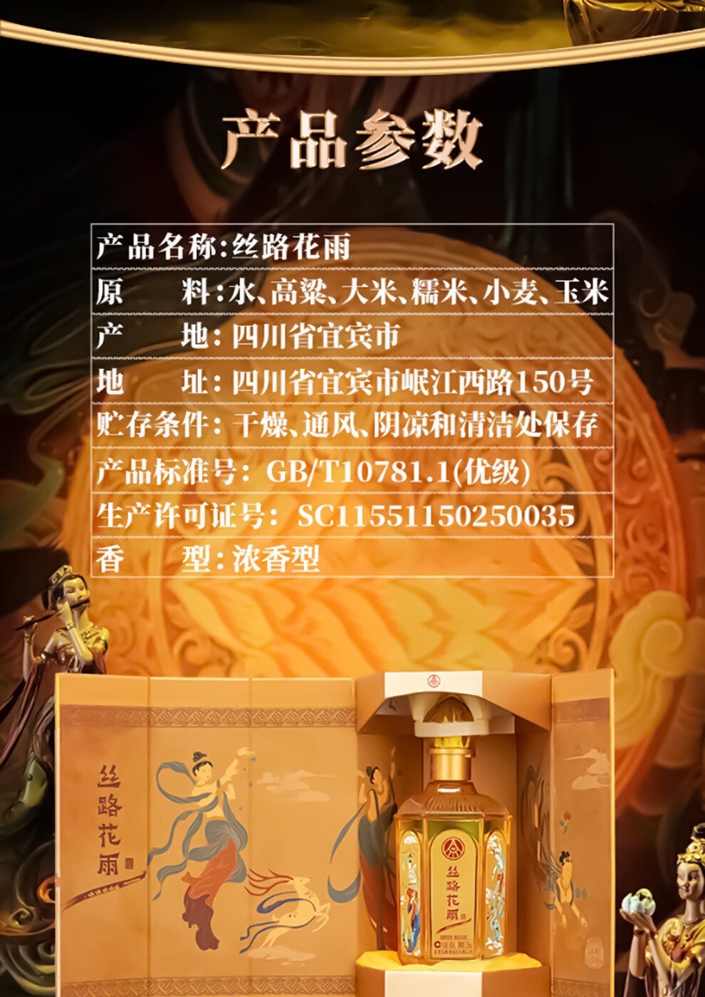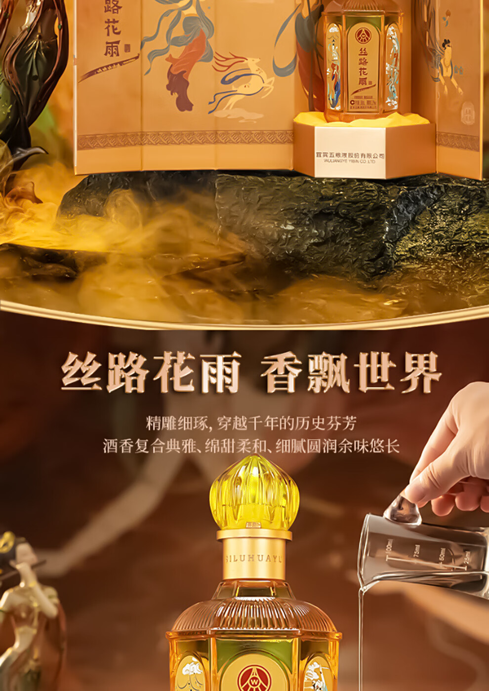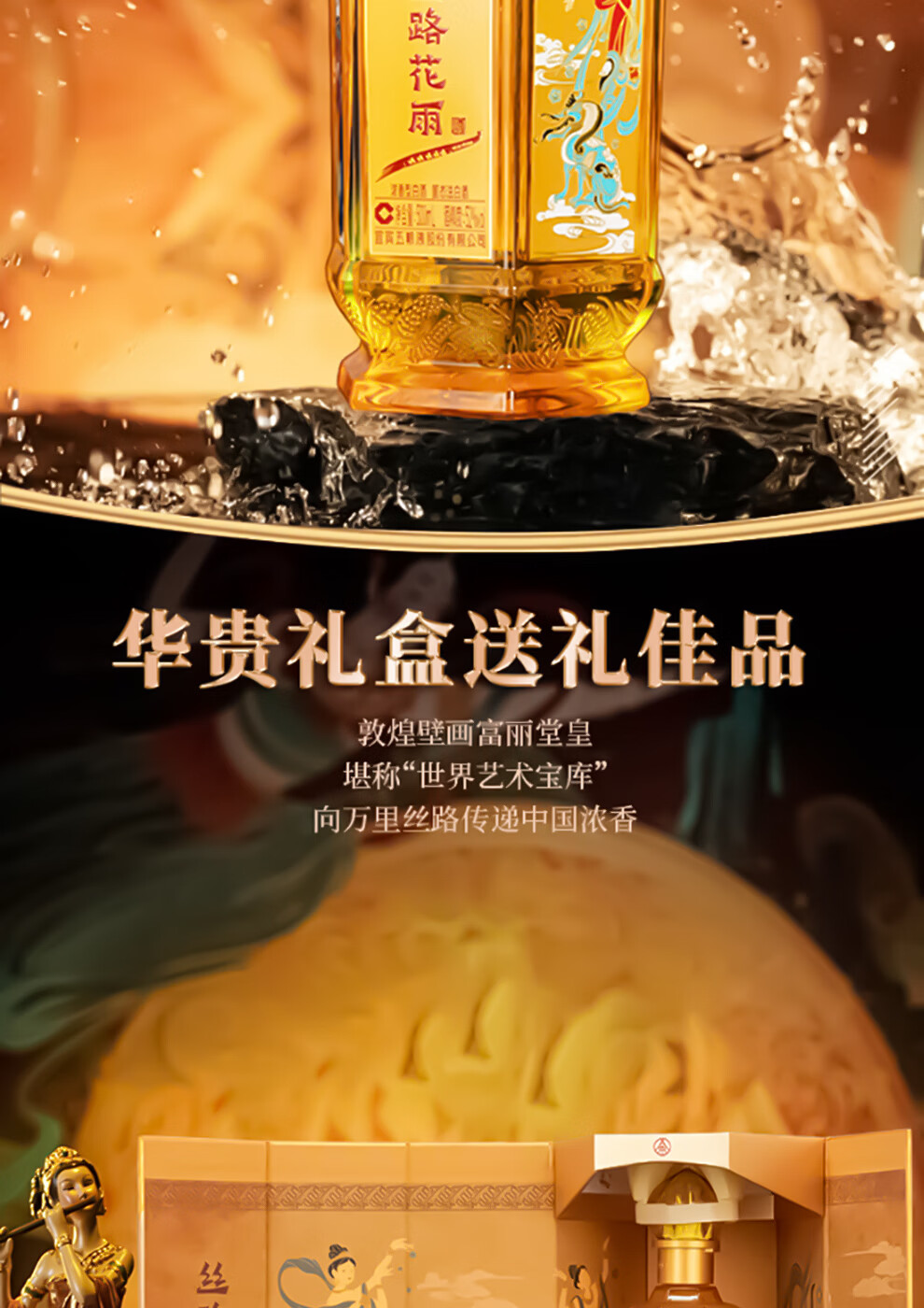 五粮浓香股份有限公司出品 丝路花雨特别文创版 浓香型纯粮固态白酒 52%vol 500mL 6瓶 原箱发货