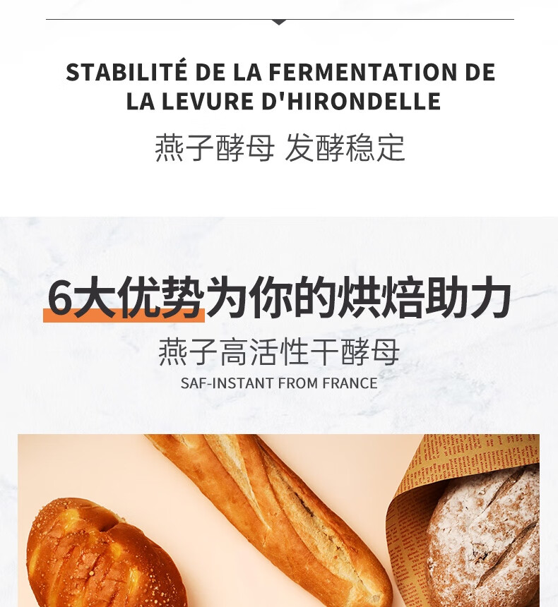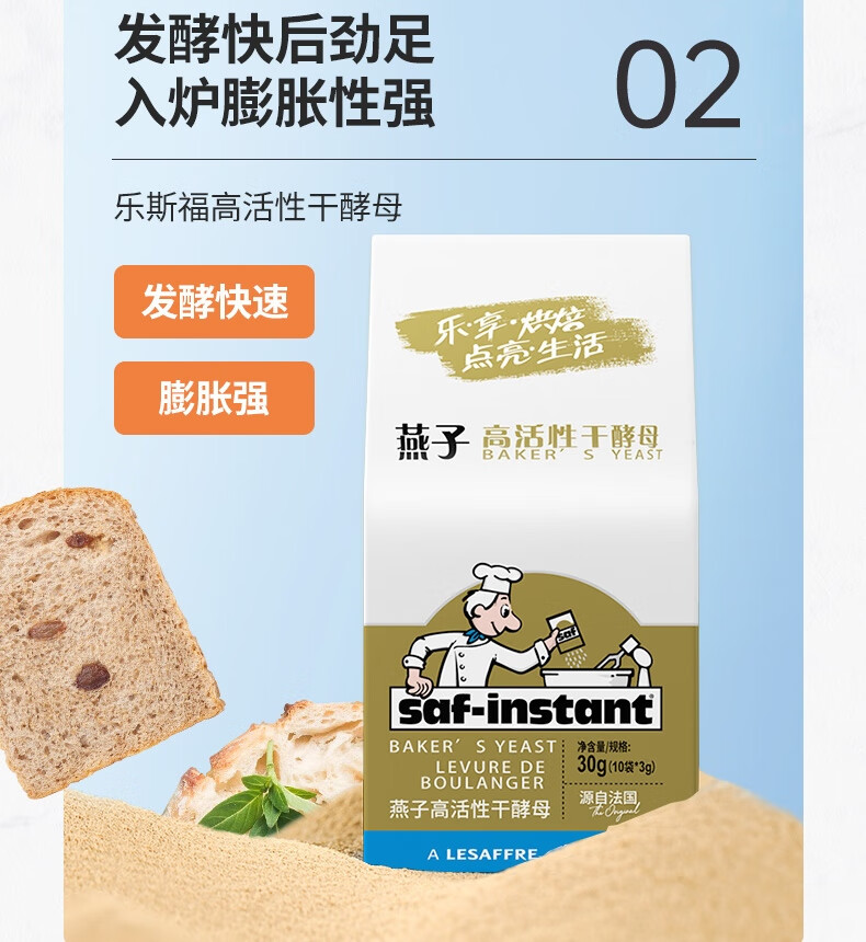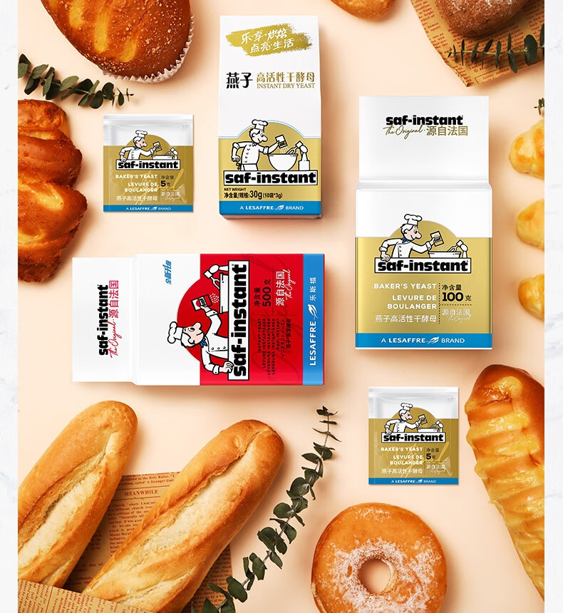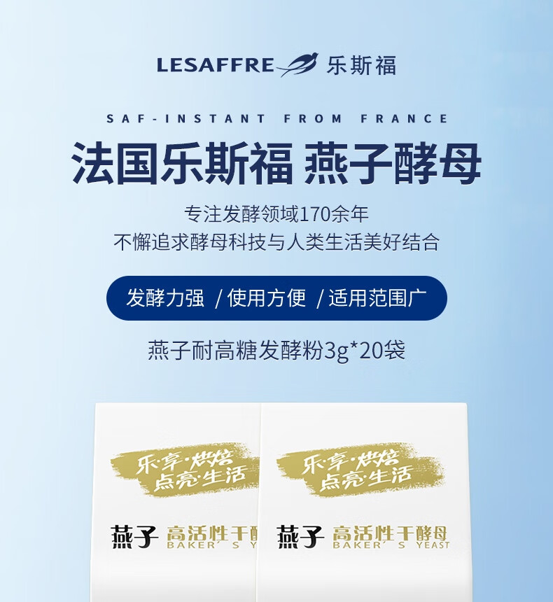 燕子(SAF INSTANT)烘焙原料 金装高活性即发干酵母粉 耐高糖发酵粉 3g*20袋