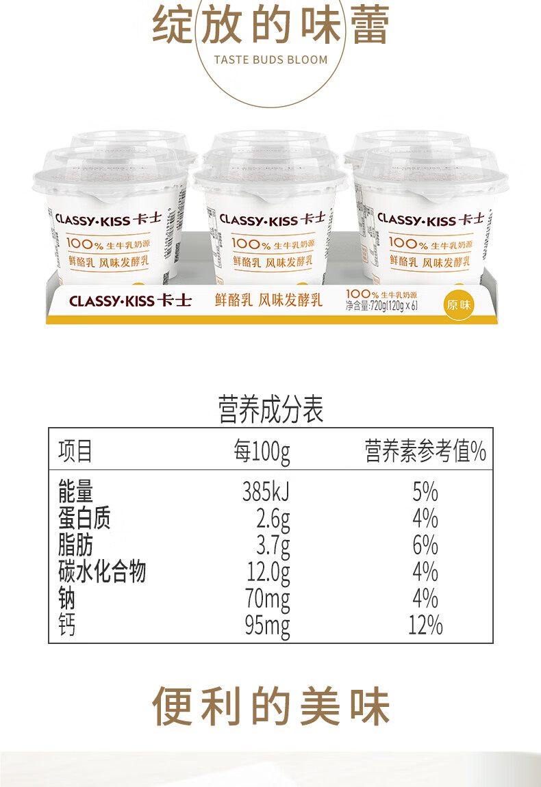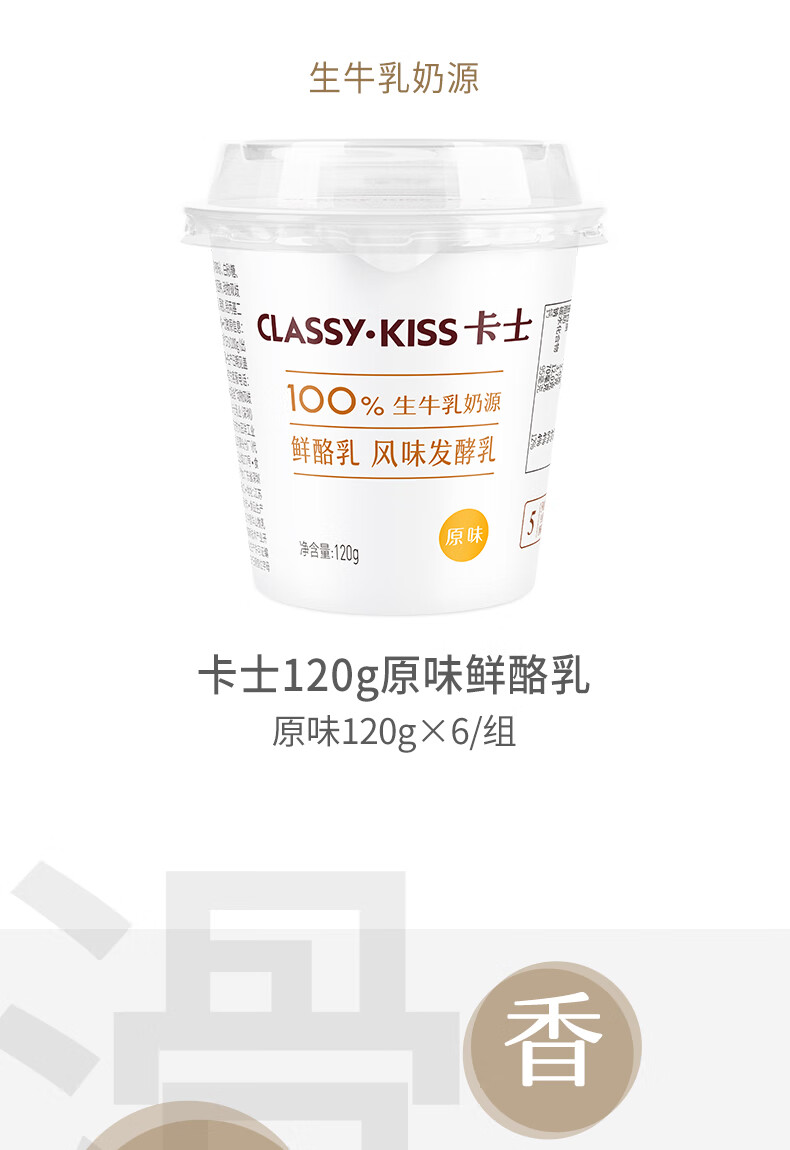 卡士(CLASSY.KISS)原味鲜酪乳120g*6杯 低温酸奶 酸牛奶 风味发酵乳