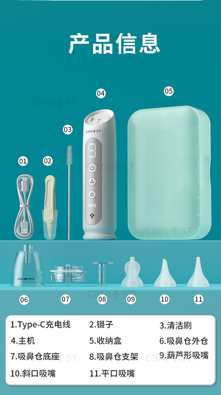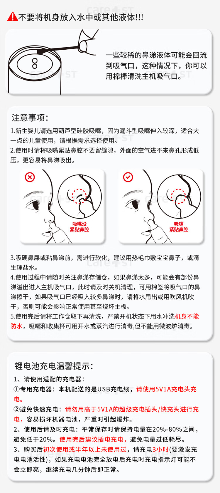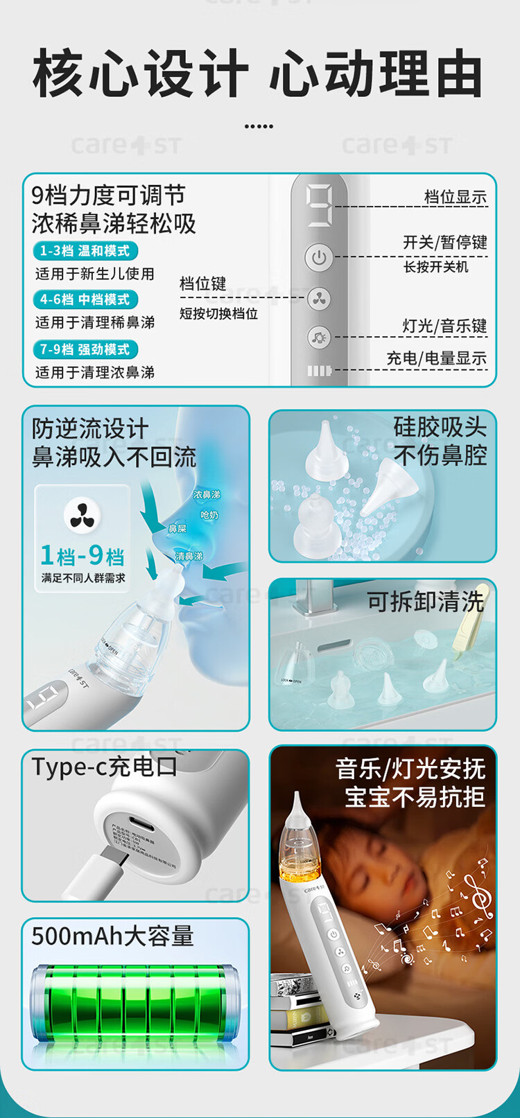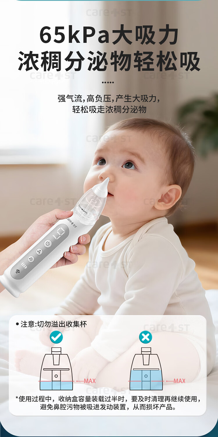 Care1st婴儿吸鼻器 电动吸鼻器洗鼻器 鼻腔鼻屎鼻涕吸鼻器小月龄升级九档