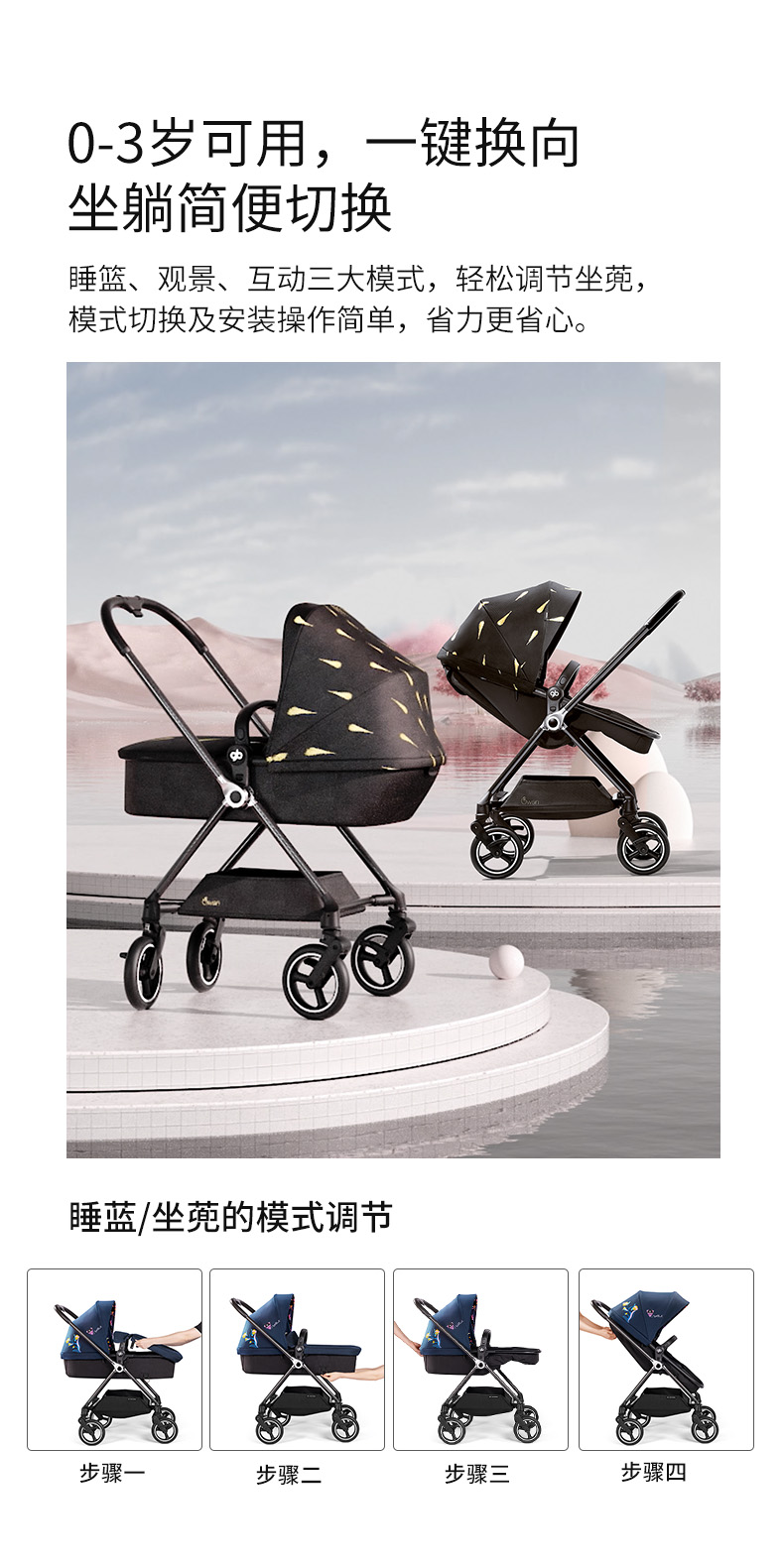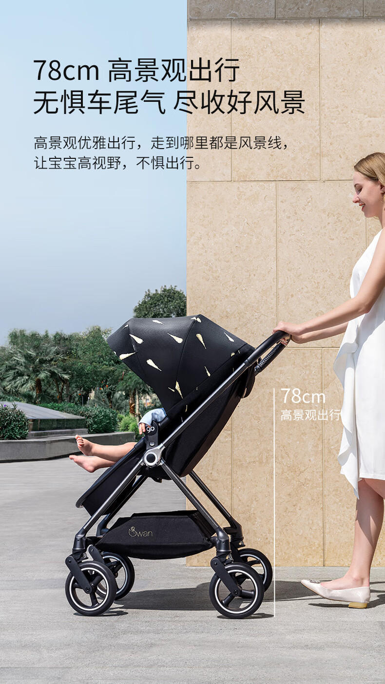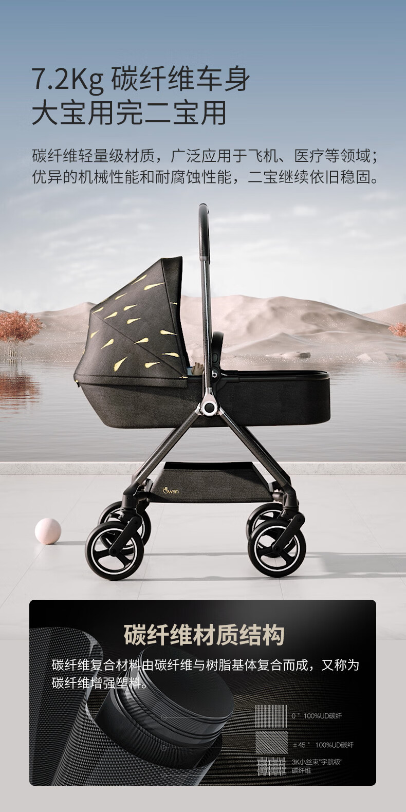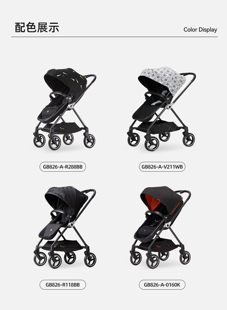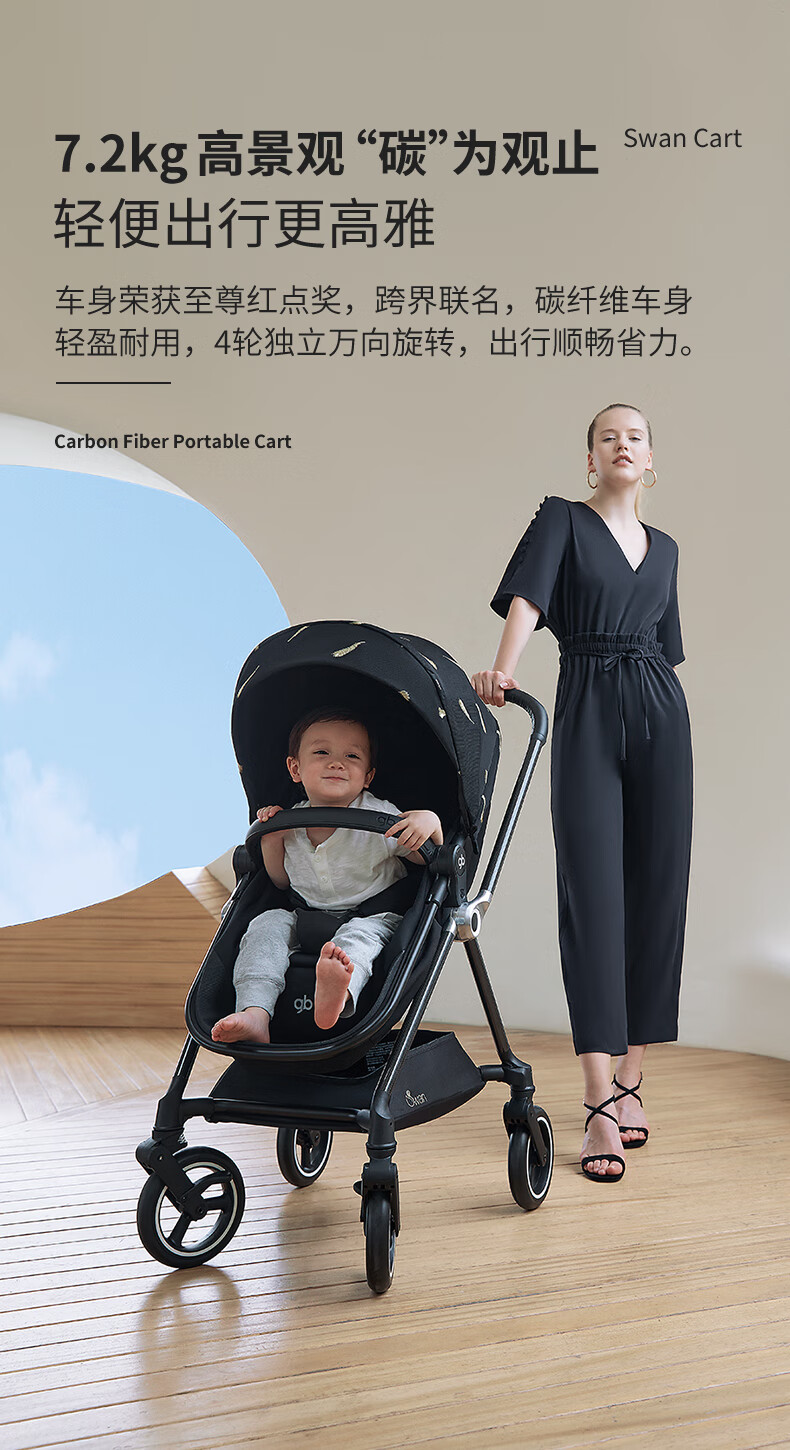 好孩子(gb)婴儿车可坐可躺双向轻便高景观碳纤维婴儿推车360度天鹅金羽GB826