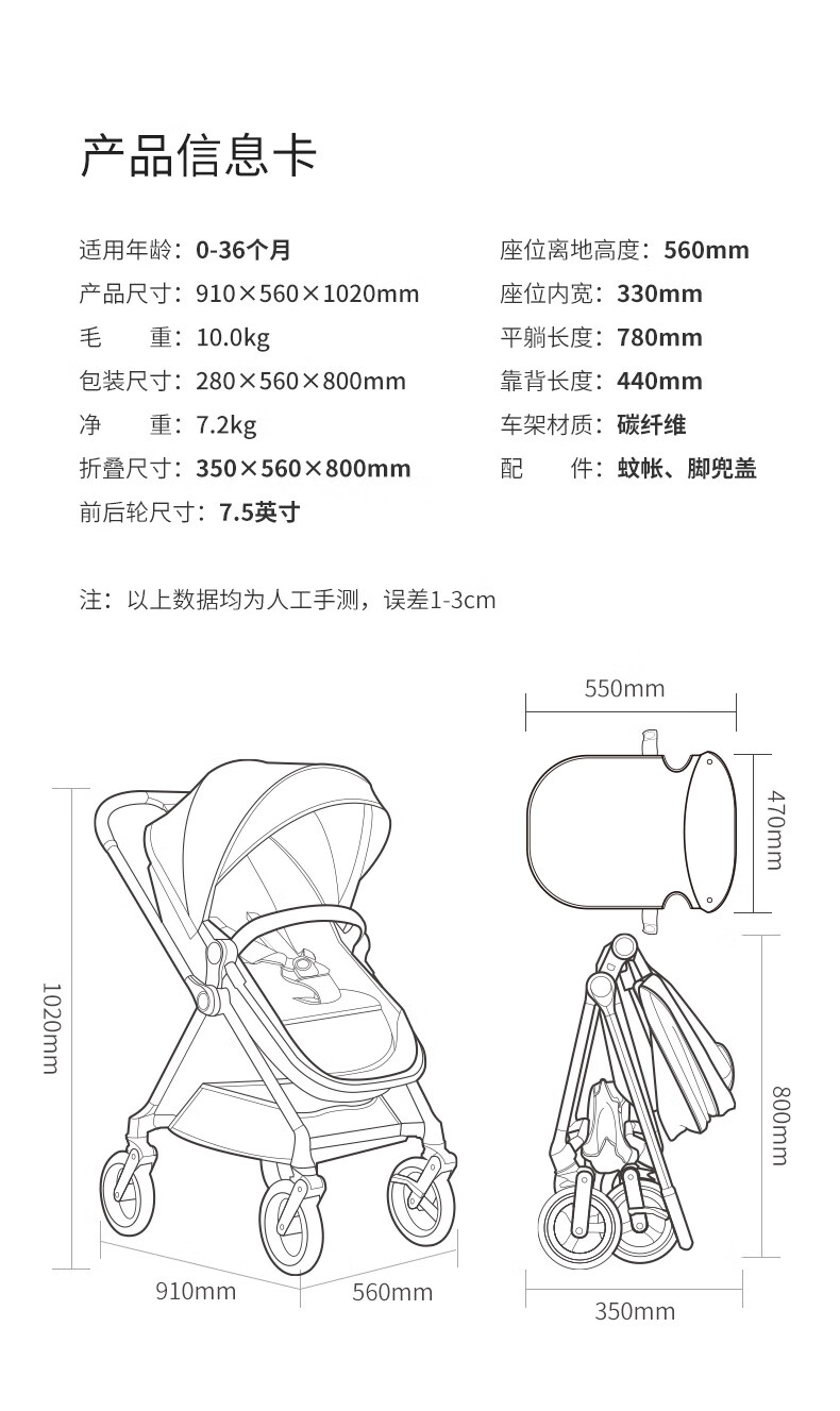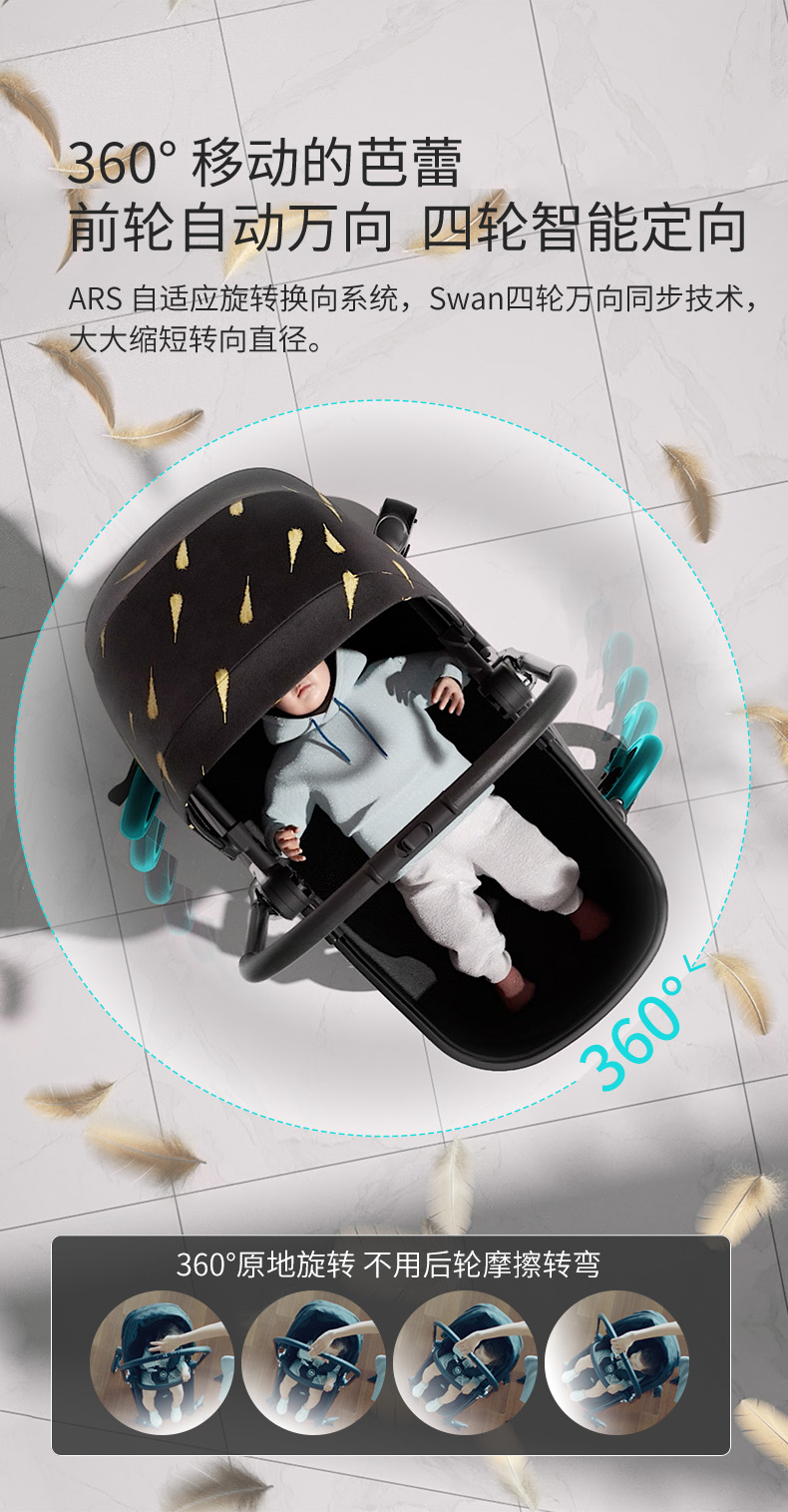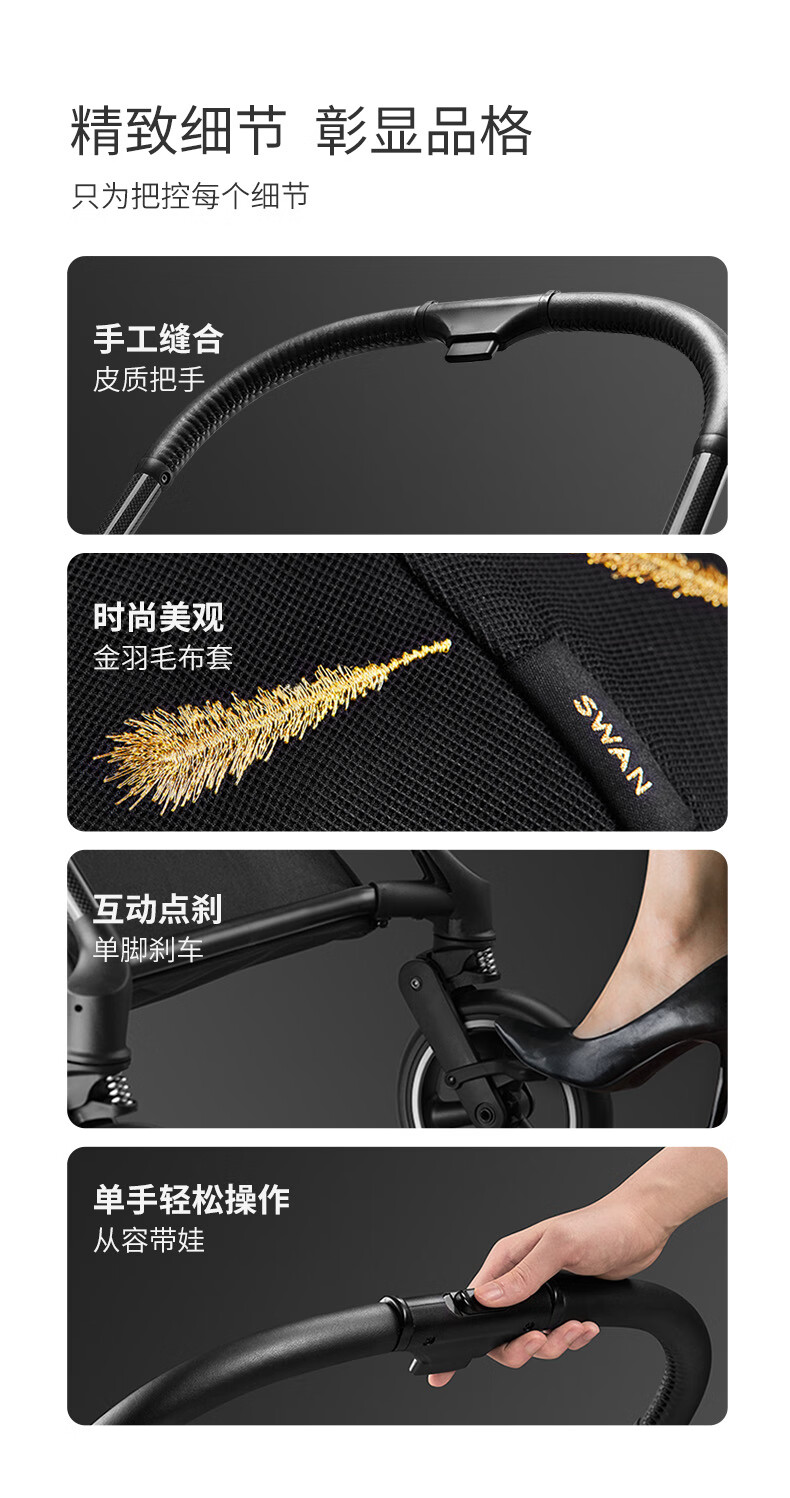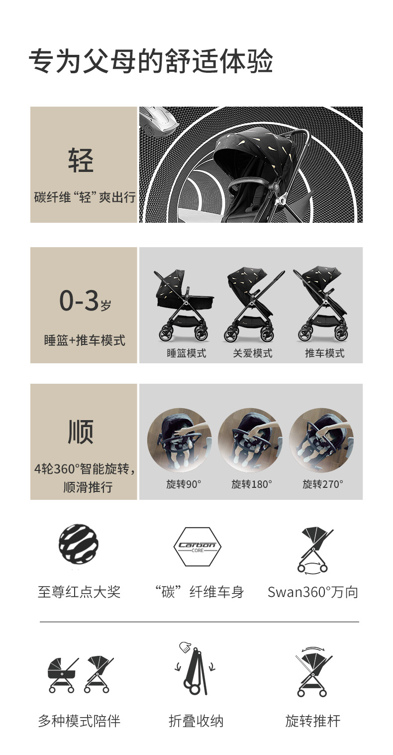 好孩子(gb)婴儿车可坐可躺双向轻便高景观碳纤维婴儿推车360度天鹅金羽GB826