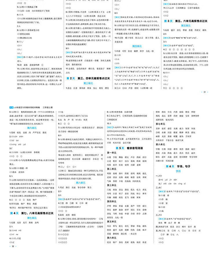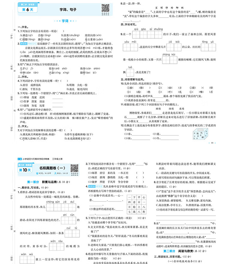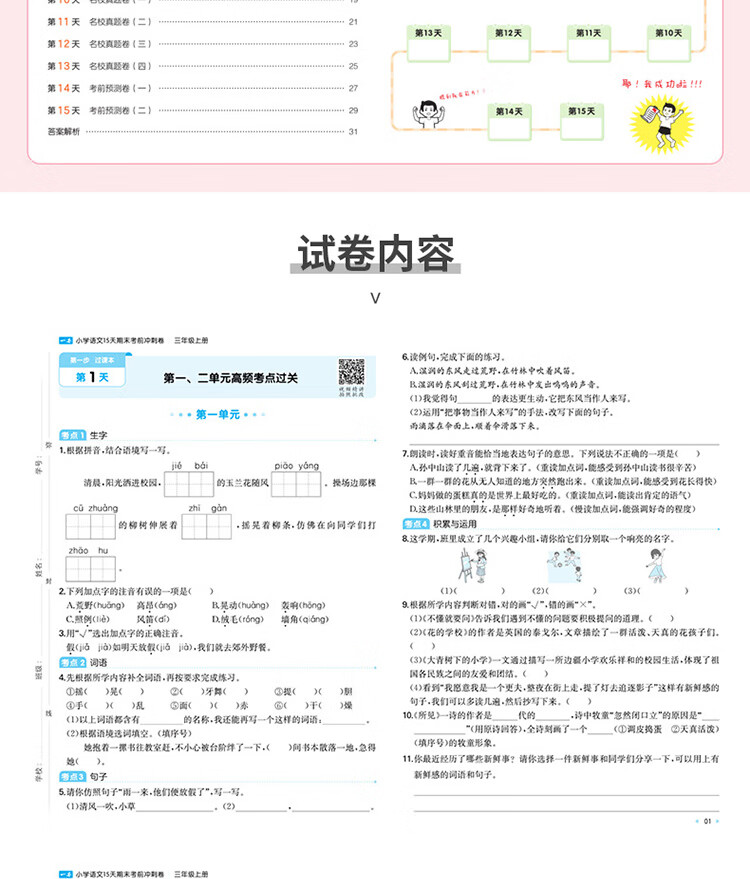 2025秋 一本小学语文15天期末考前冲刺卷三年级上册人教版 小学语文考点复习巩固真题训练必刷题期末押题模拟试卷 三年级上册语文人教版