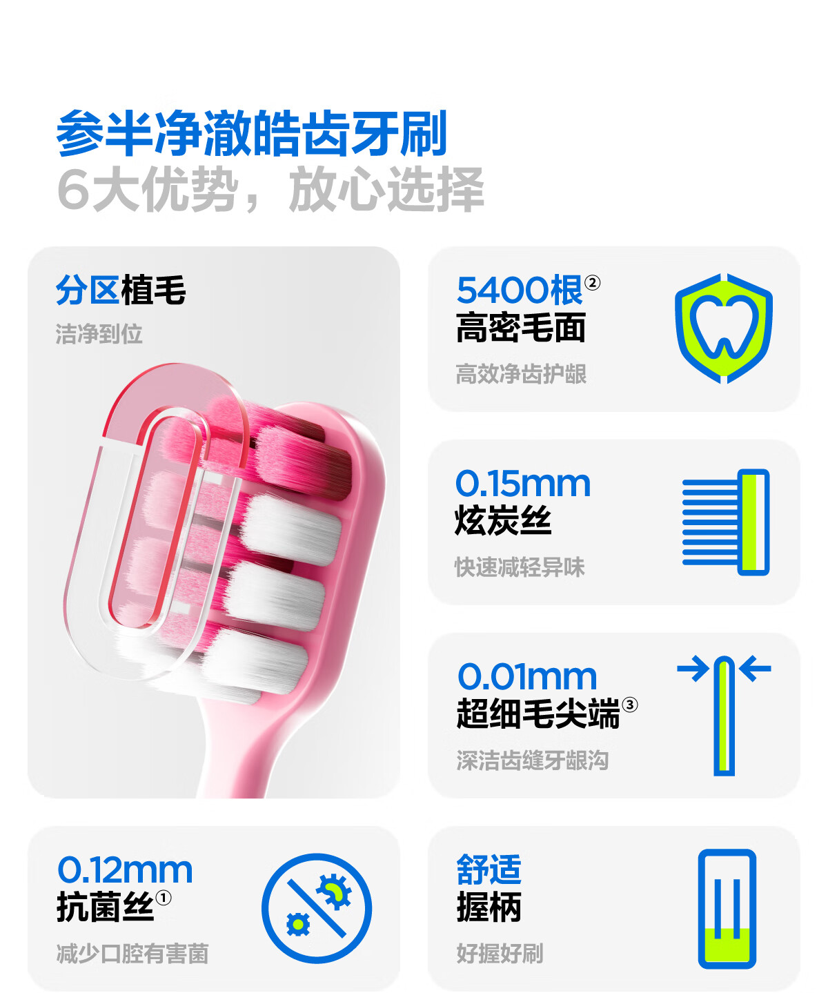 参半净澈皓齿牙刷抗菌炭丝软毛护龈男士减轻异味蓝色4支