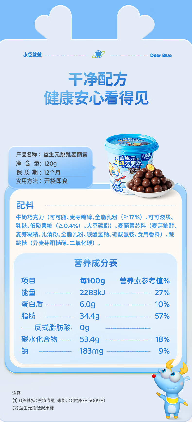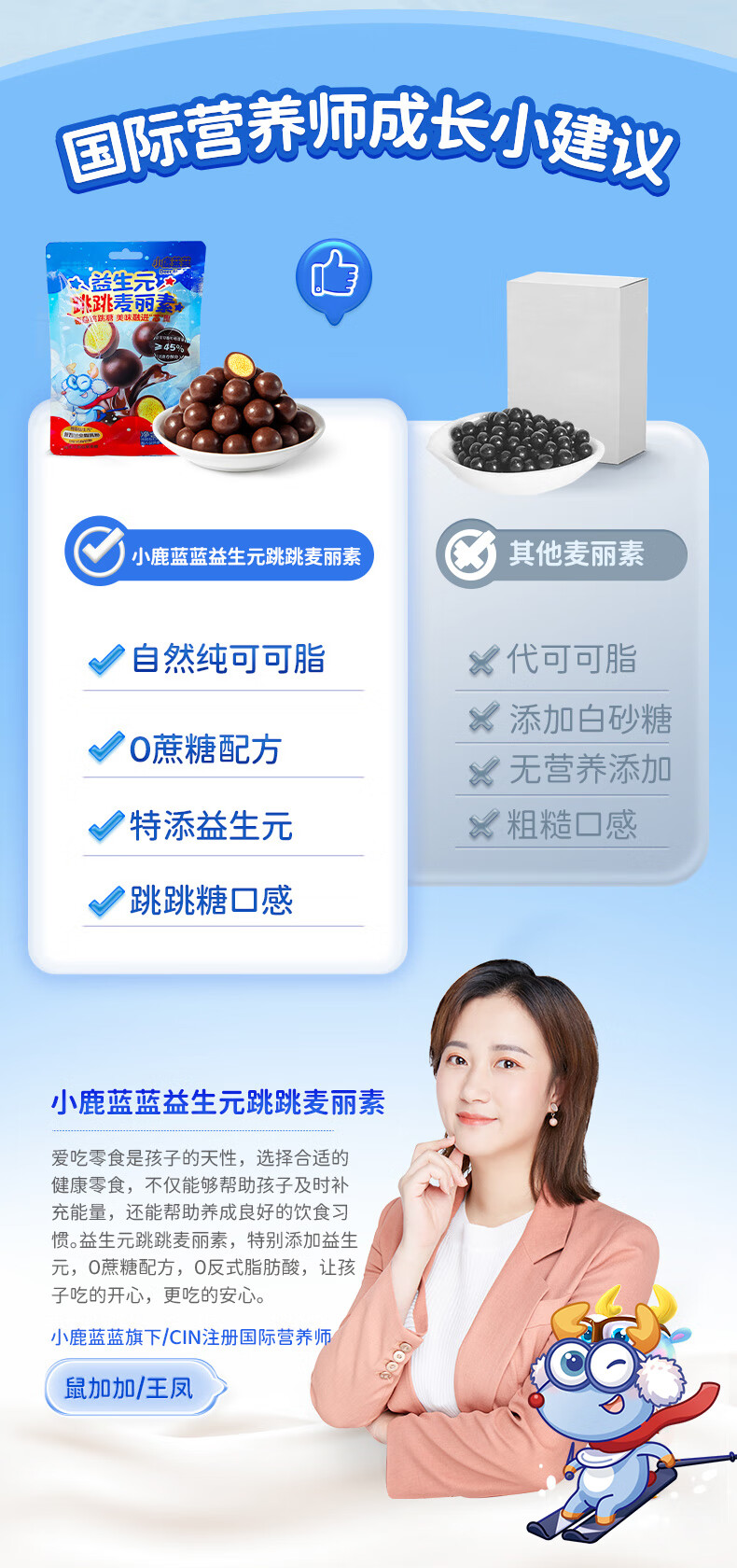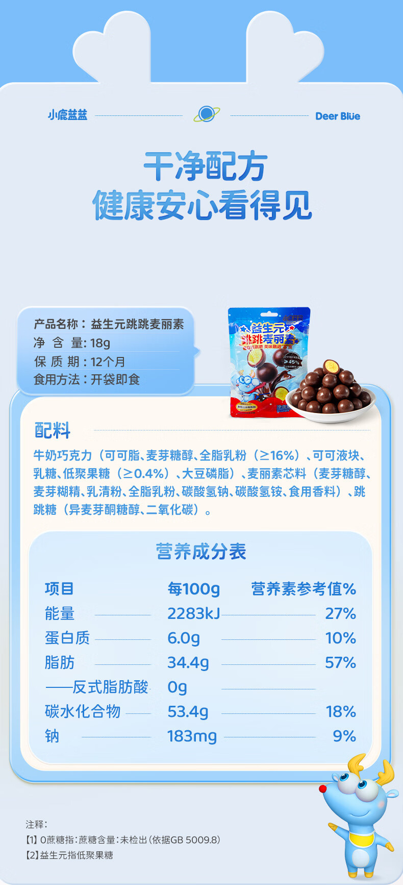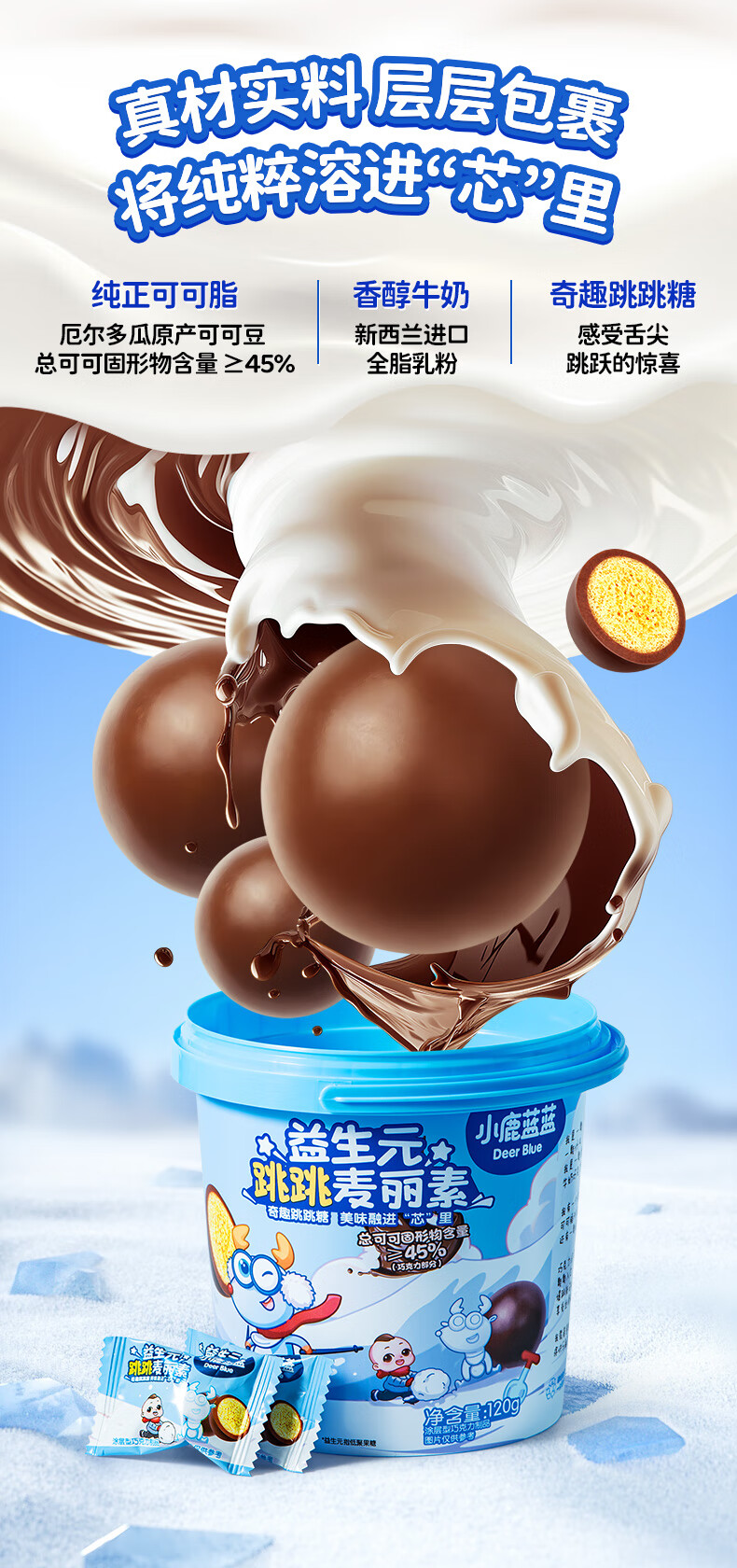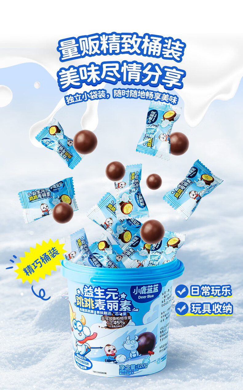 小鹿蓝蓝宝宝零食特添益生元跳跳糖口感麦丽素独立袋装纯可可脂零反式脂肪 【1袋体验装】跳跳麦丽素/18g