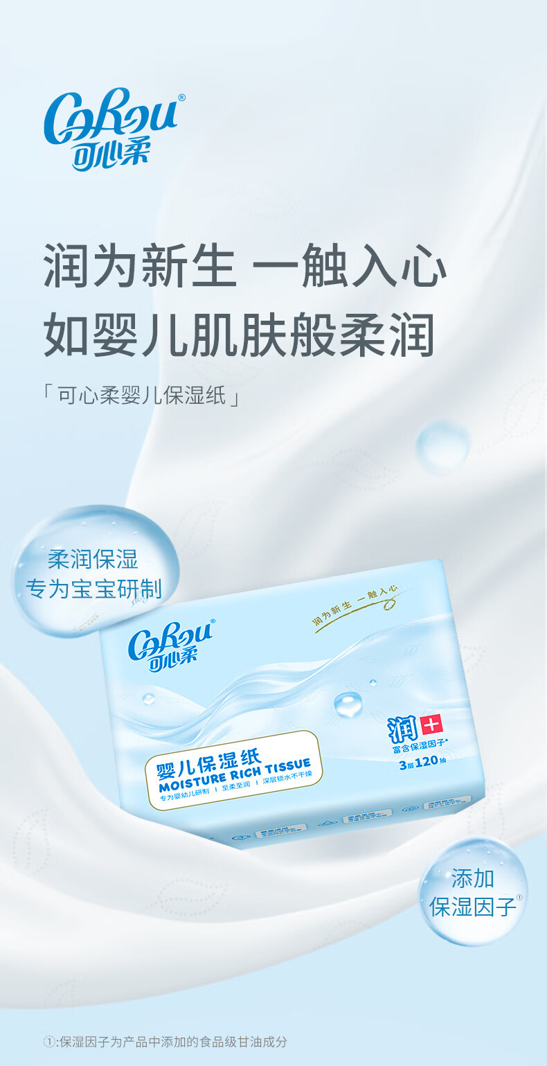 可心柔V9婴儿柔纸巾抽纸 3层S码120抽15包 柔润保湿乳霜纸 纸巾 餐巾纸