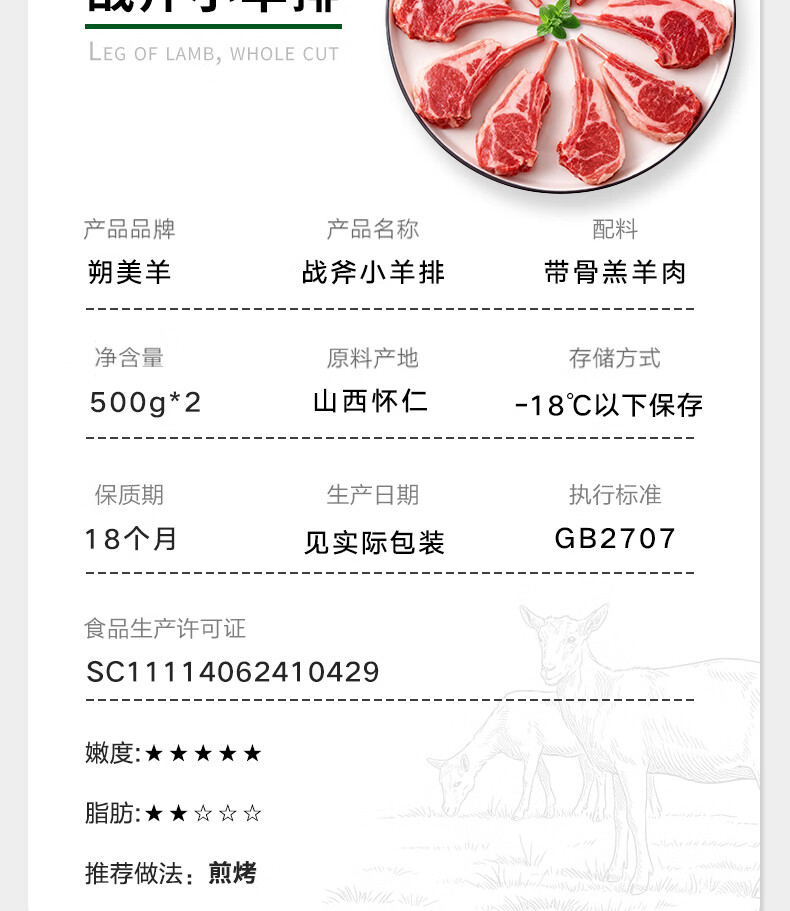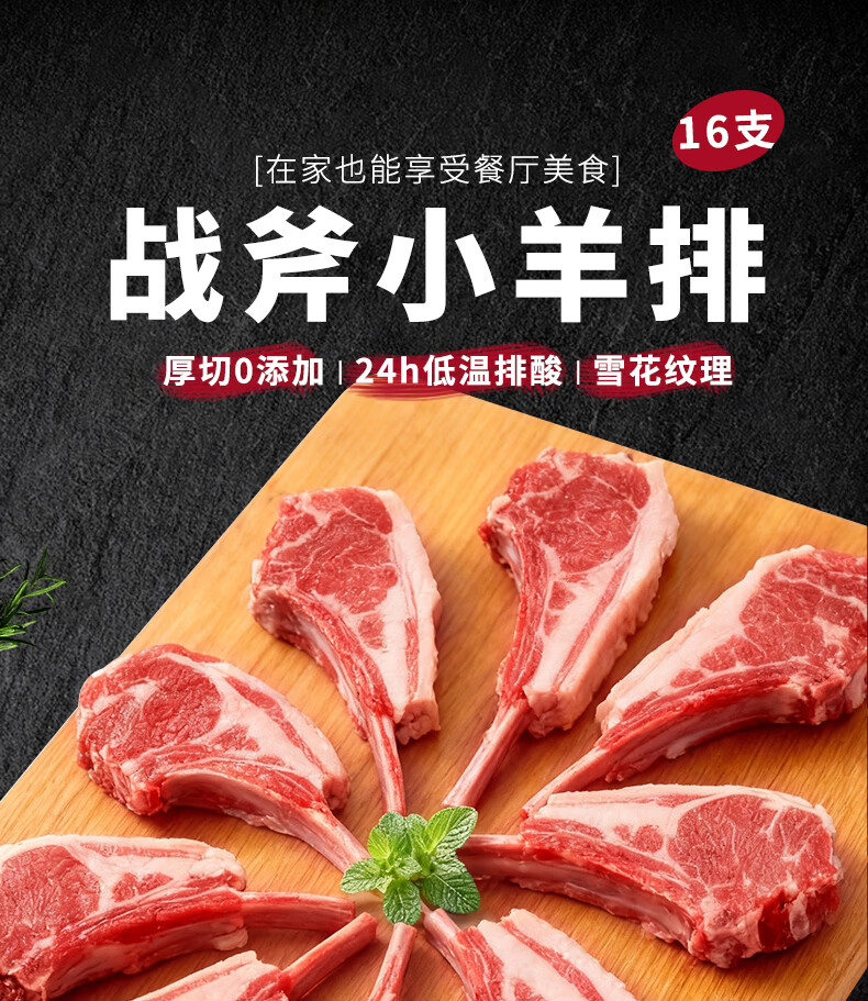 朔美羊京东严选 塞北滩羊月销100W+ 新鲜宰杀羔羊 羊排羊腿烧烤烤肉食材 【老人小孩放心吃】 战斧小羊排2斤 16支